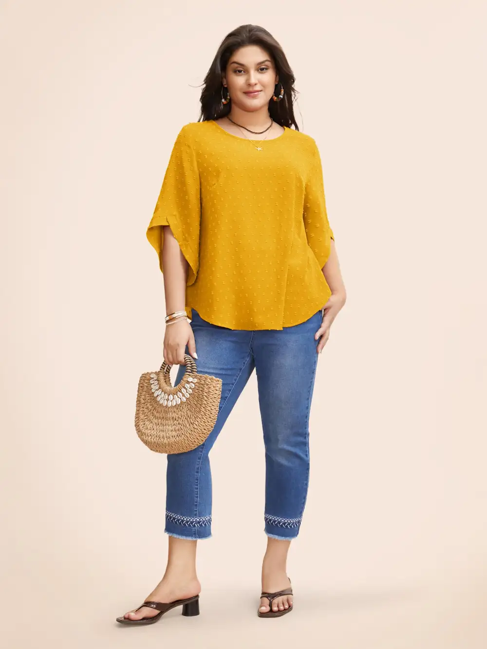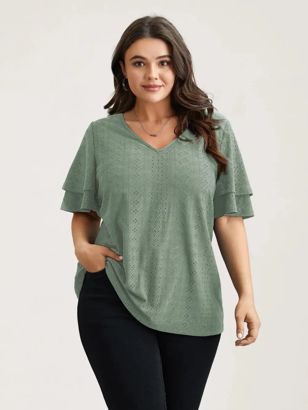 Jacquard Textured Lotus Leaf Sleeve Top
