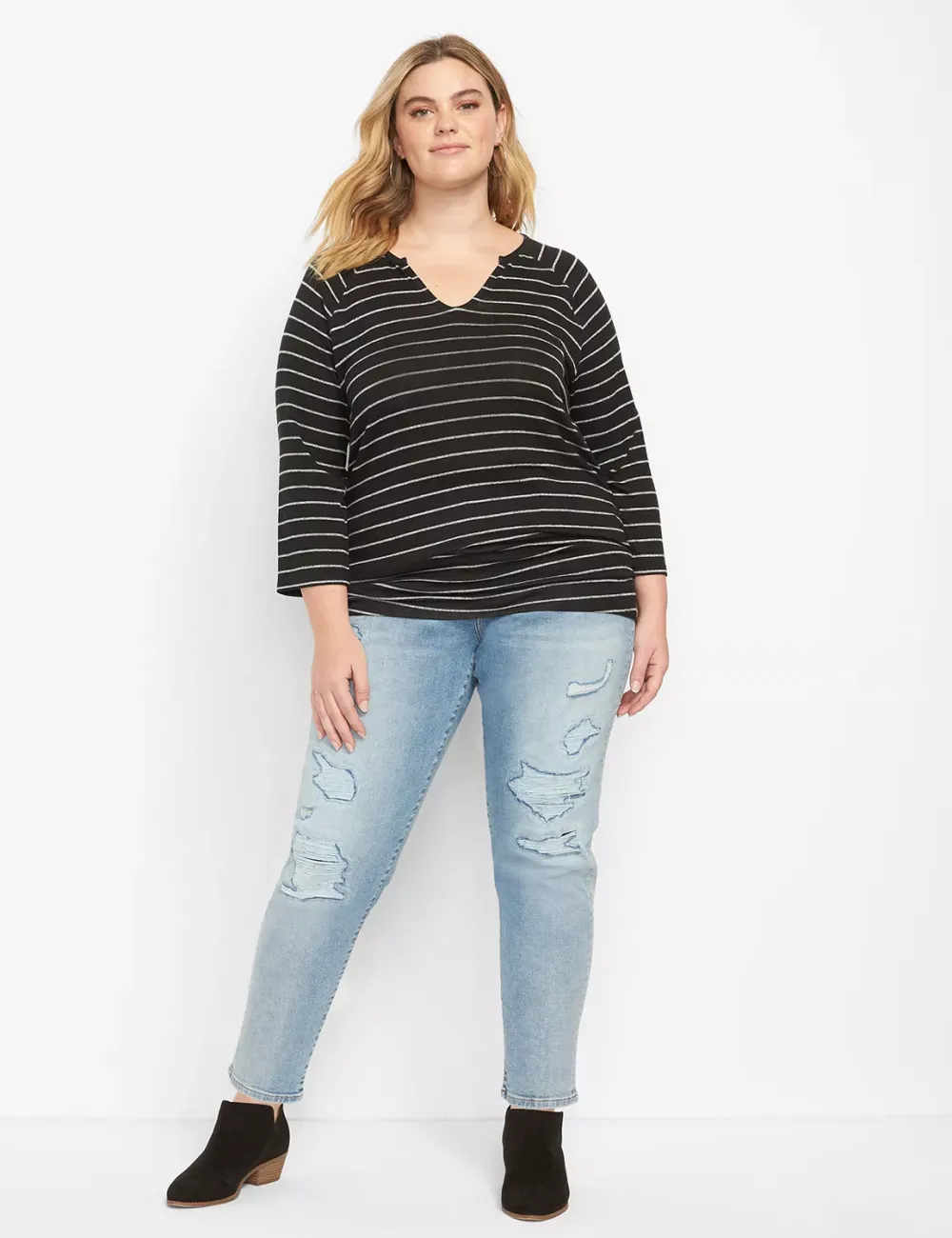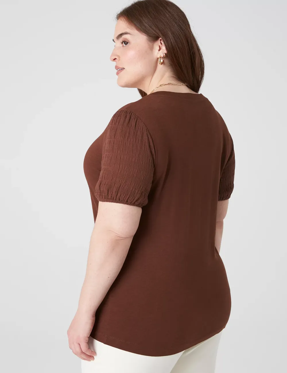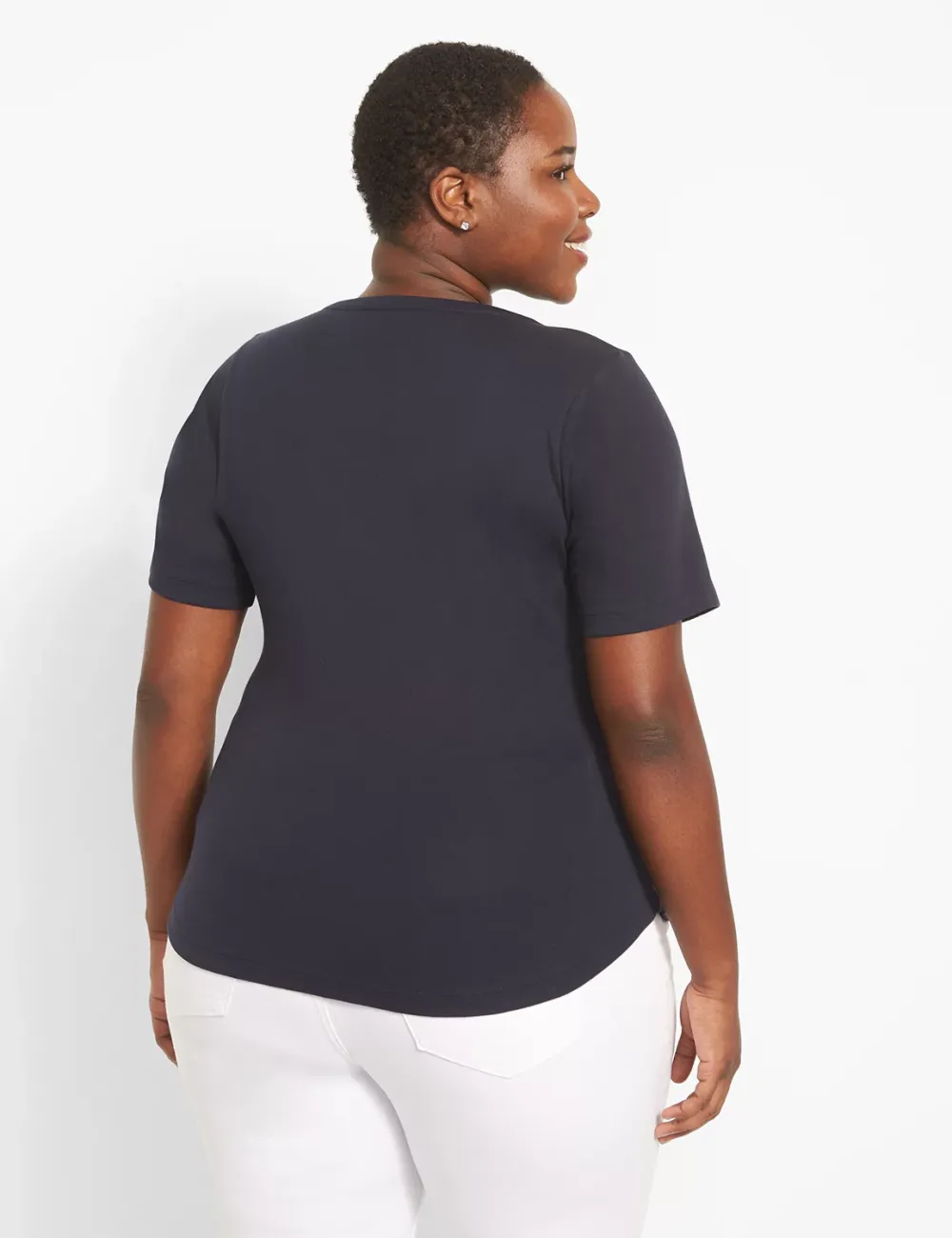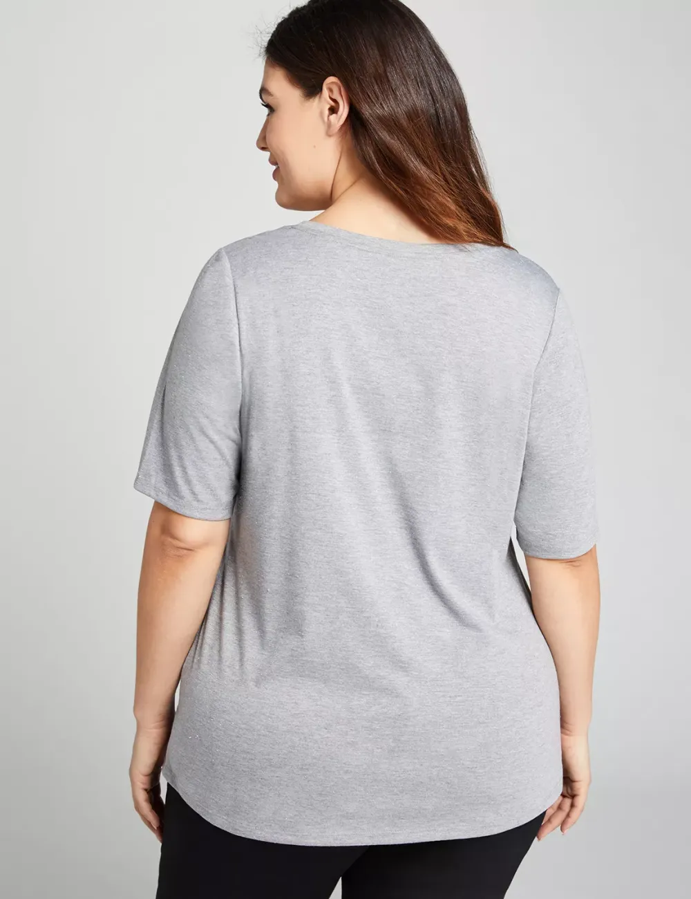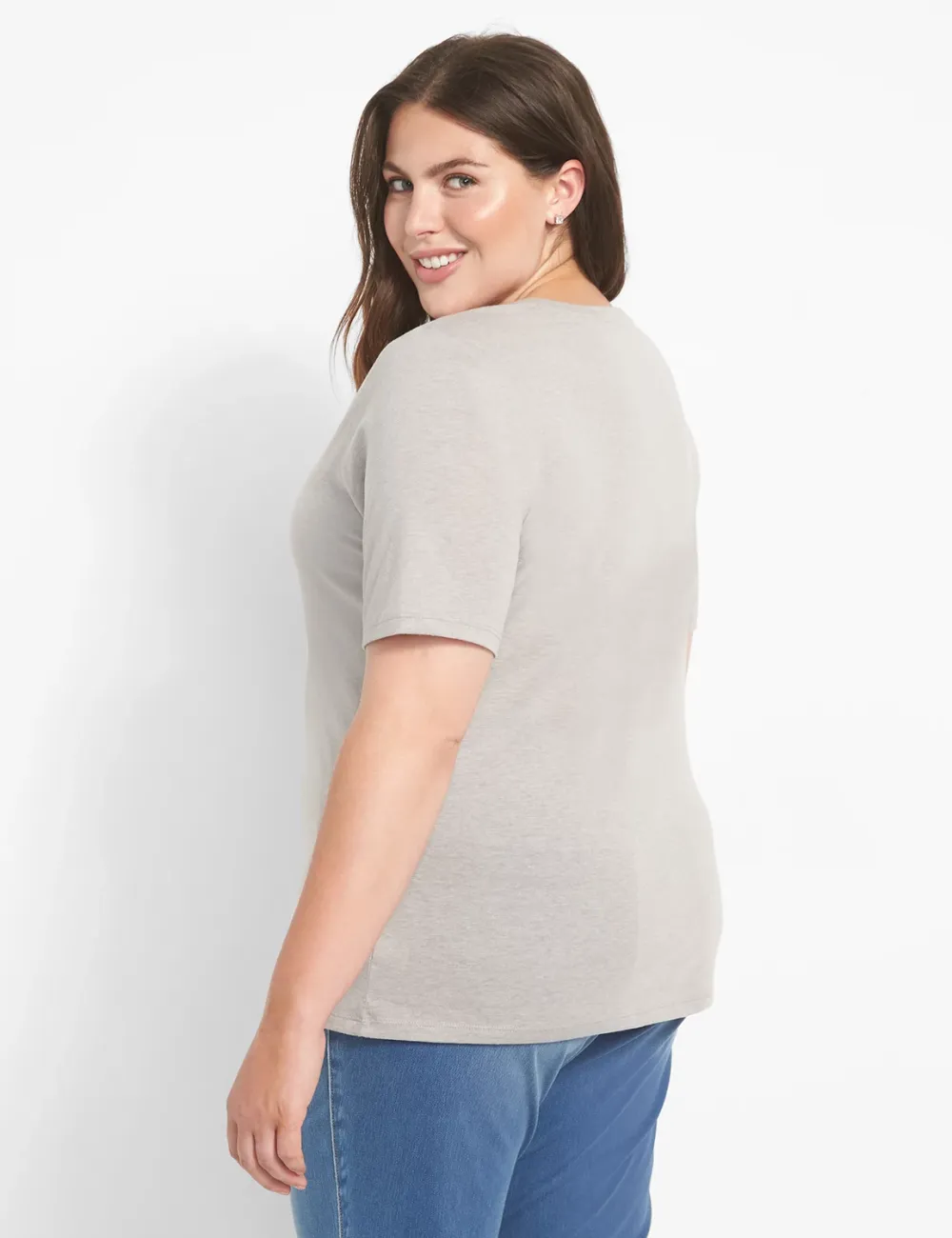 Classic 3/4-Sleeve Notch-Neck Ruched-Side Tee