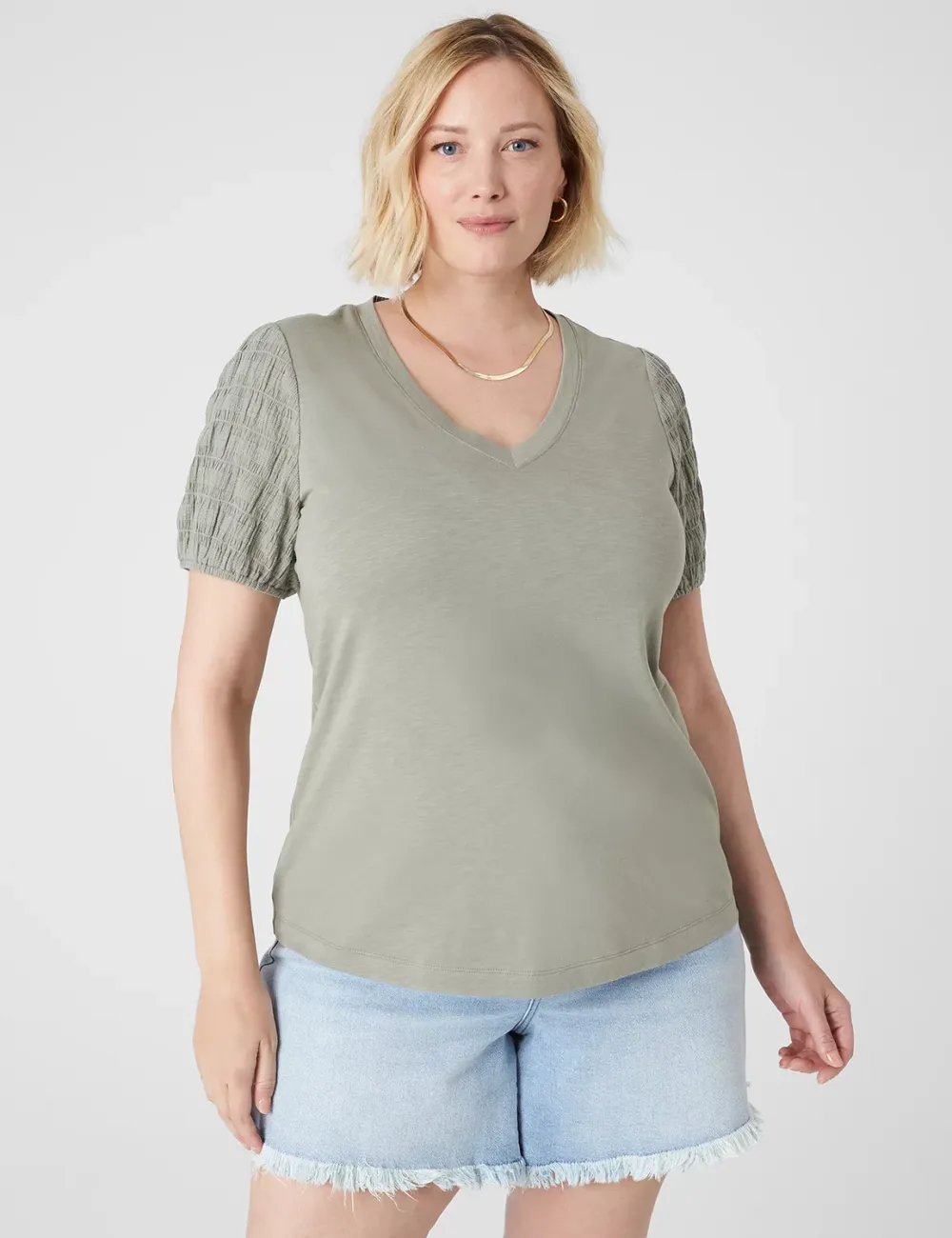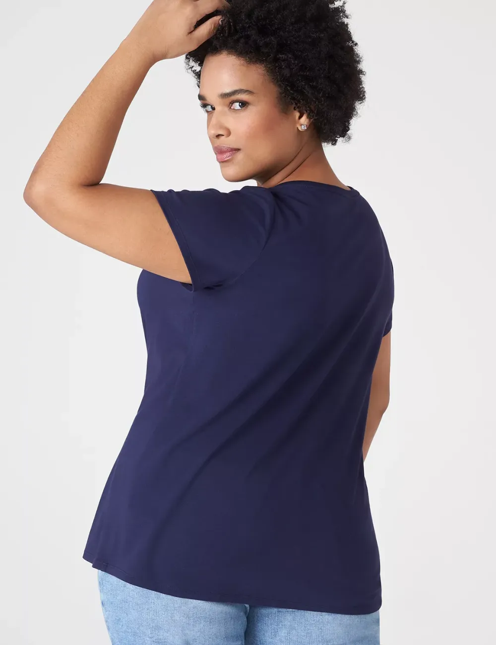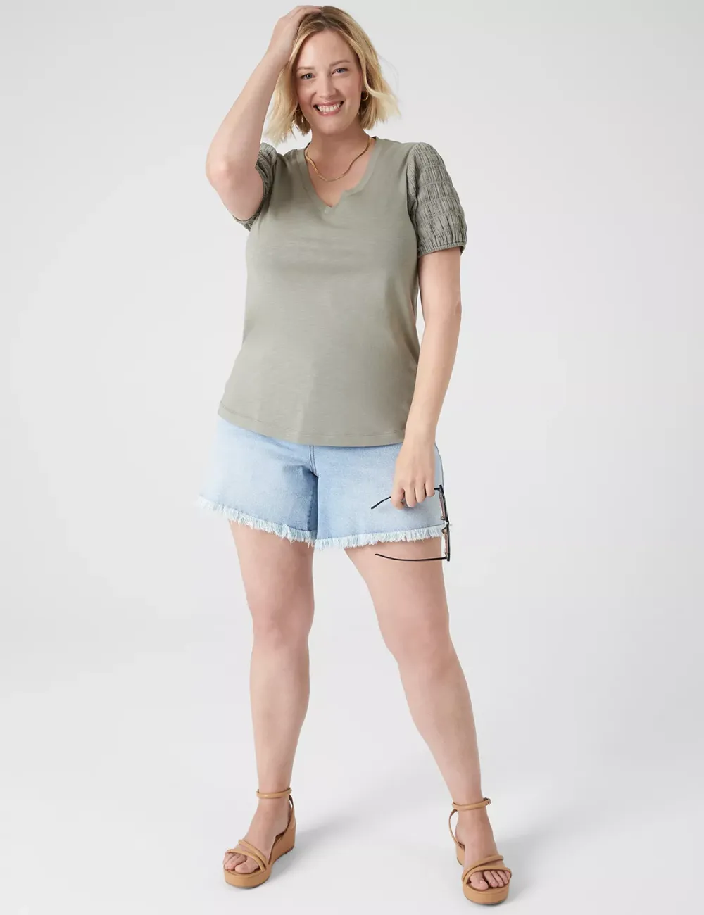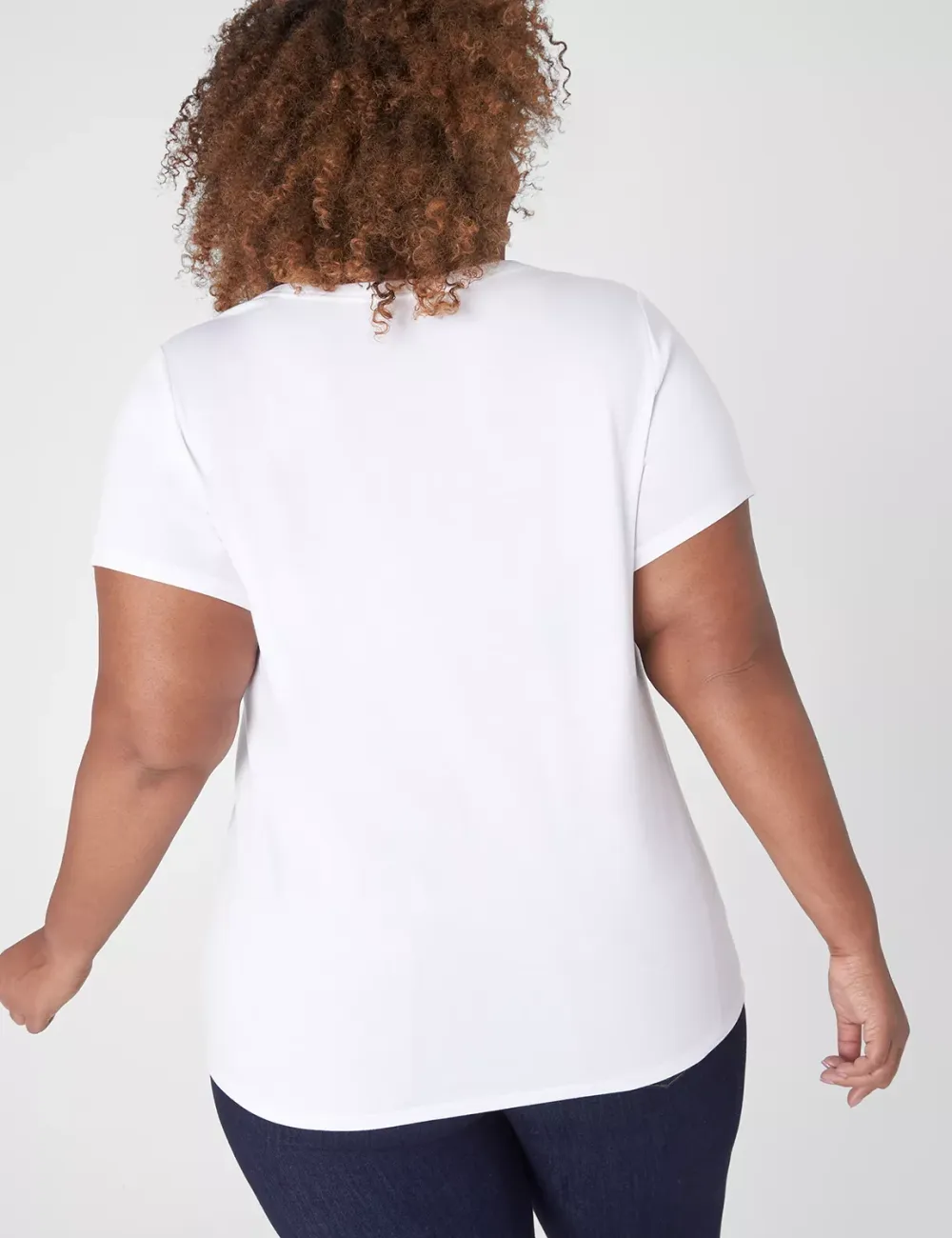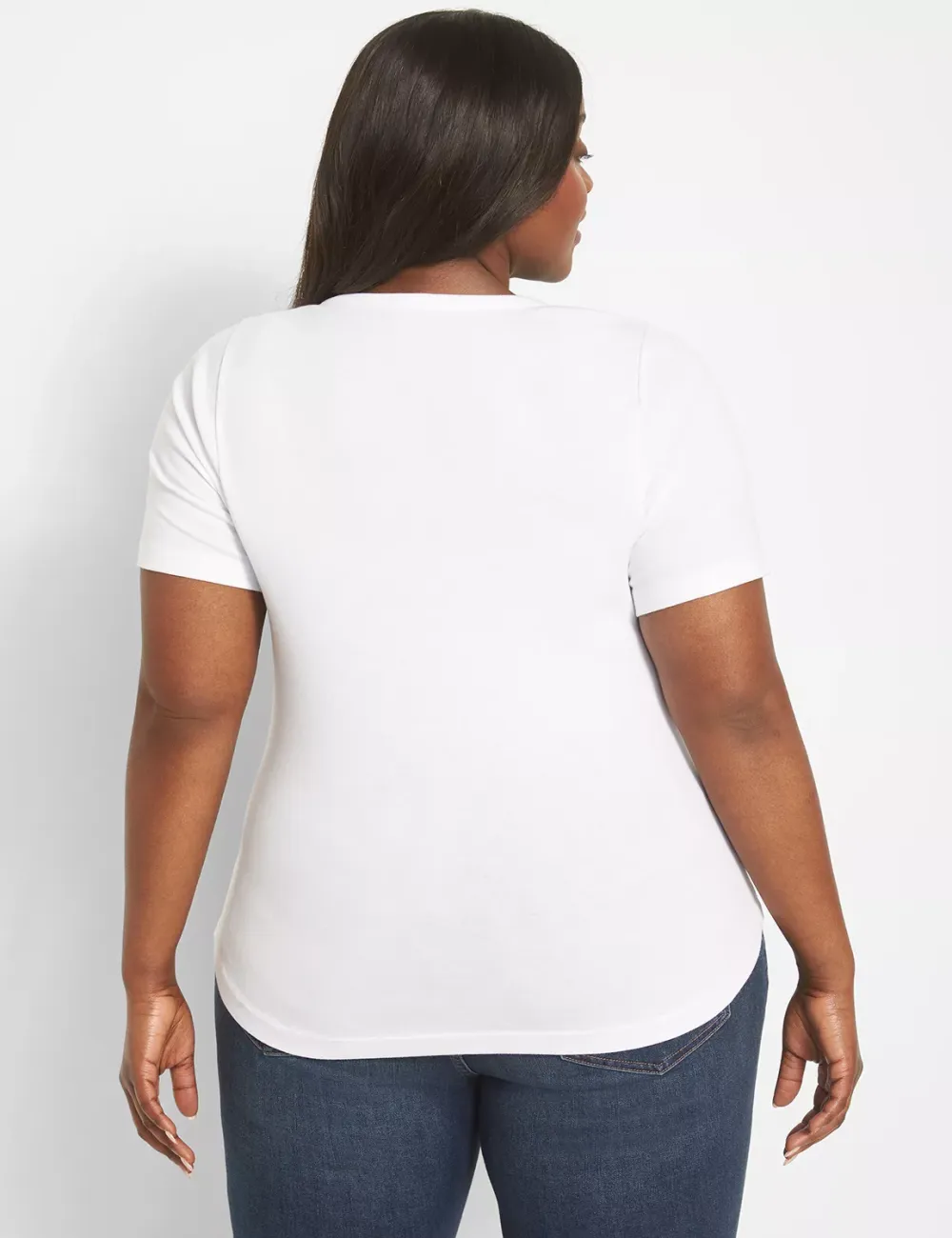 Classic 3/4-Sleeve Notch-Neck Ruched-Side Tee