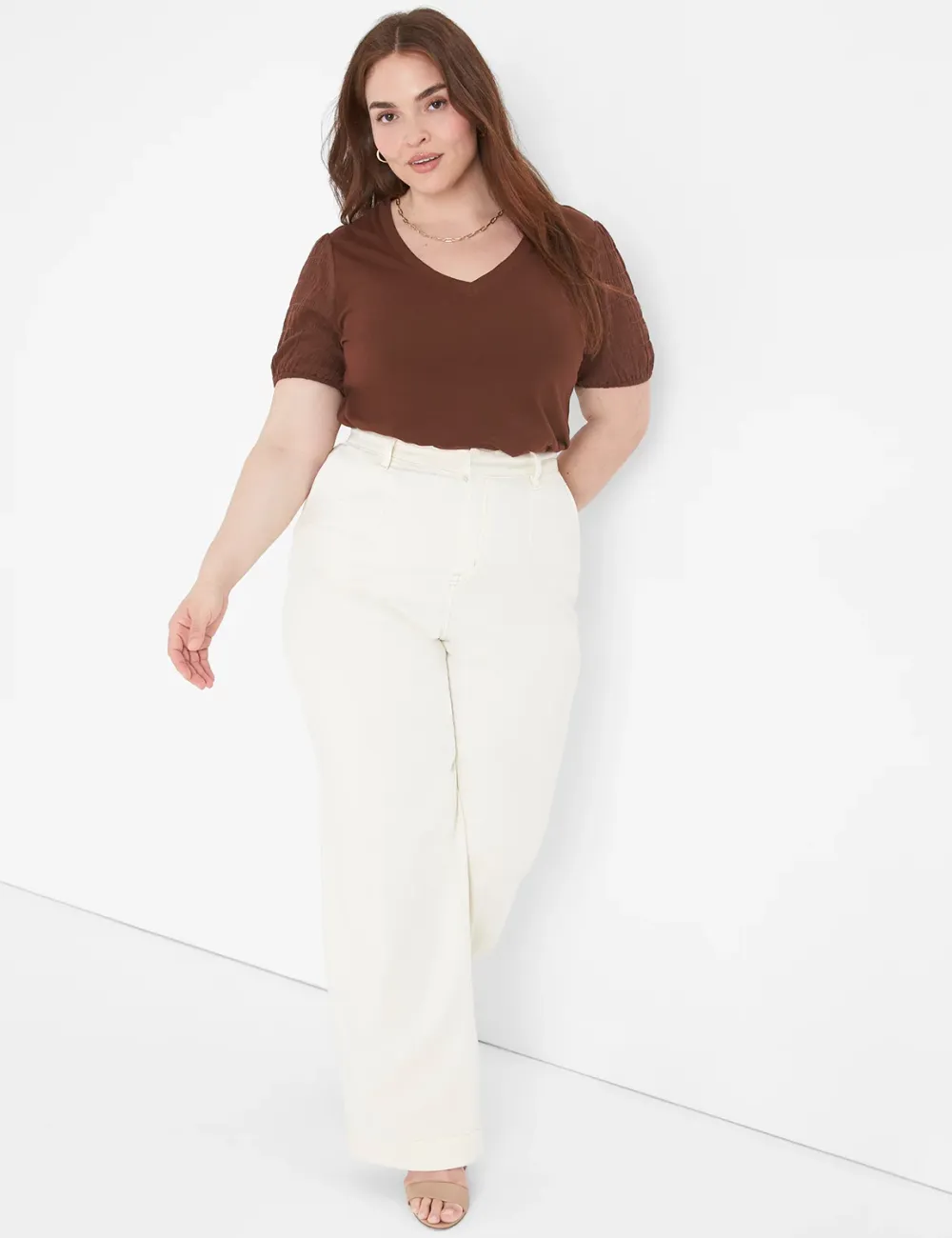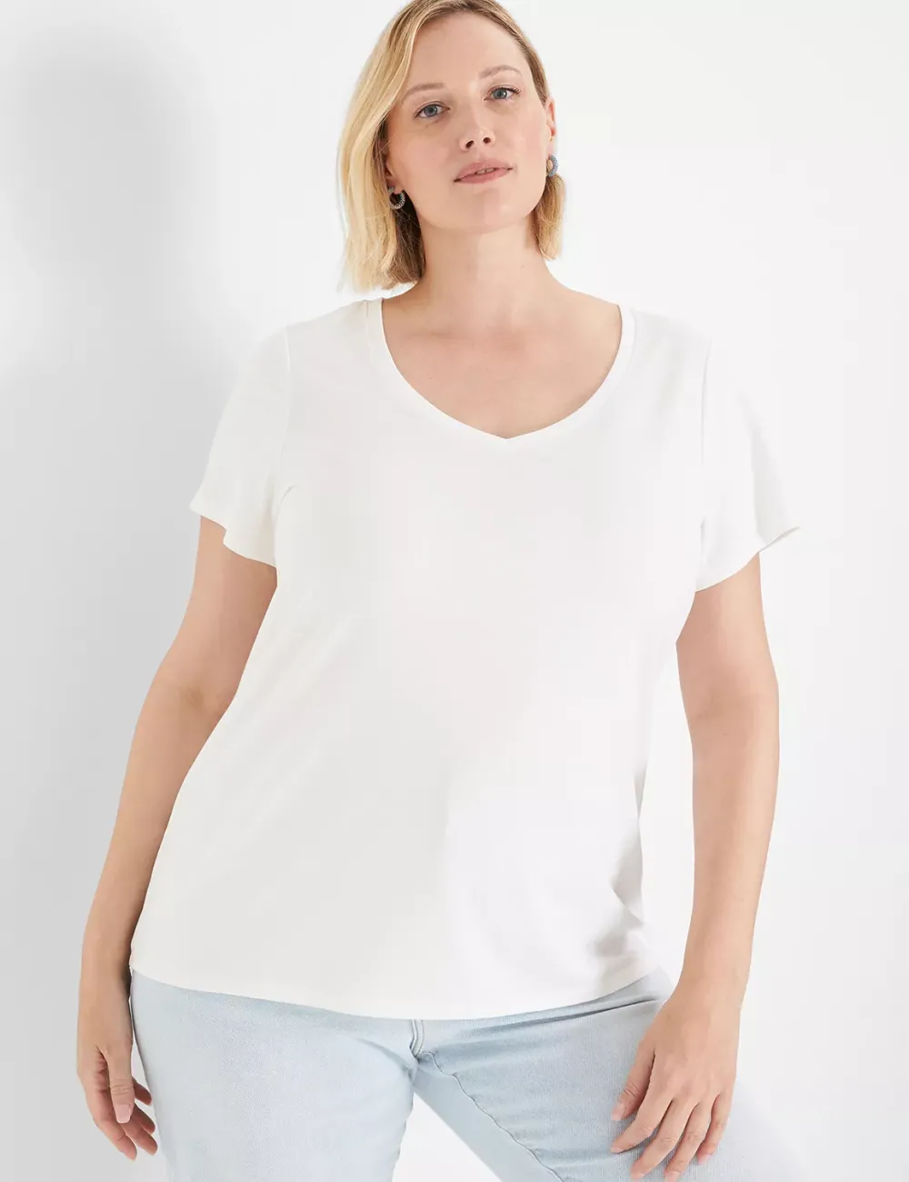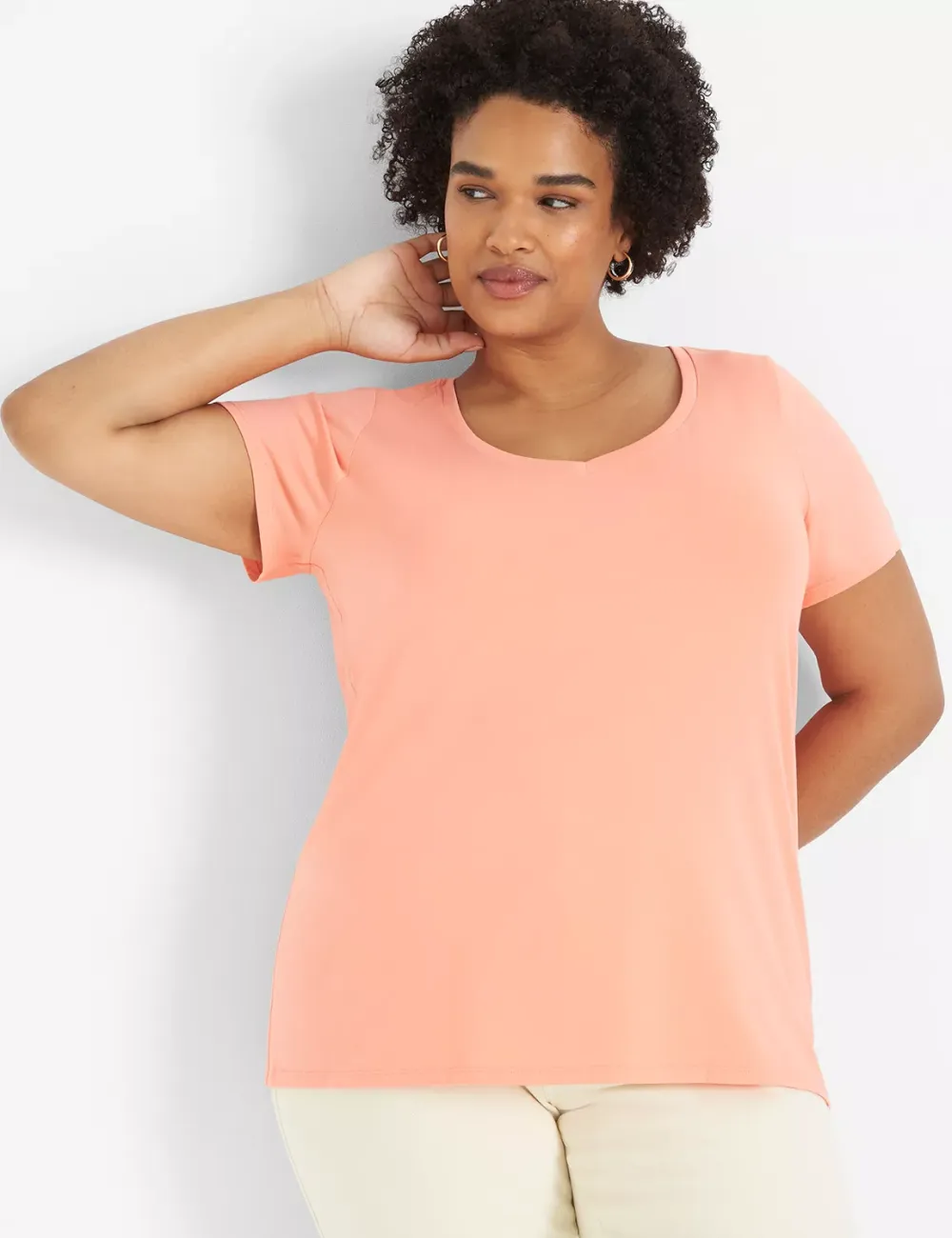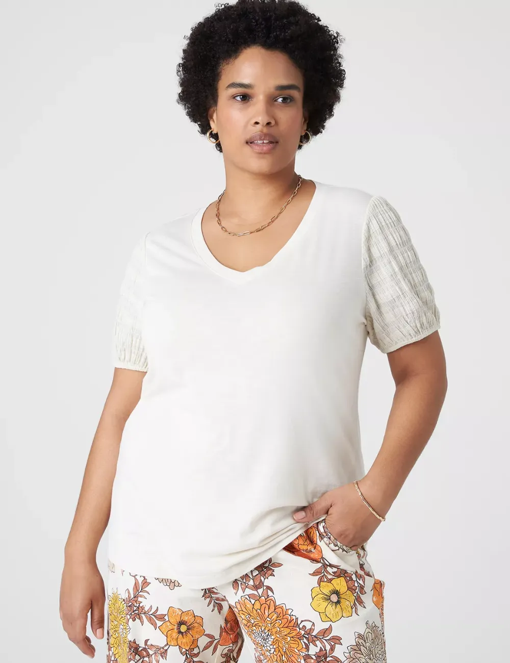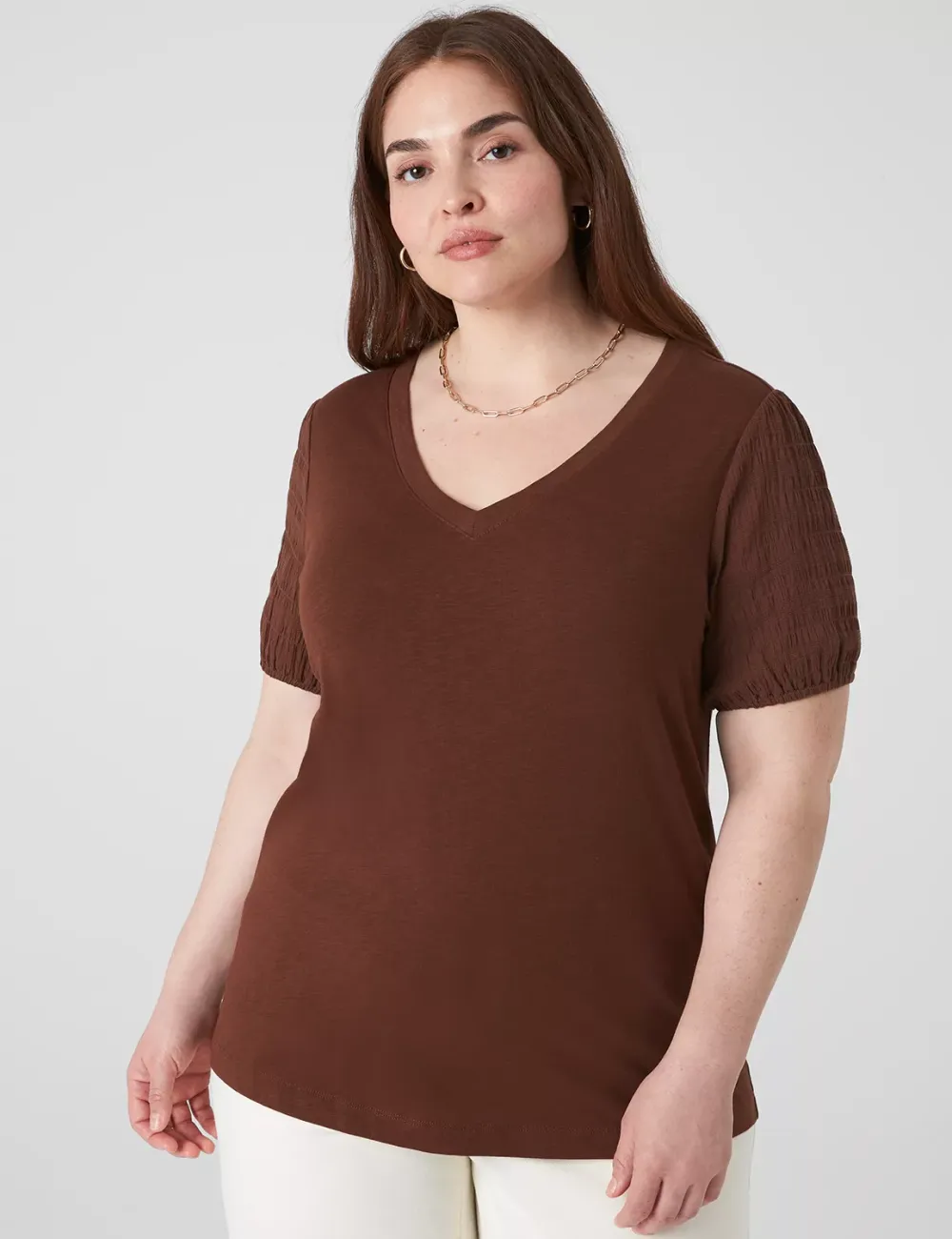 Classic 3/4-Sleeve Notch-Neck Ruched-Side Tee