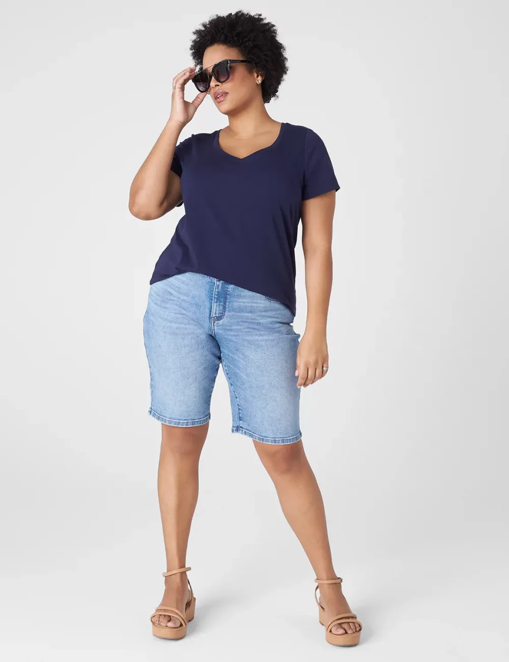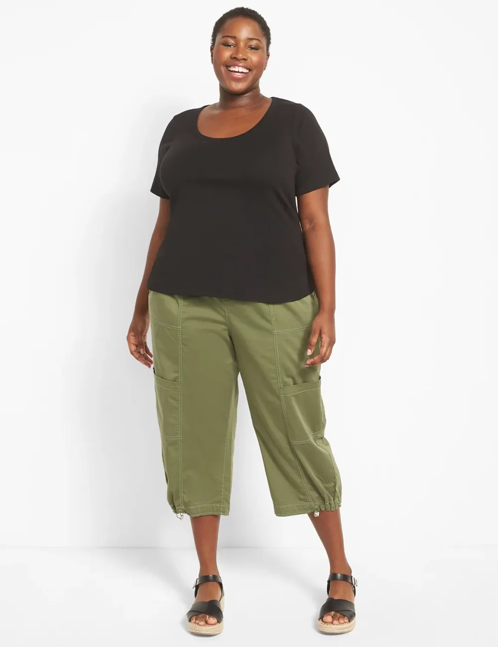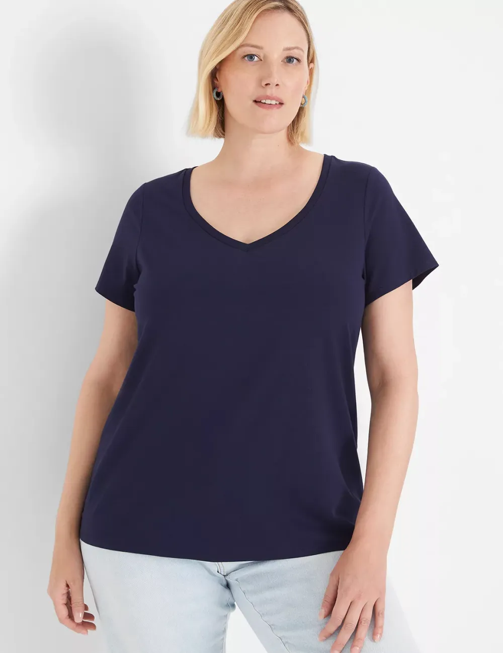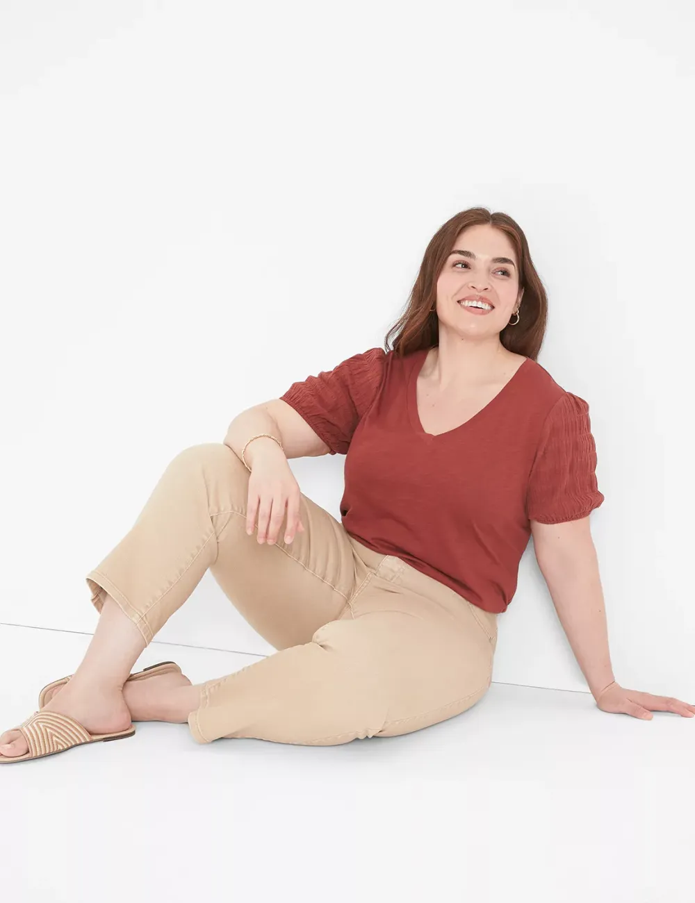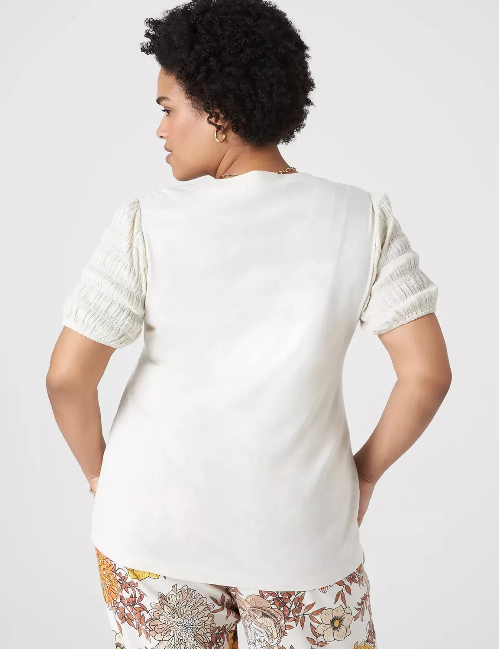 Classic 3/4-Sleeve Notch-Neck Ruched-Side Tee