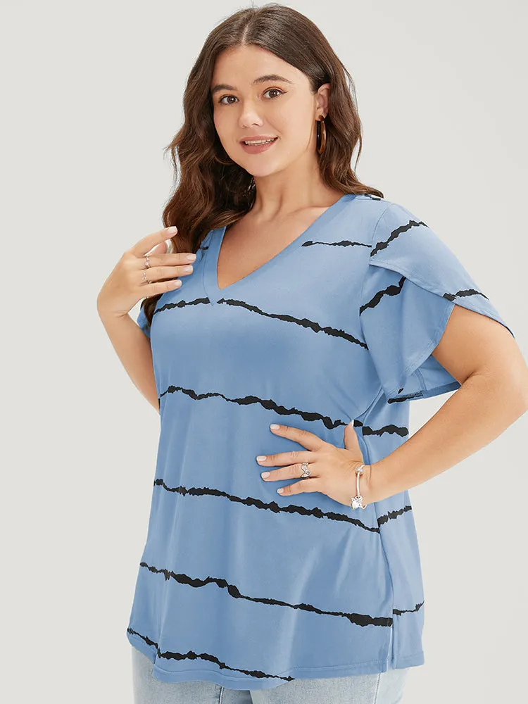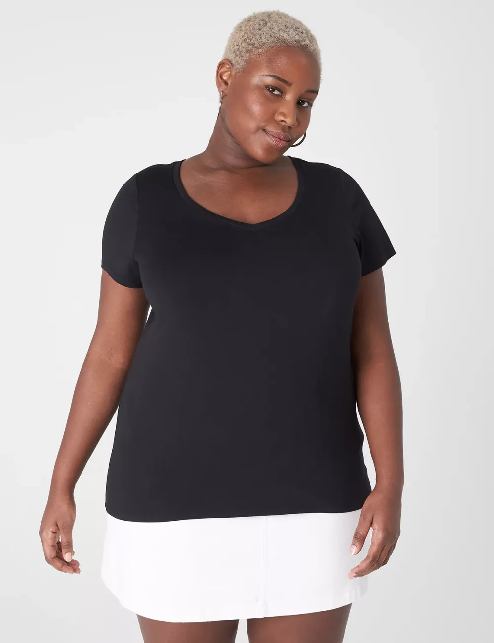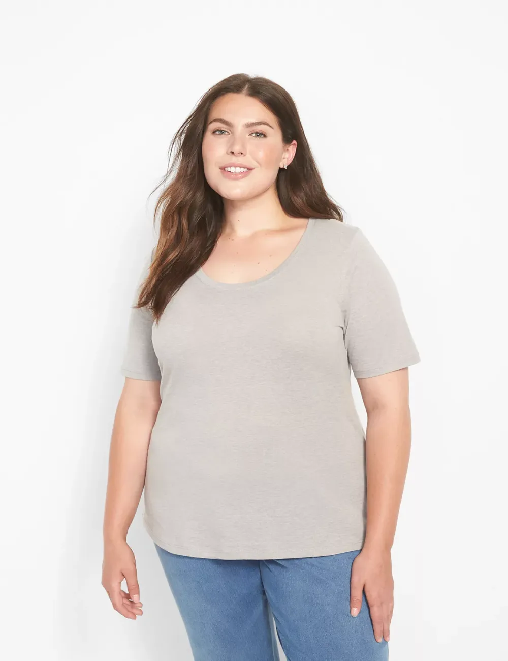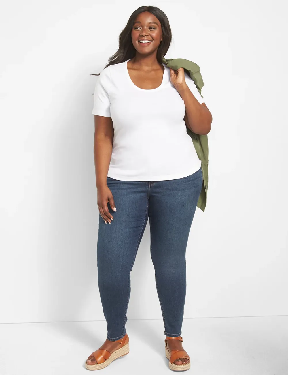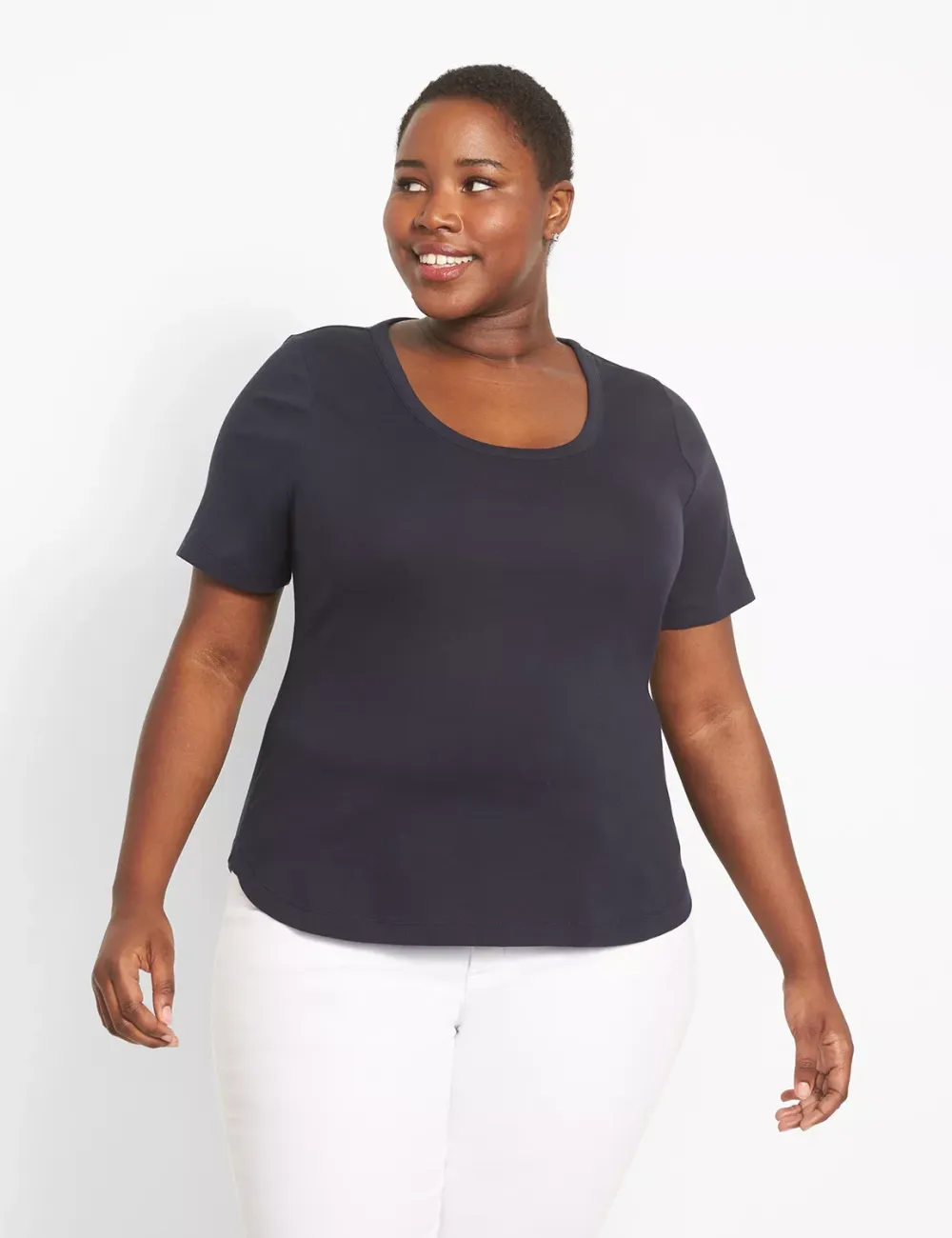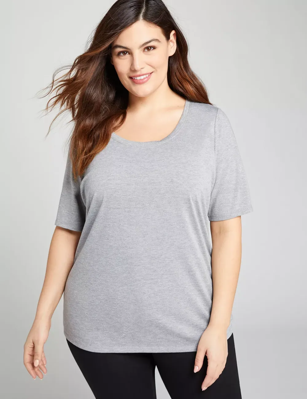 Classic 3/4-Sleeve Notch-Neck Ruched-Side Tee