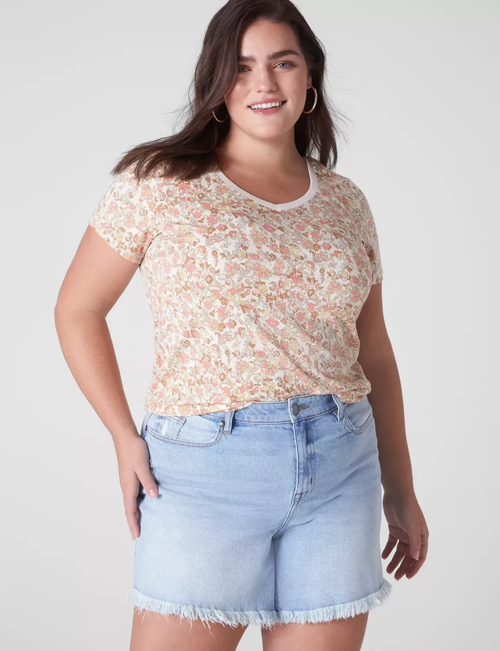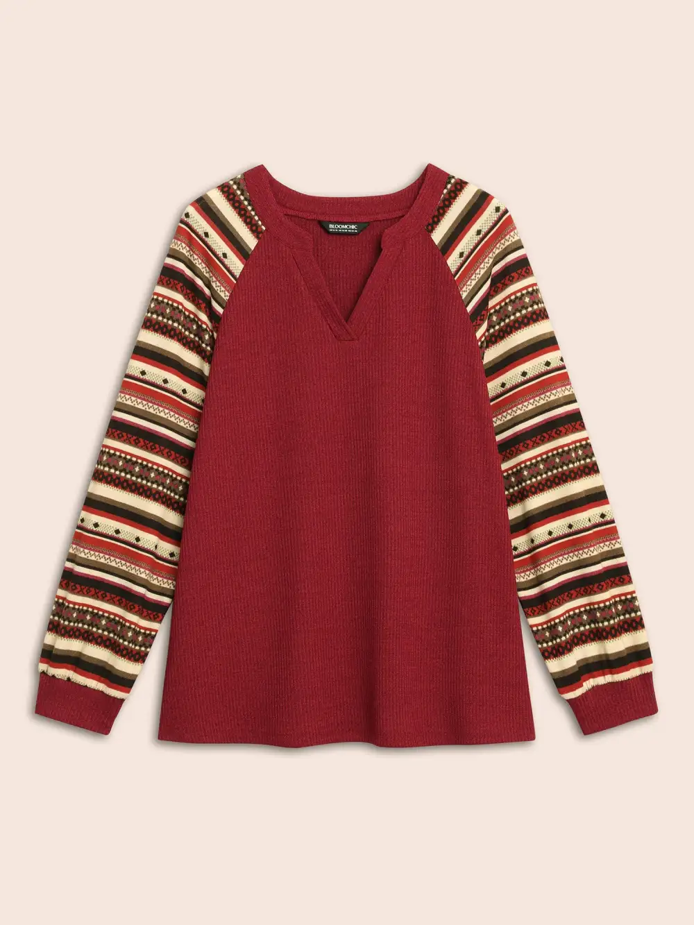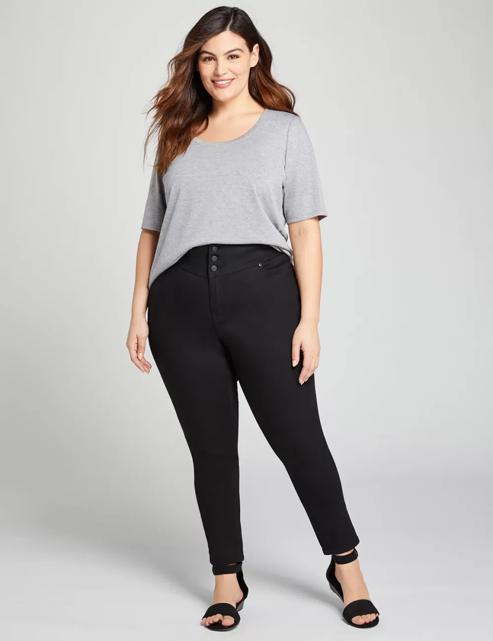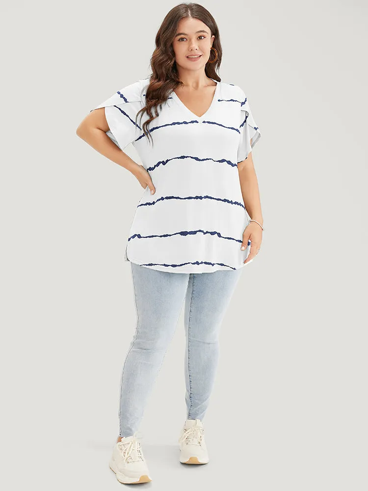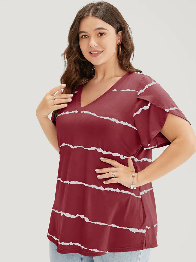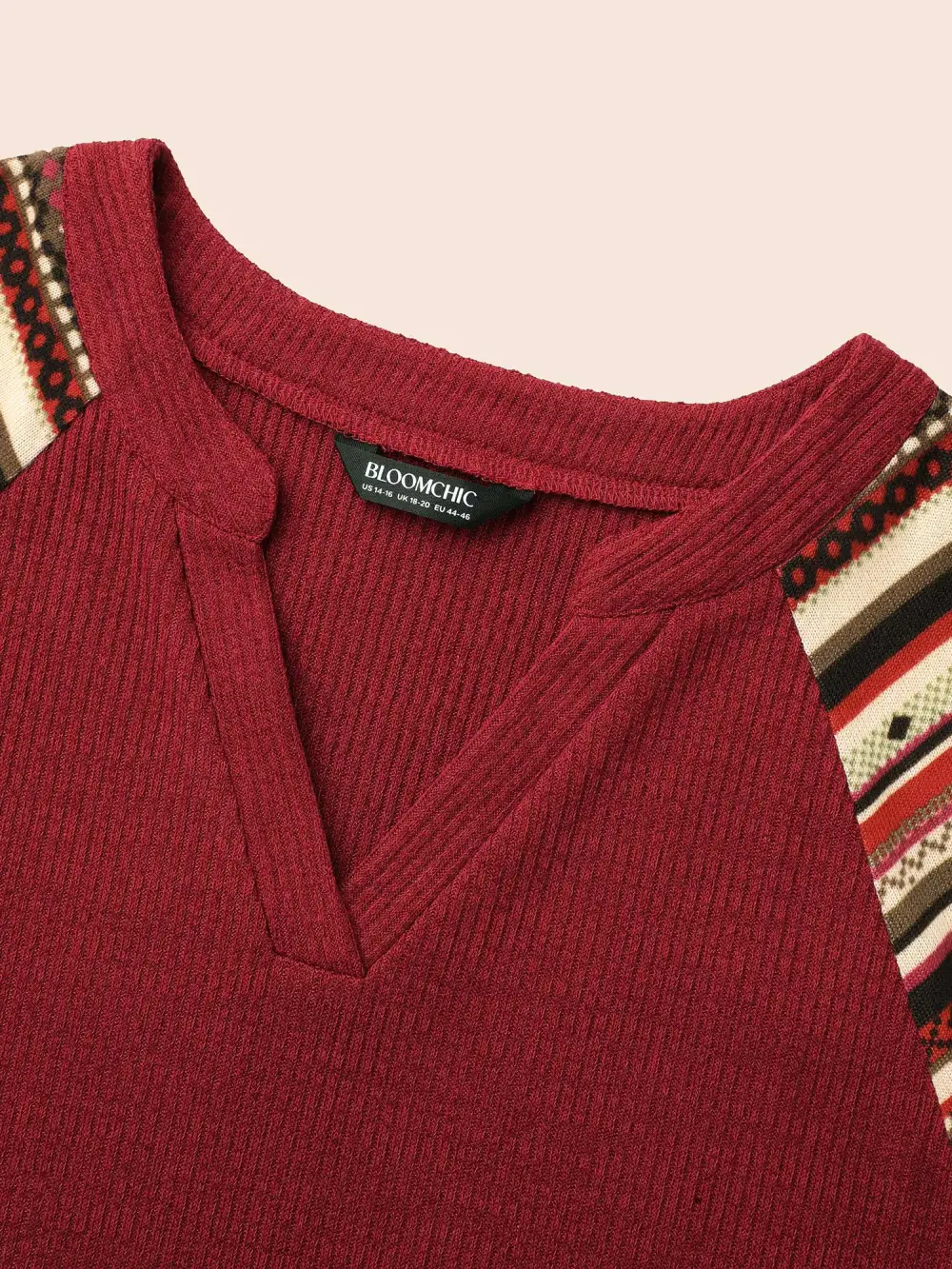 Classic 3/4-Sleeve Notch-Neck Ruched-Side Tee
