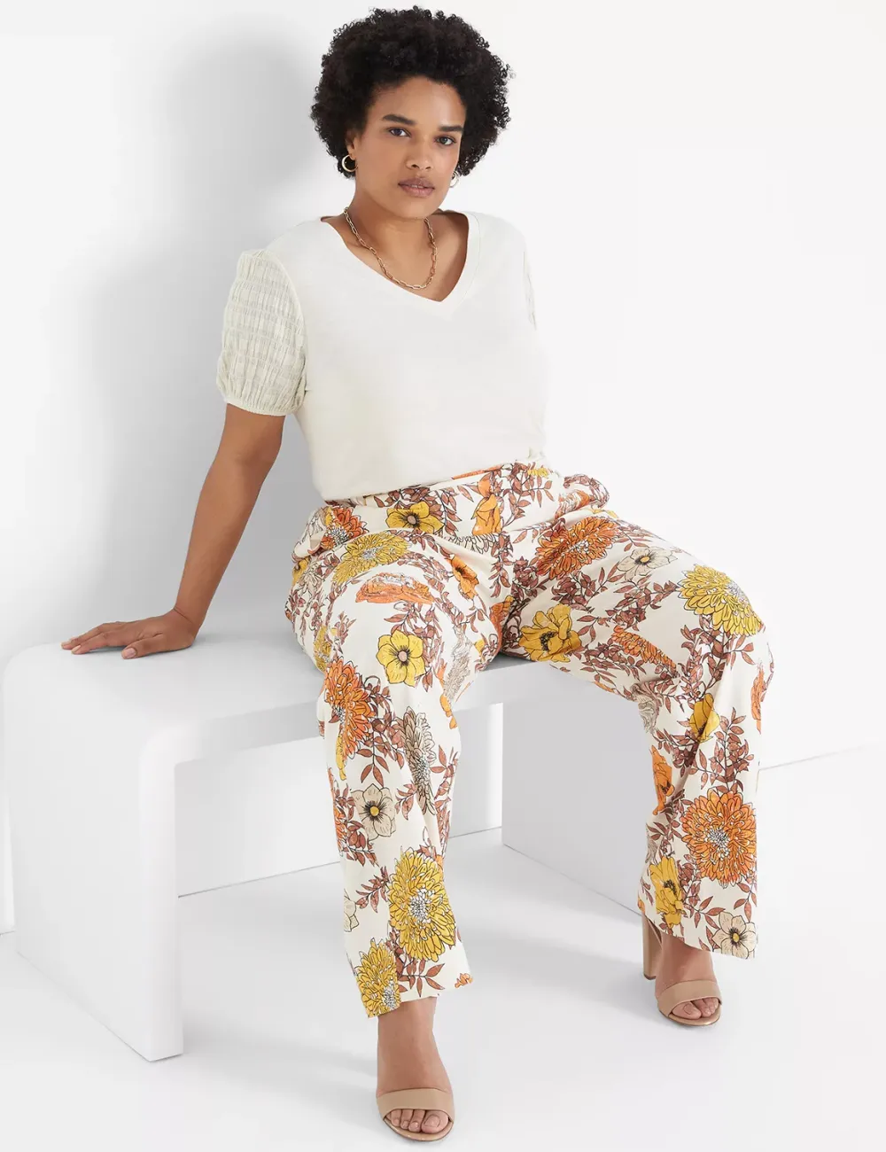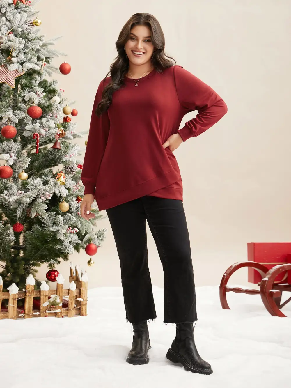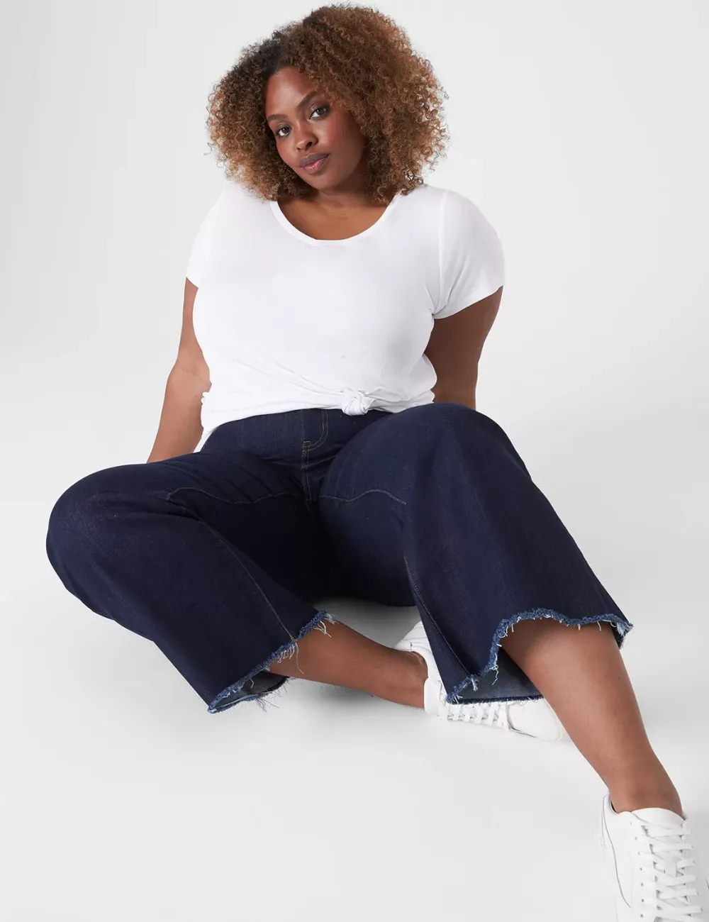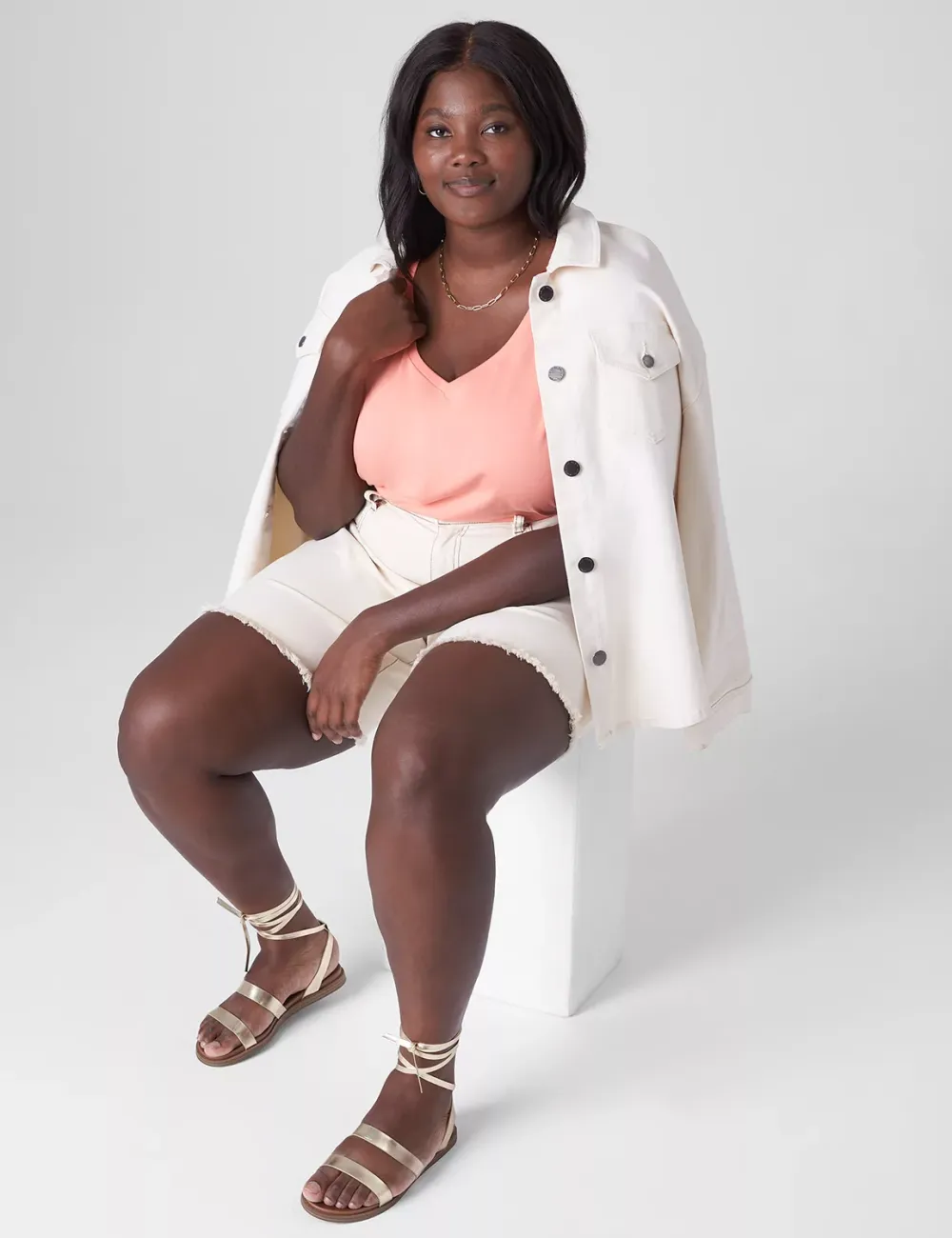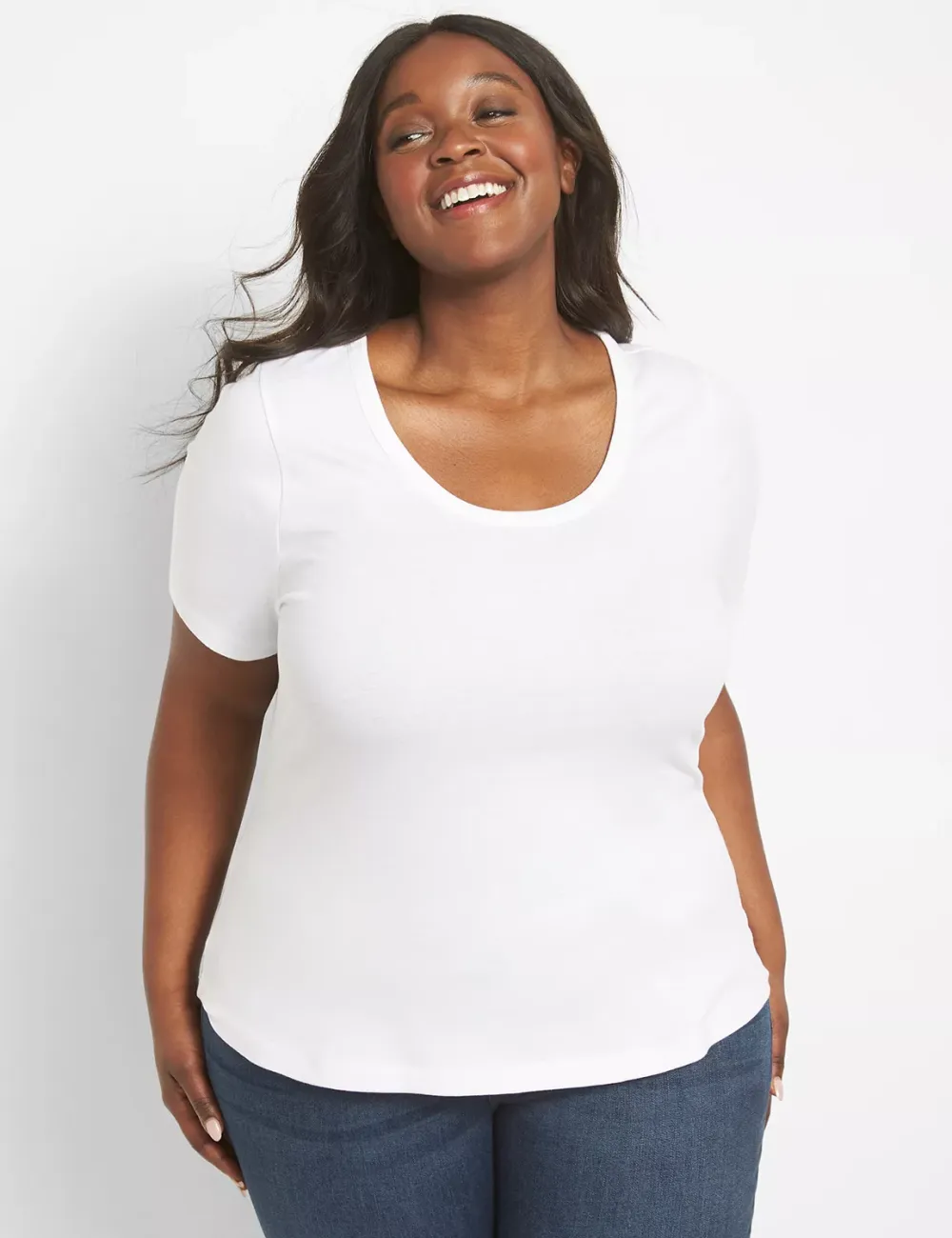 Classic 3/4-Sleeve Notch-Neck Ruched-Side Tee