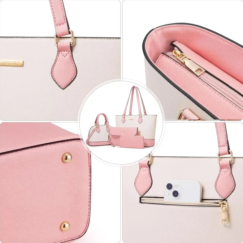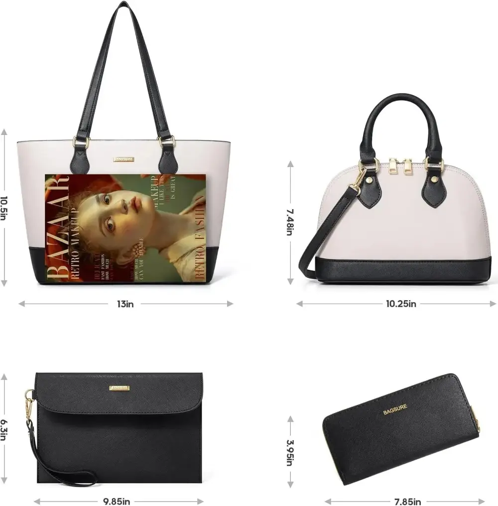 4PCS Women Fashion Handbags Purses Wallet Tote Shoulder Bags