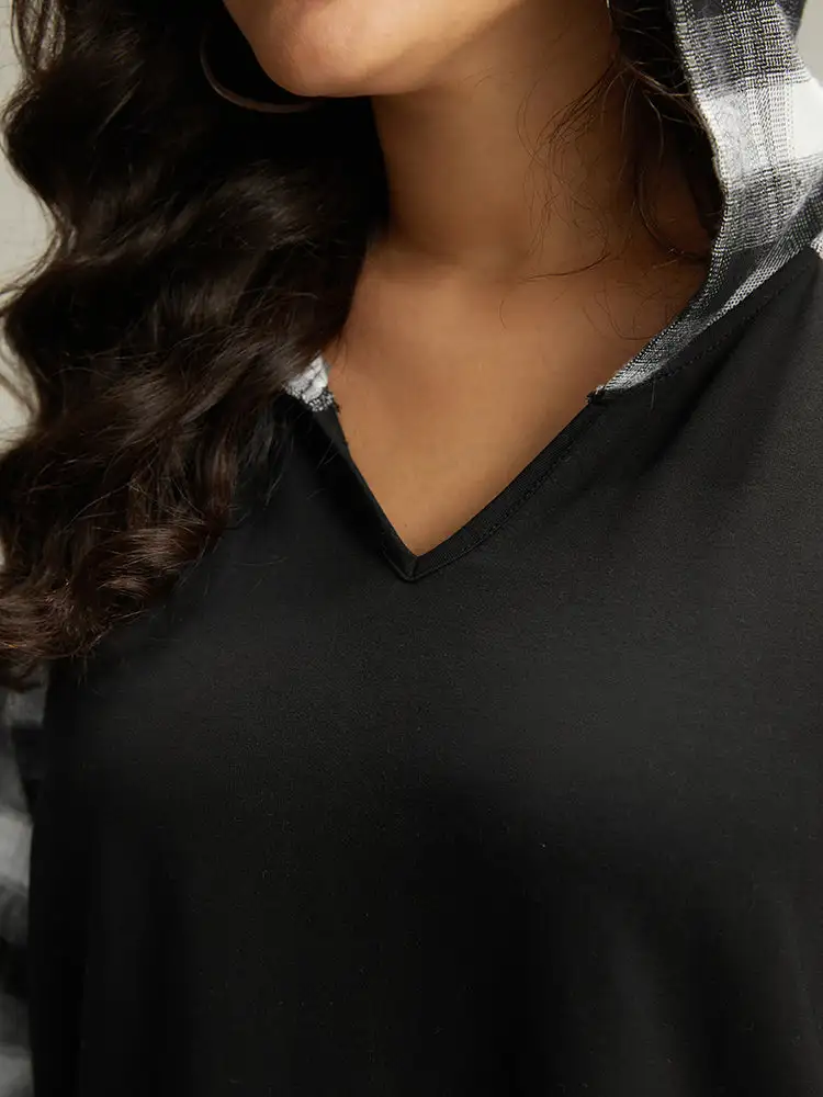 Contrast Cable Knit Pocket Hooded Drawstring Sweatshirt