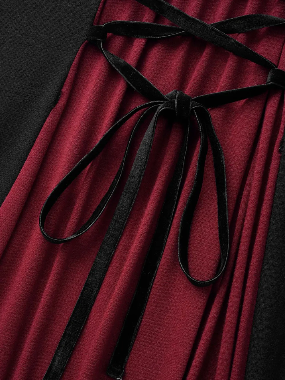 Stretchy Knit Adjustable Tie Frill Trim Midi Dress