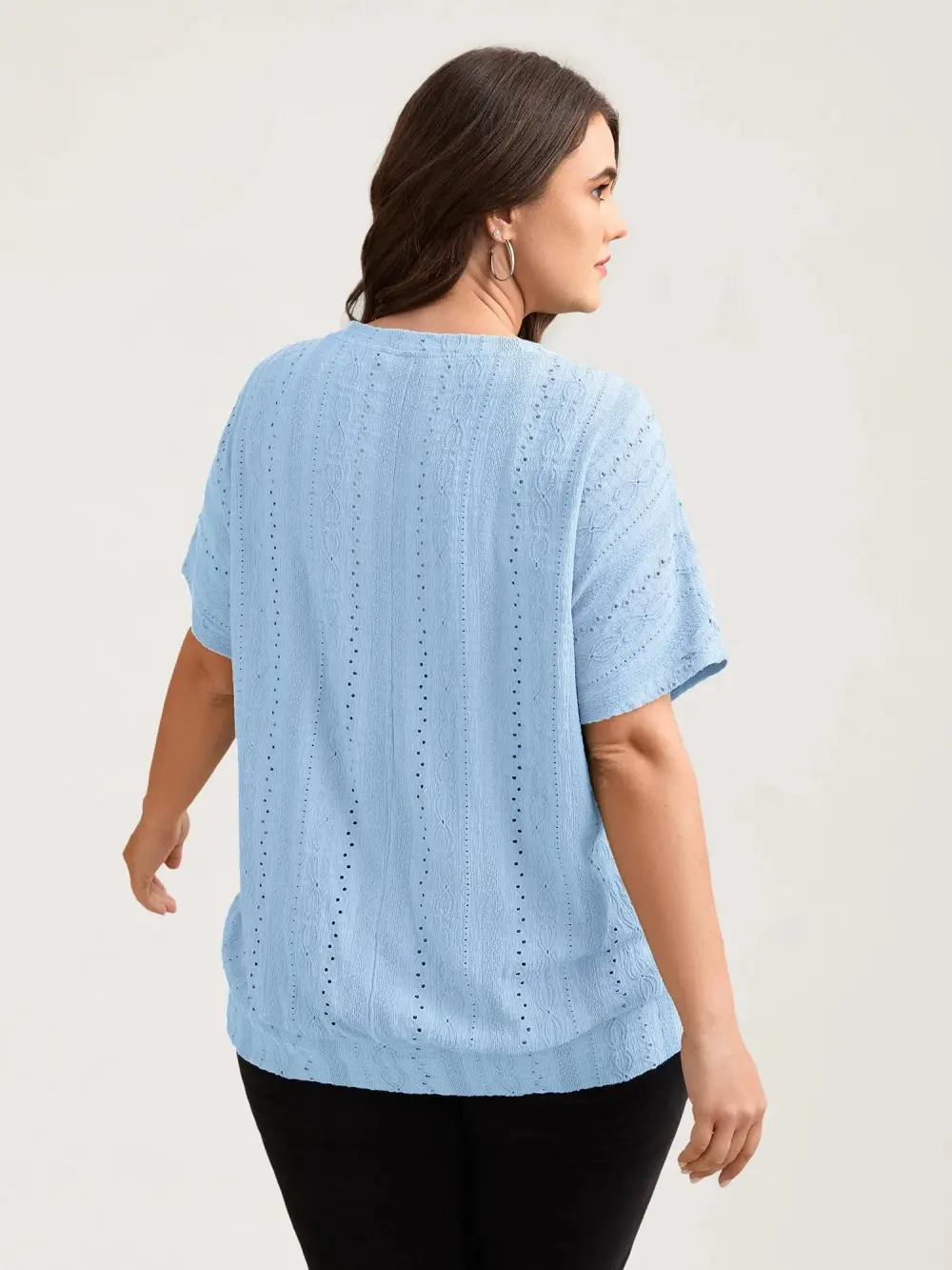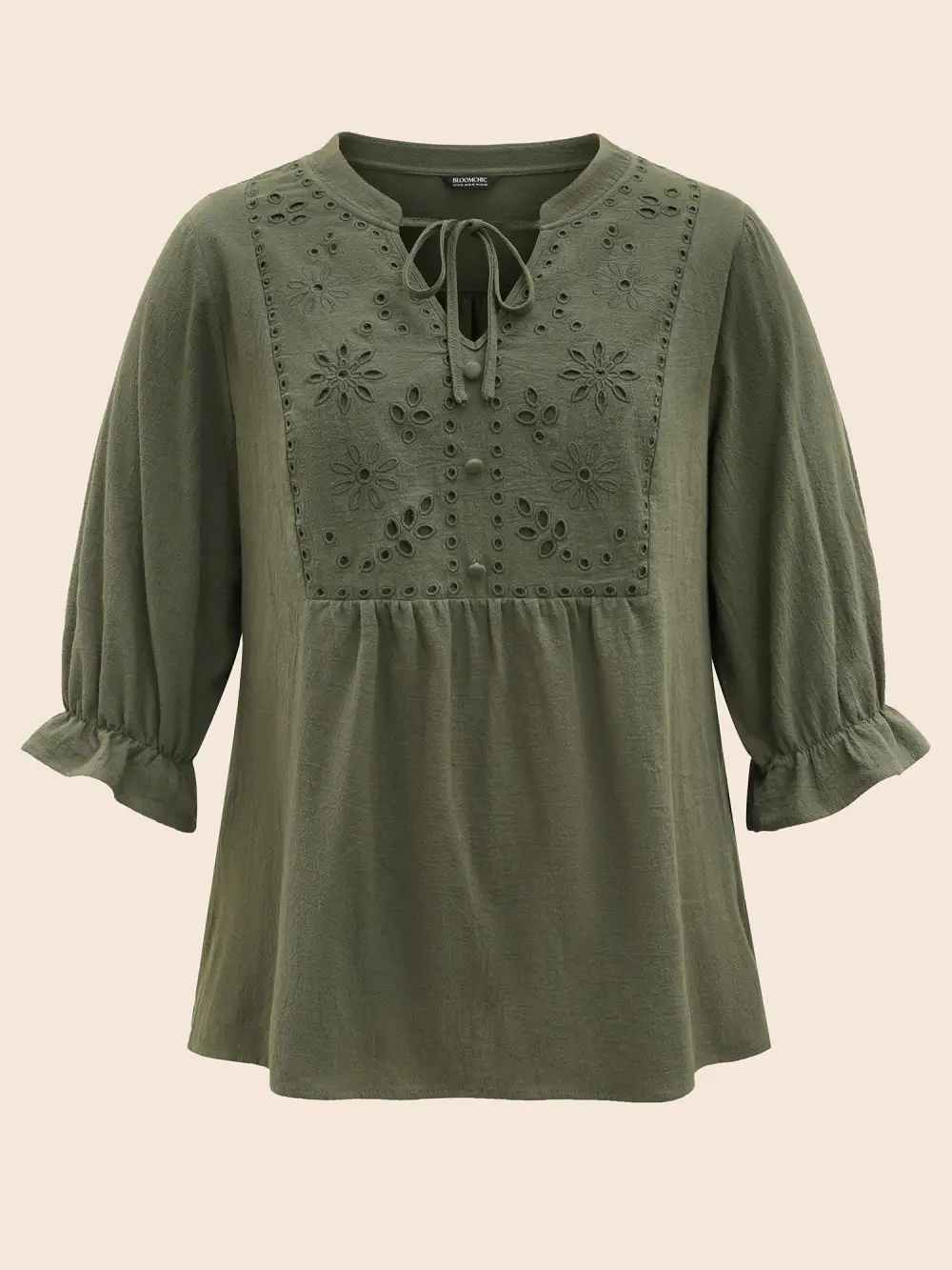 Broderie Anglaise Tie Knot Lantern Sleeve Blouse