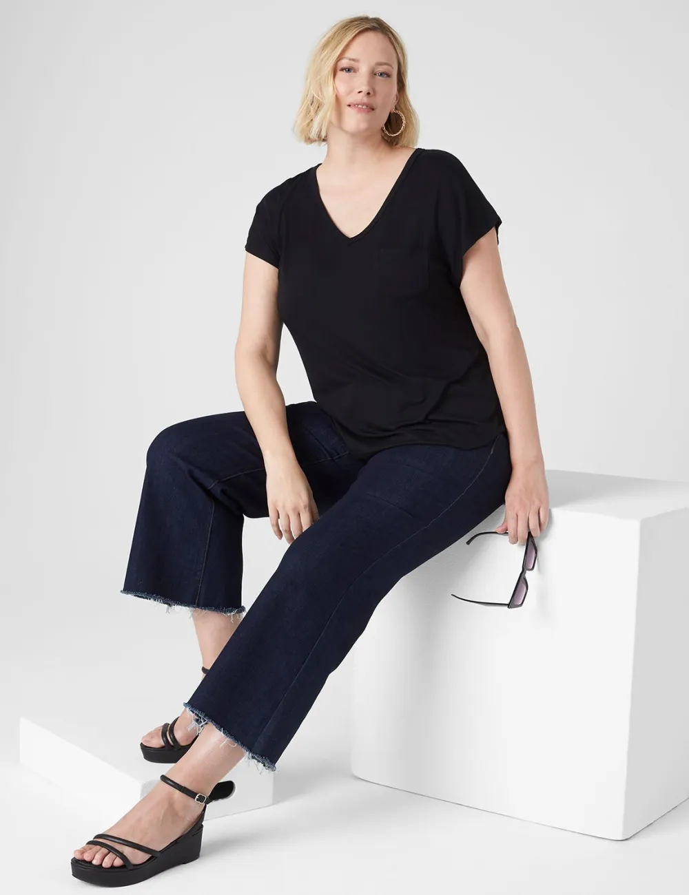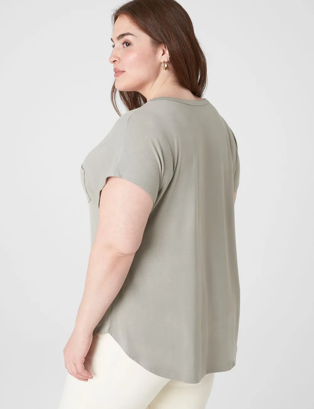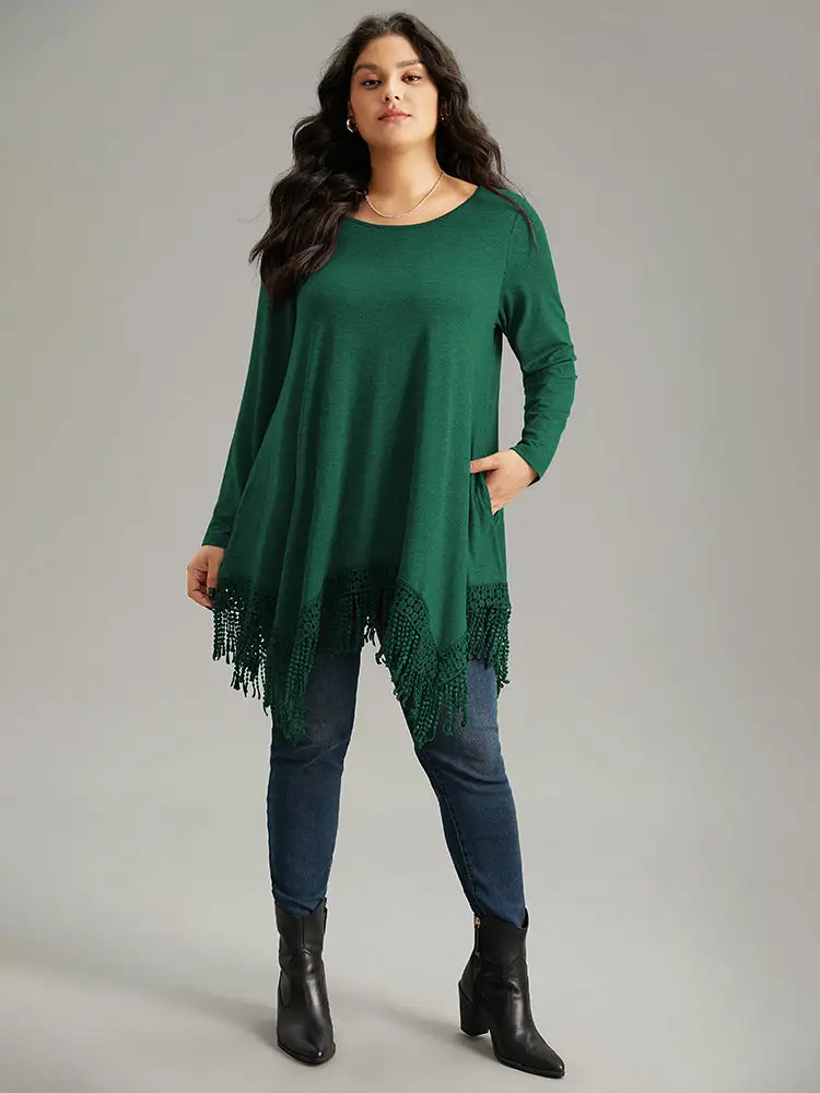 Solid Tassels Trim Pocket Asymmetrical Hem T-Shirt