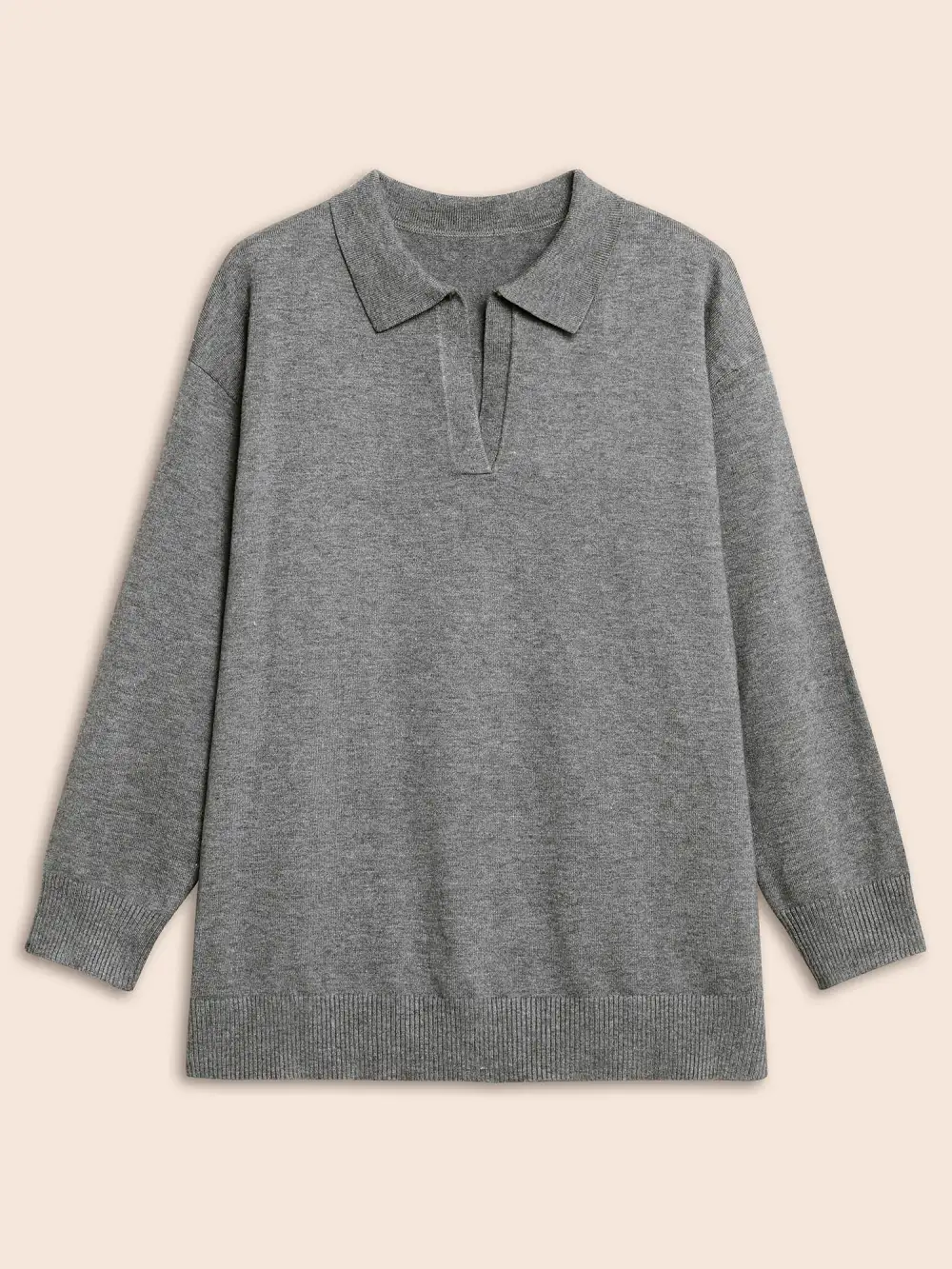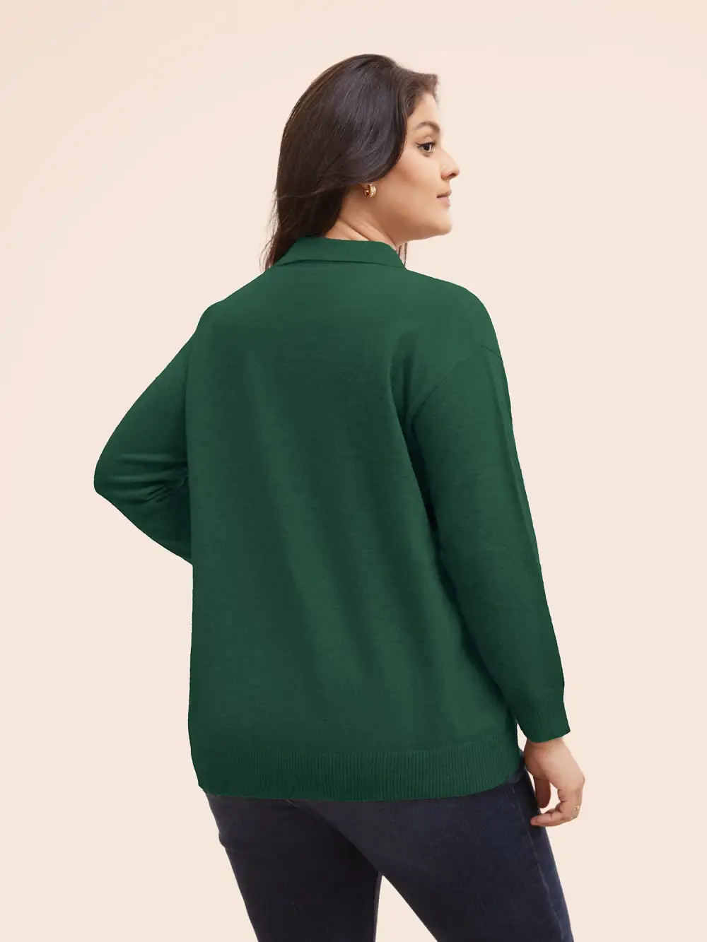 Polo Neck Drop Shoulder Sleeve Soft Pullover
