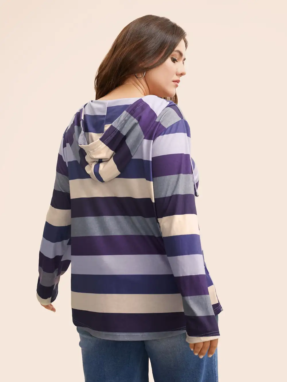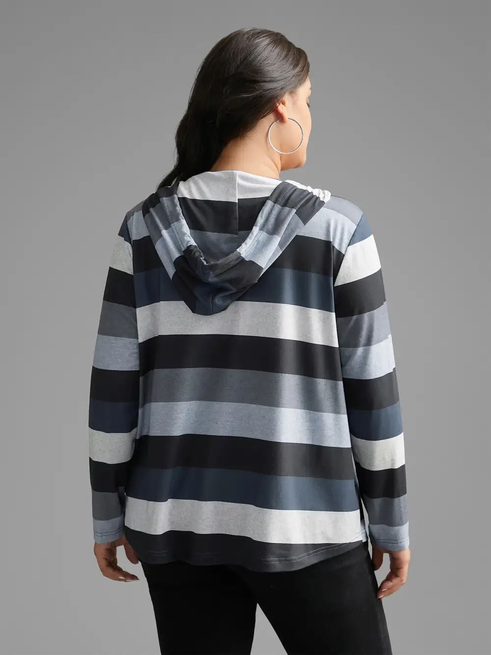 Contrast Striped Hooded Drawstring T-Shirt