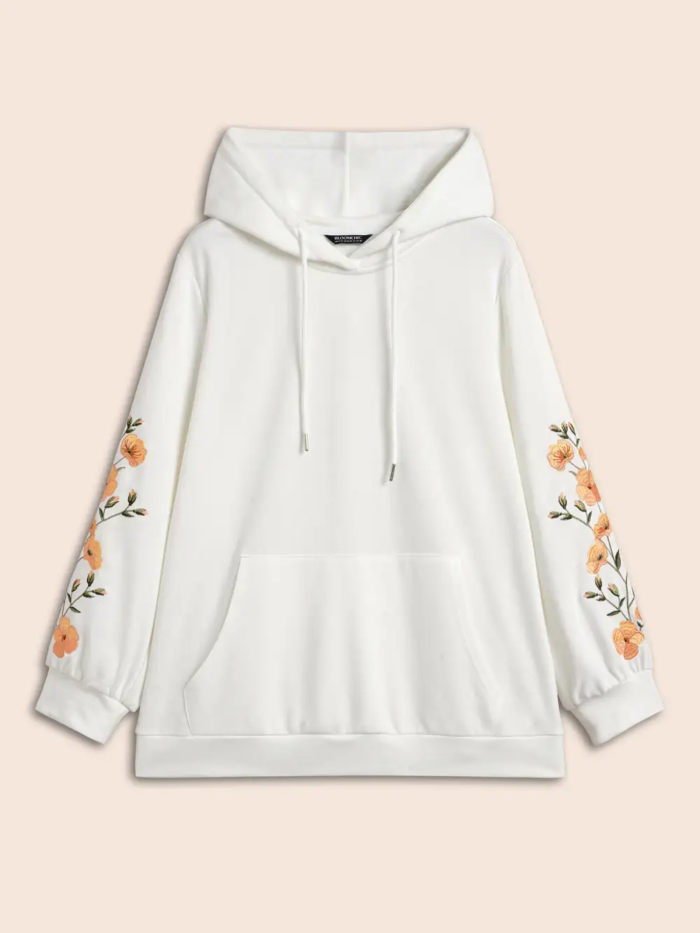 Floral Embroidered Hooded Drawstring Sweatshirt