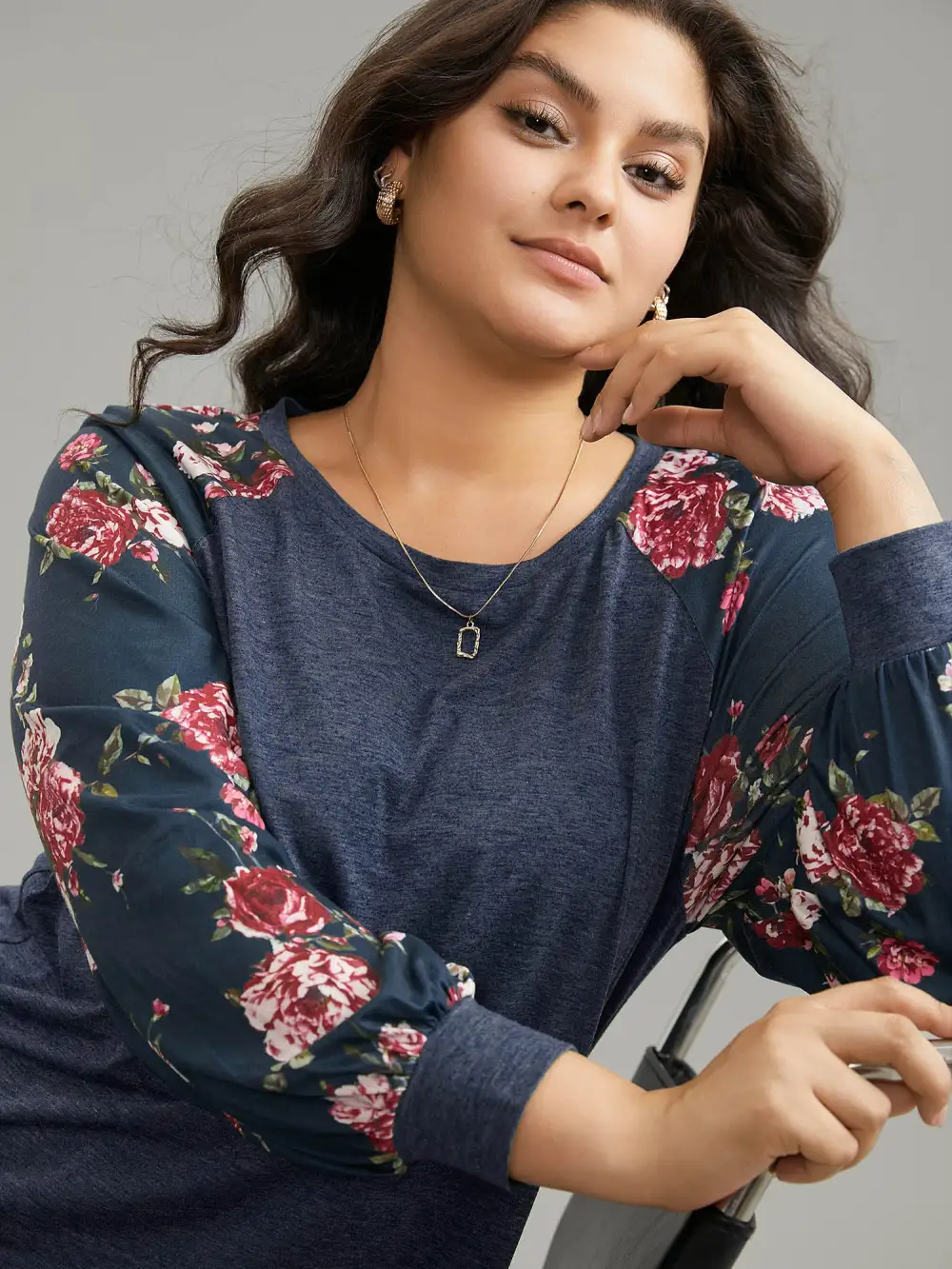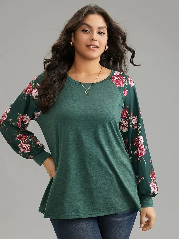 Floral Patchwork Crew Neck Raglan Sleeve T-Shirt
