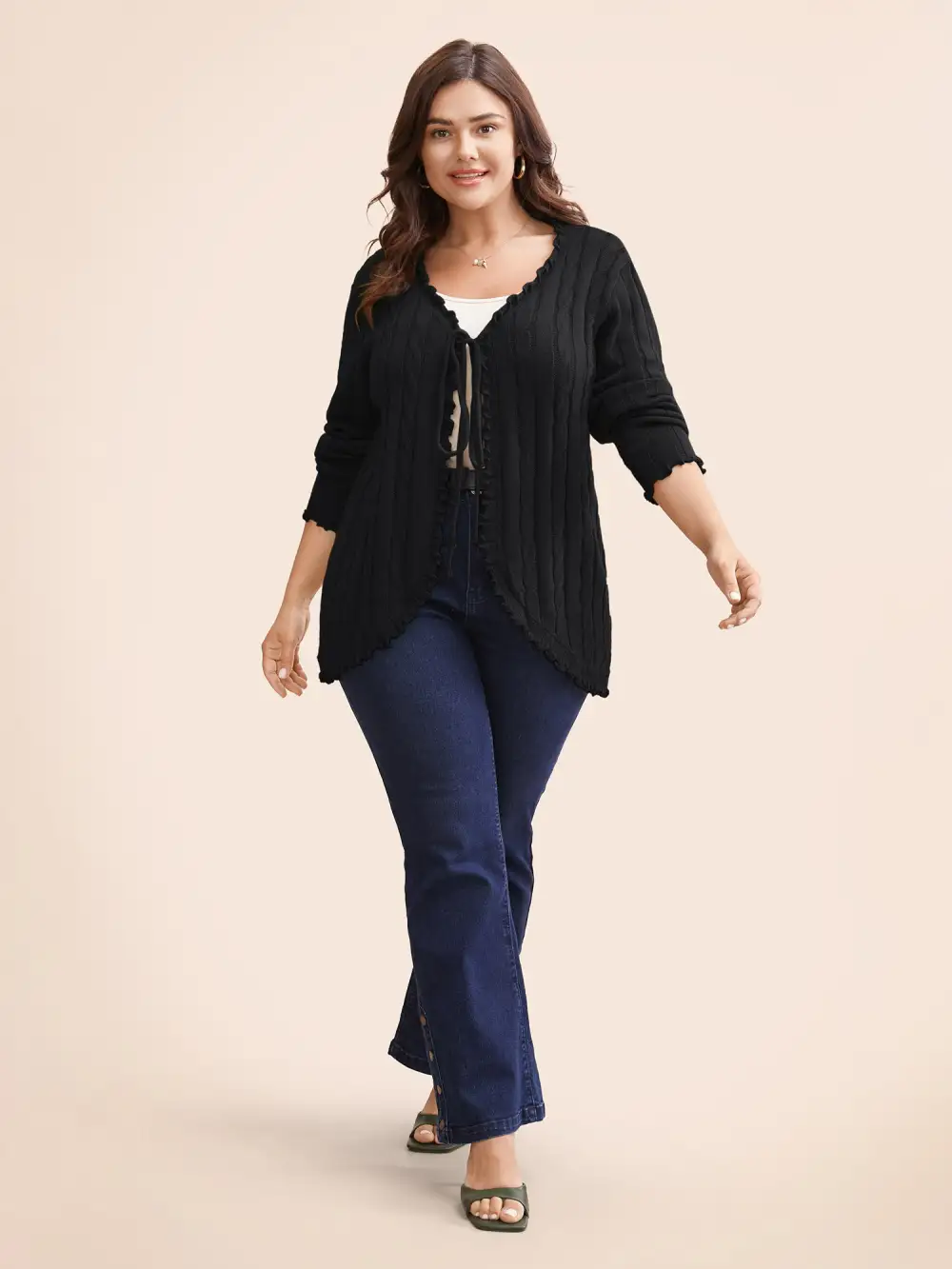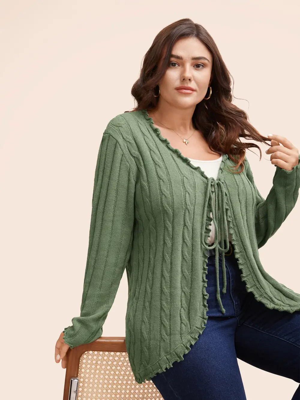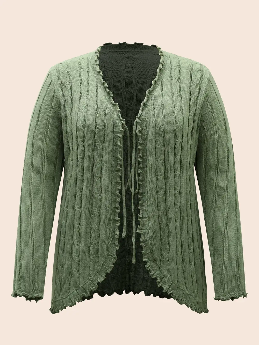 Cable Knit Tie Knot Frill Trim Cardigan