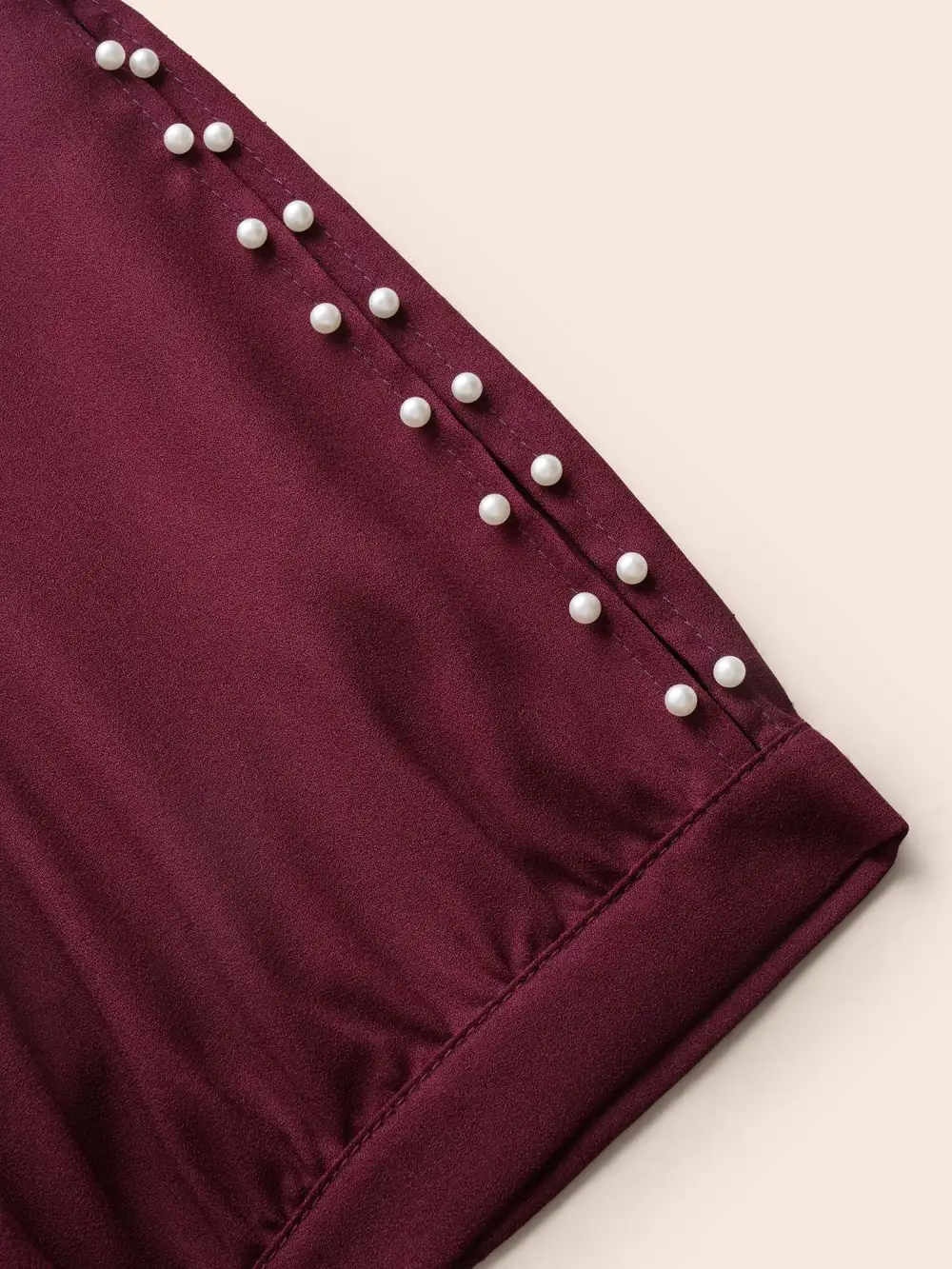 Round Neck Pearl Beaded Cut Out Blouse