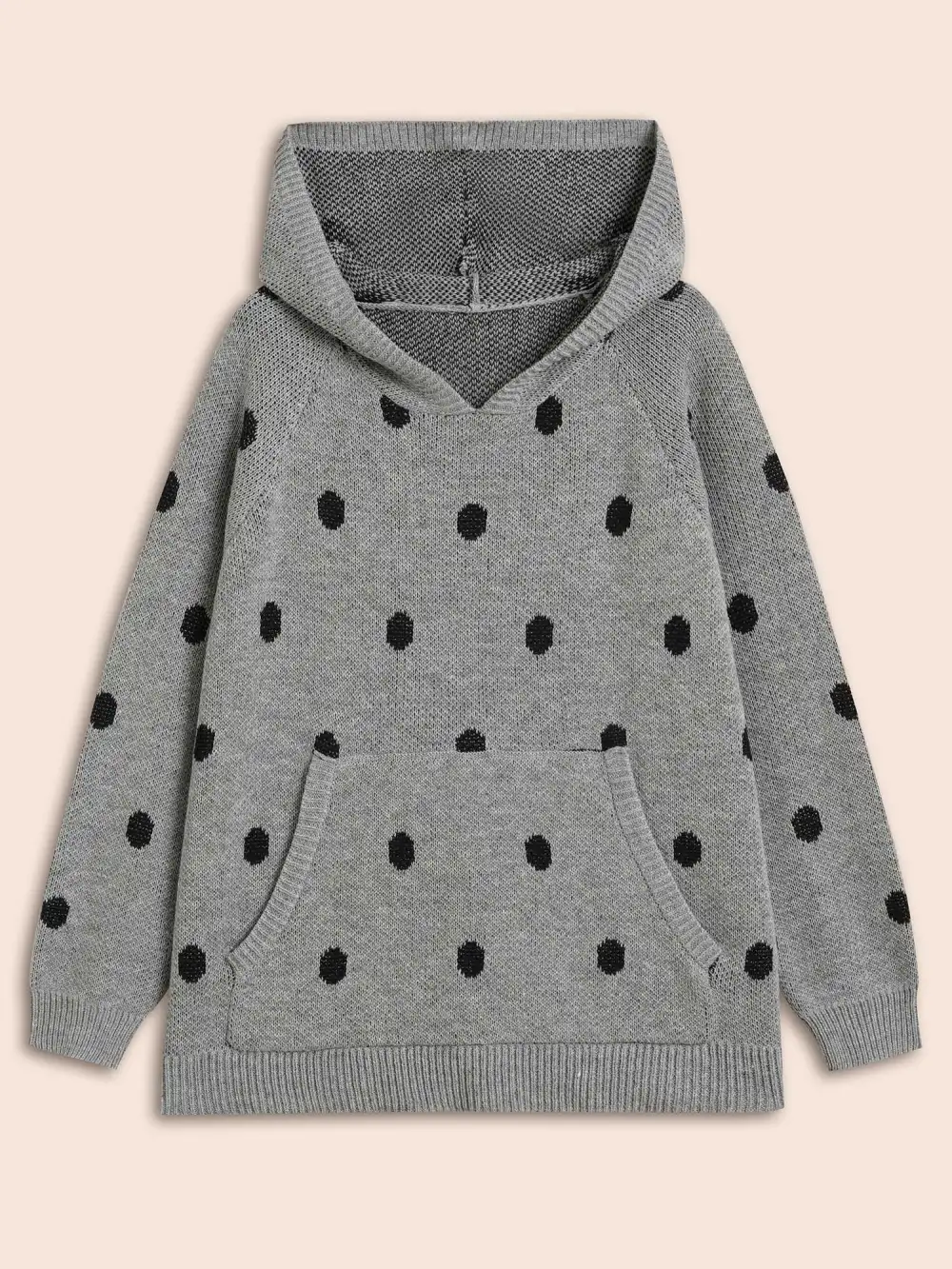 Polka Dot Hooded Patch Pocket Pullover