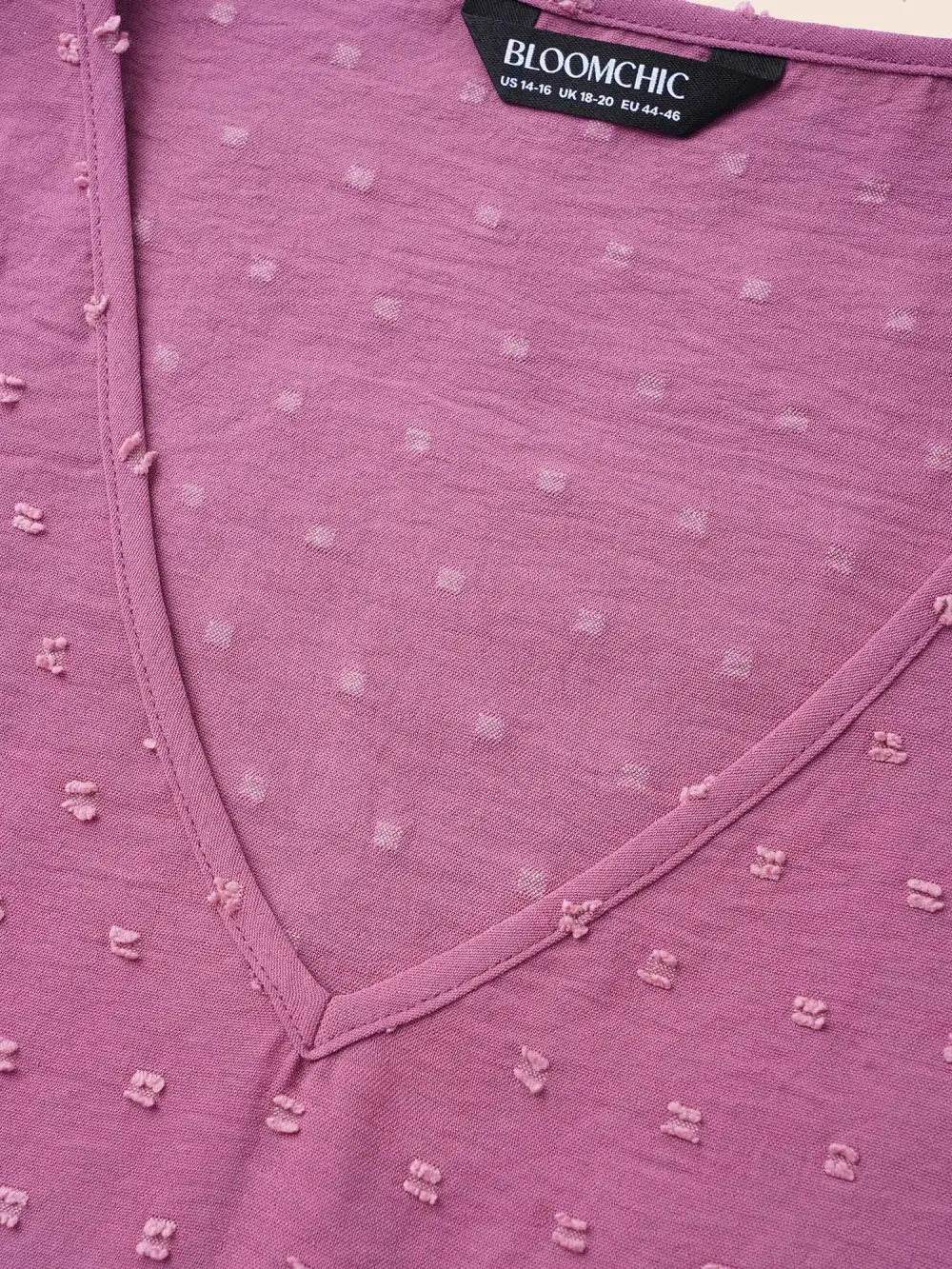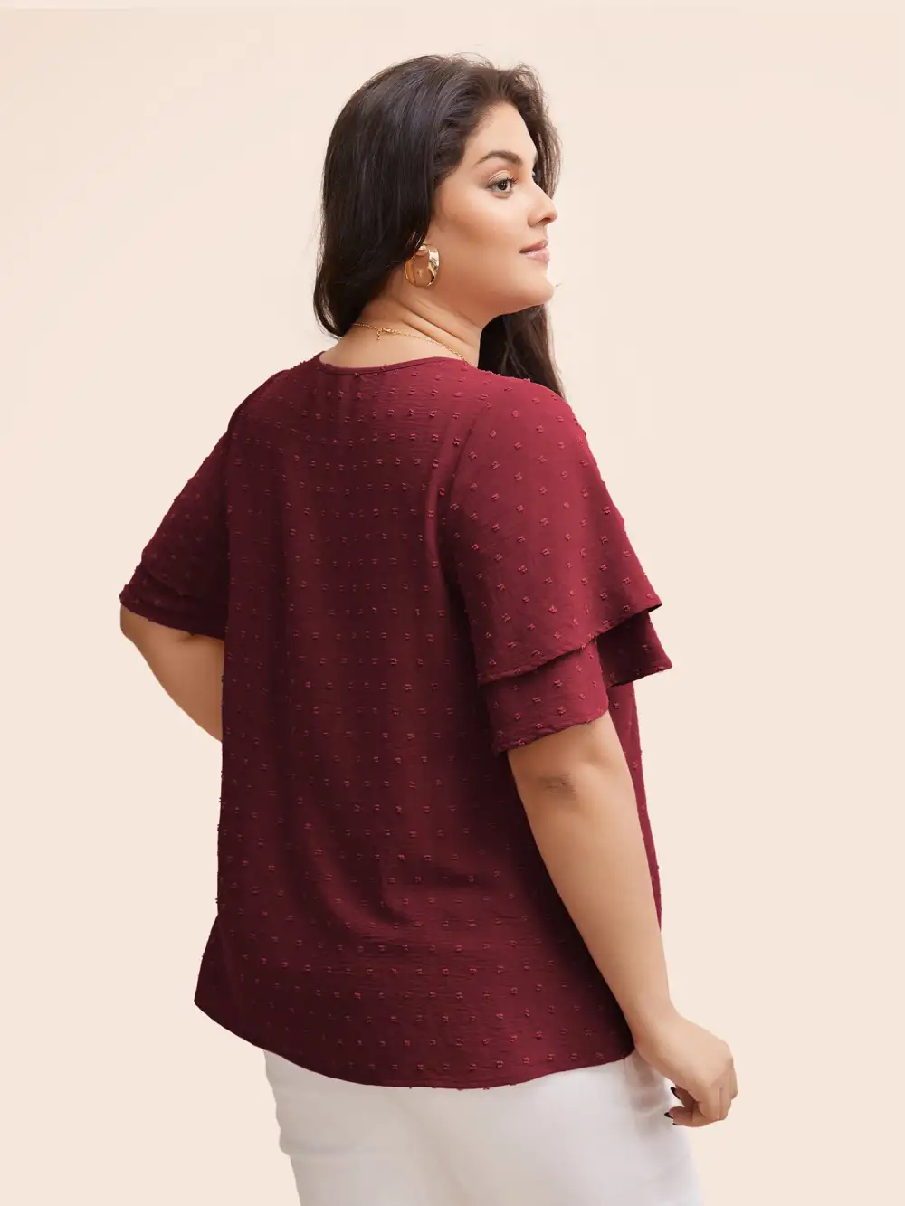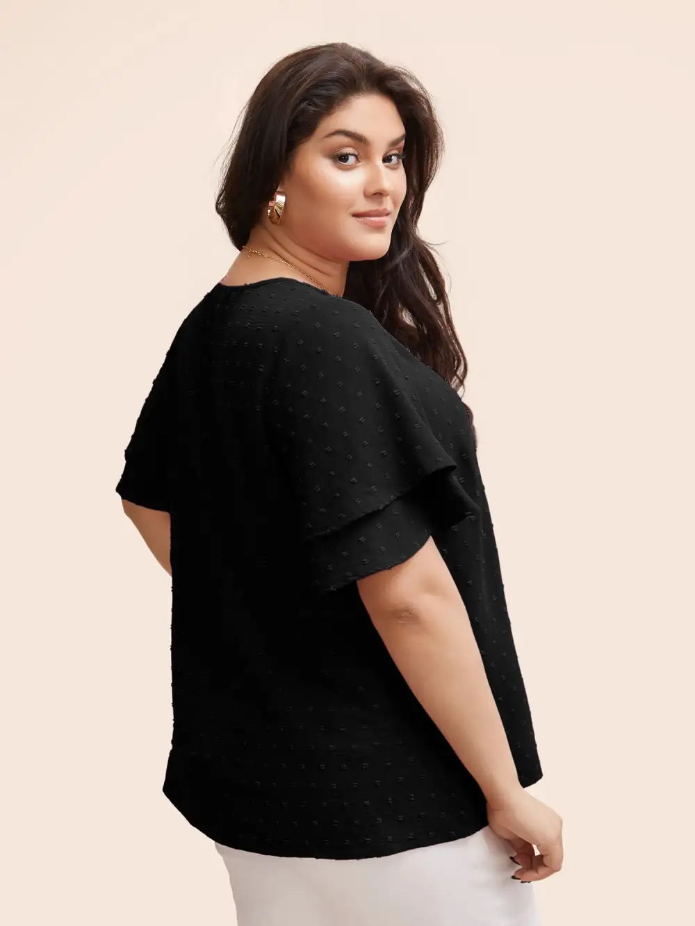 Plain Ruffle Tiered Sleeve V Neck Polka Dot Blouse