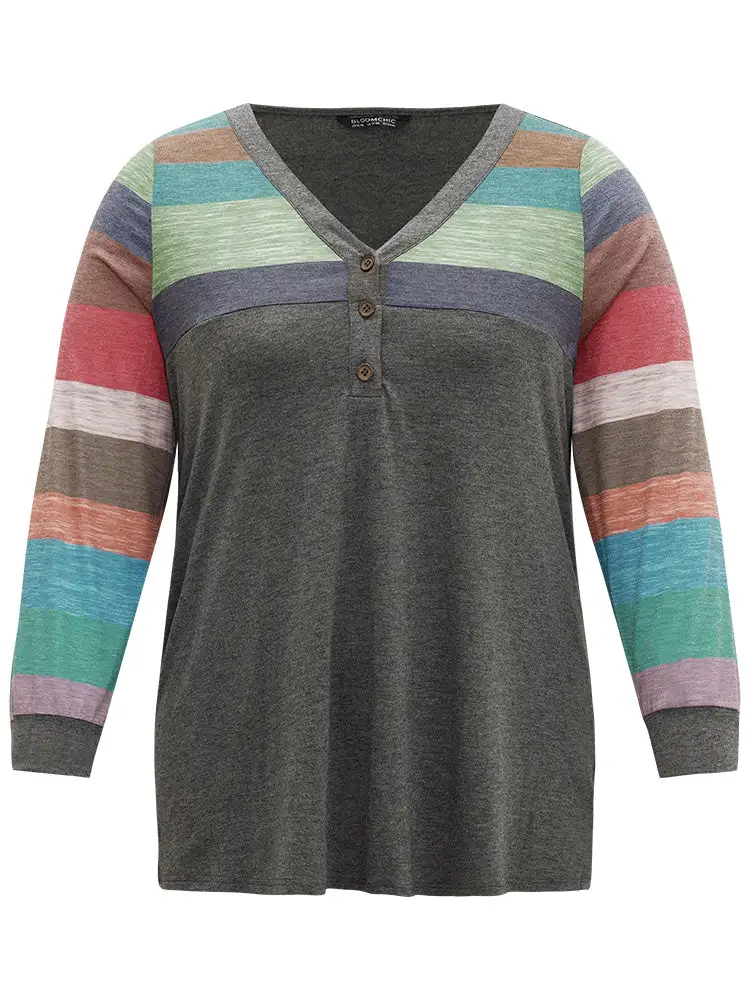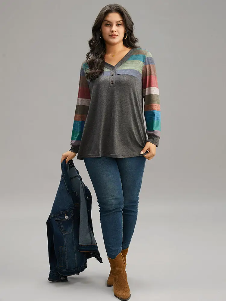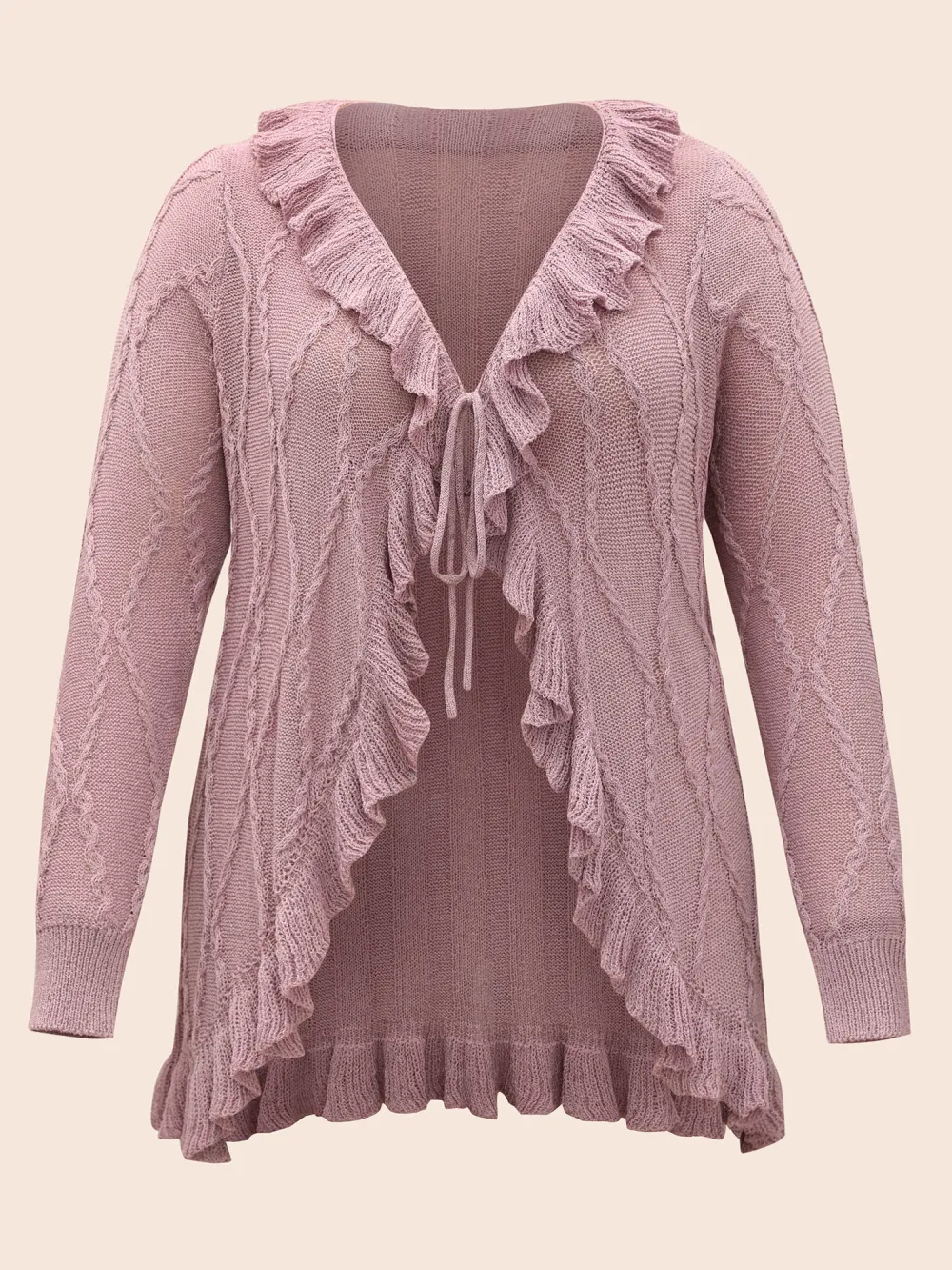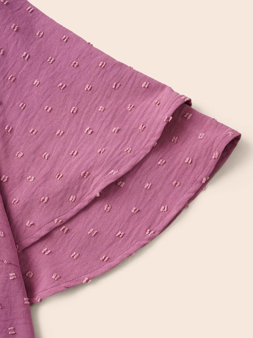 Plain Ruffle Tiered Sleeve V Neck Polka Dot Blouse