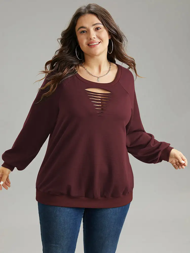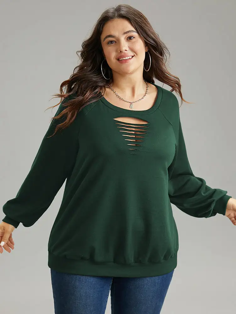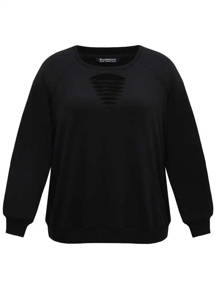 Solid Rib Knit Cut Out Raglan Sleeve Sweatshirt