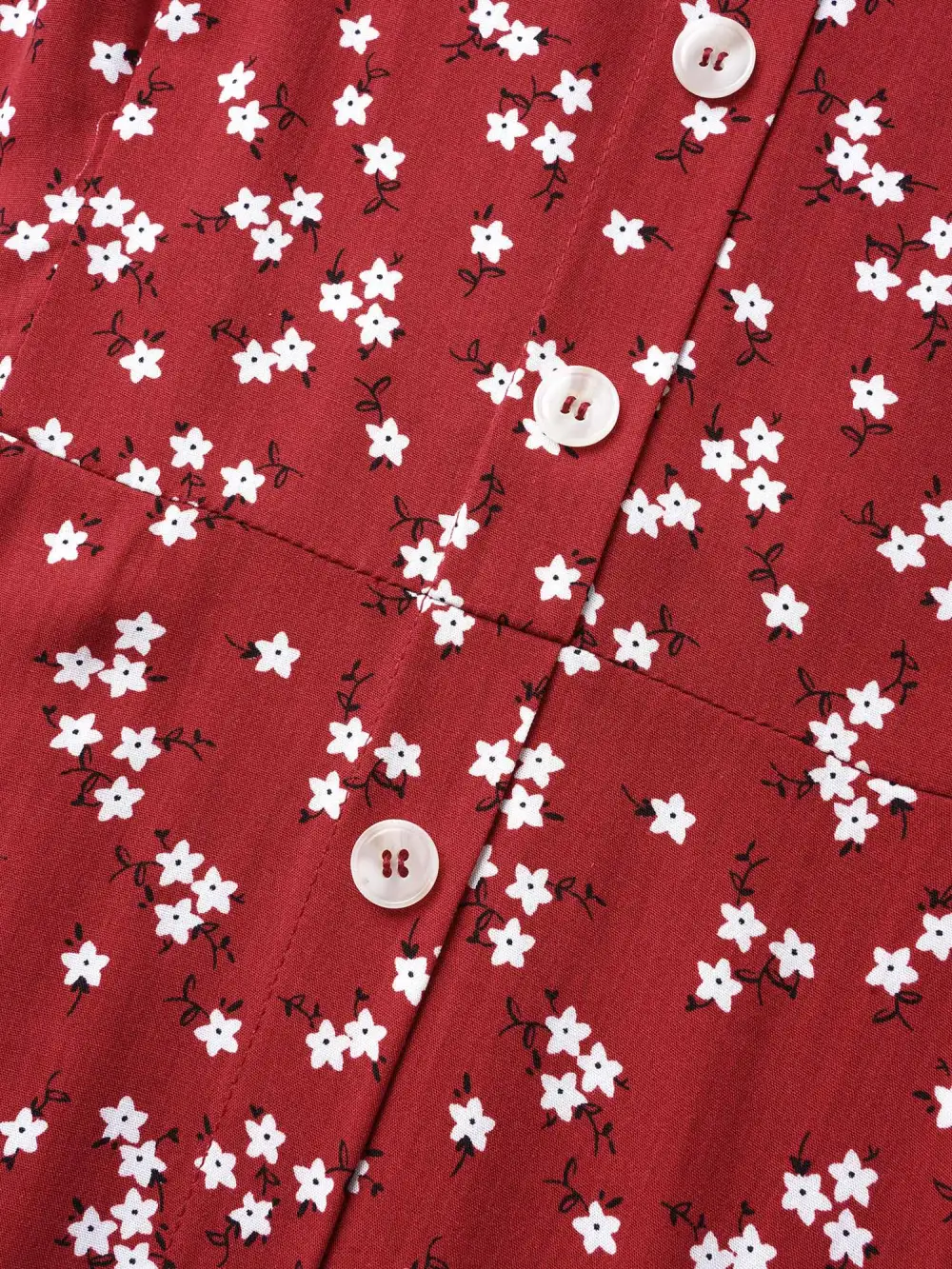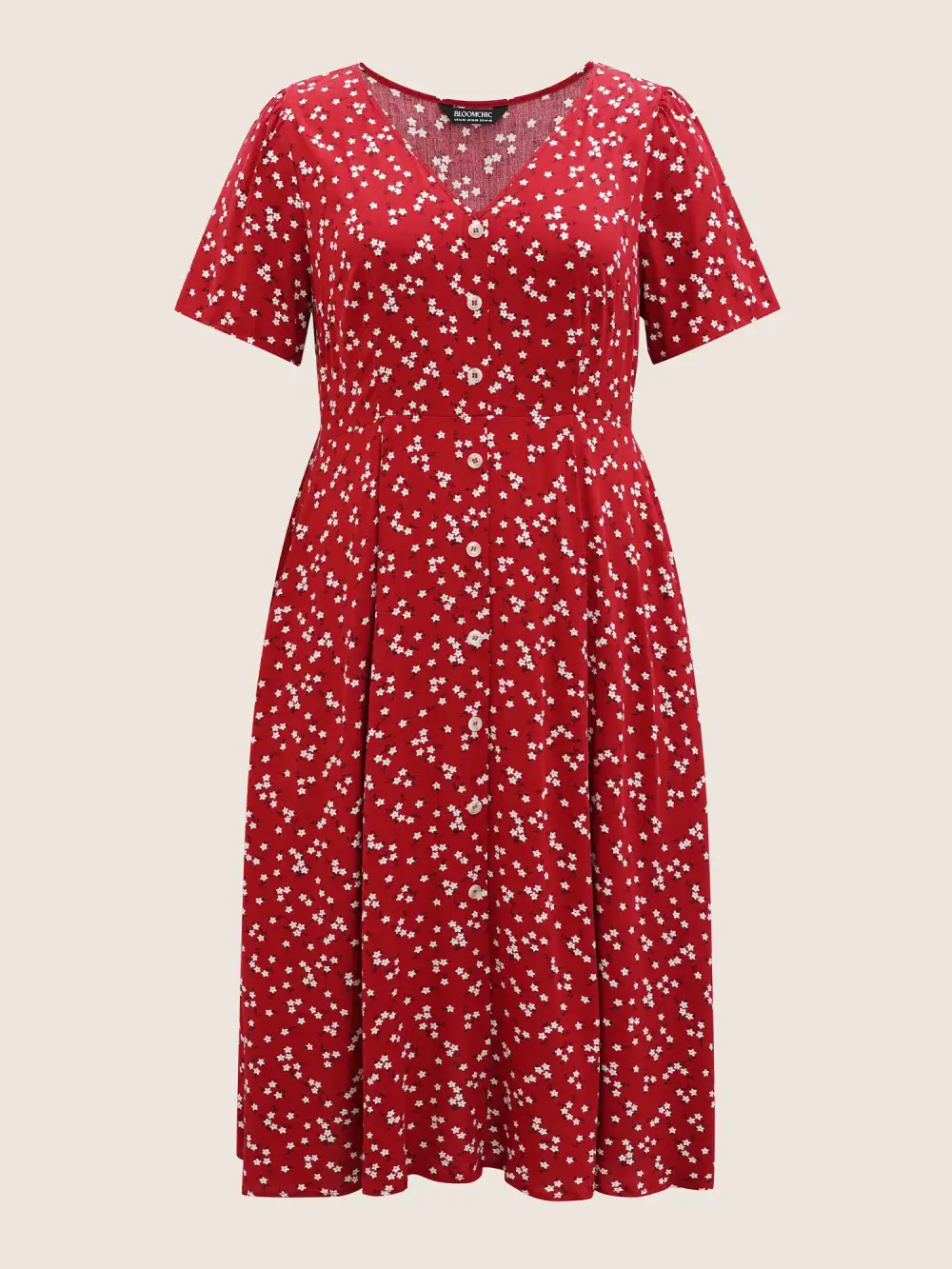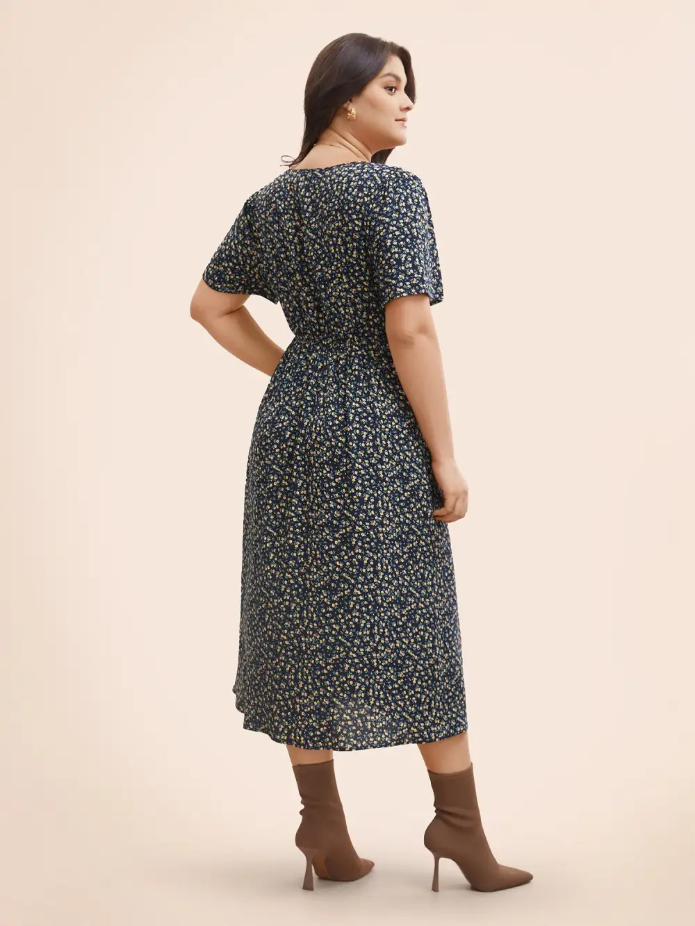 Ditsy Floral Button Detail Elastic Waist Midi Dress