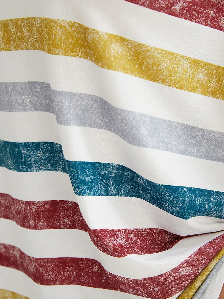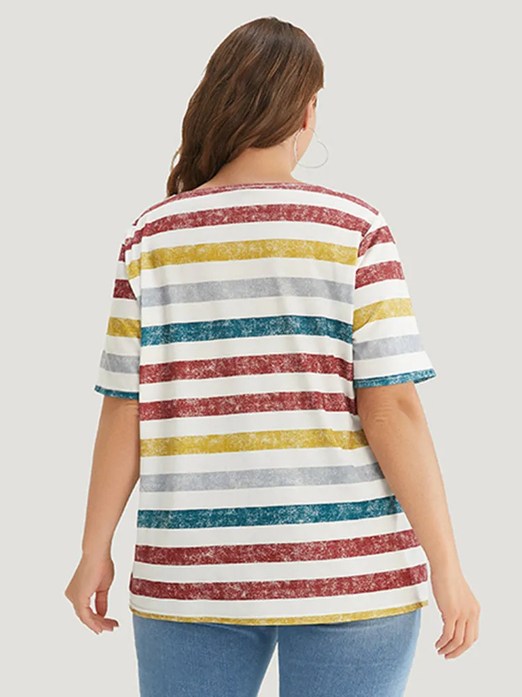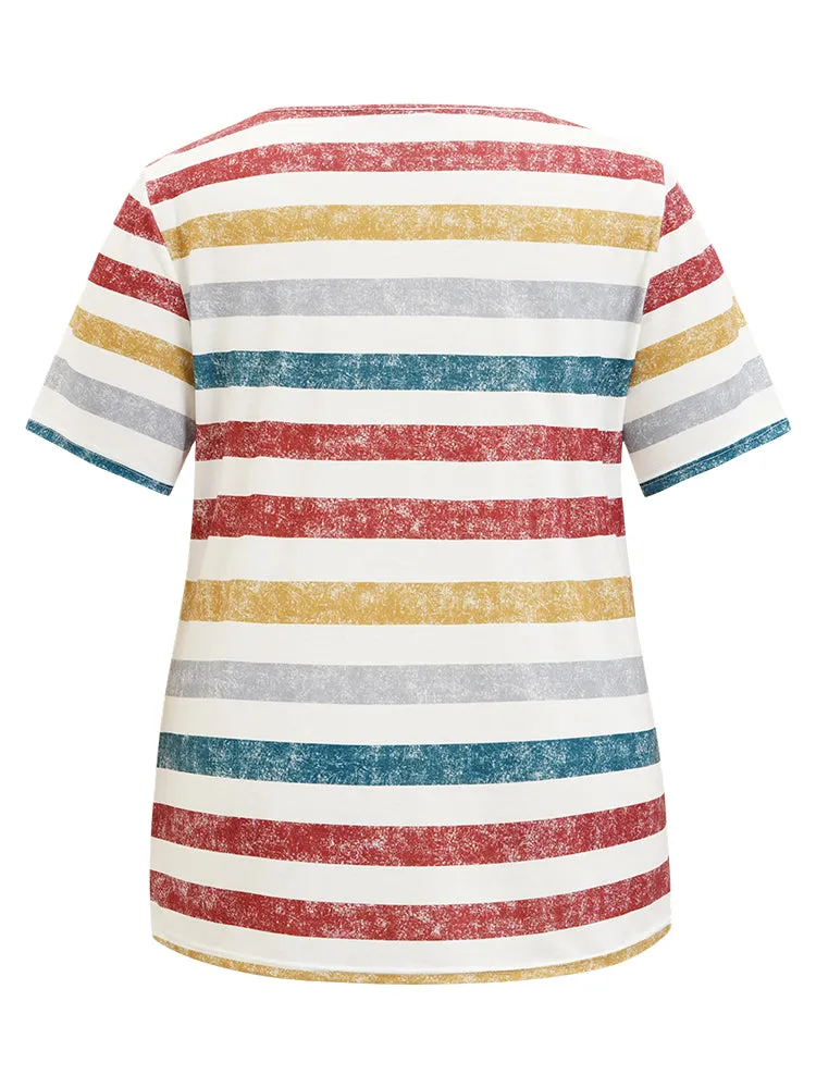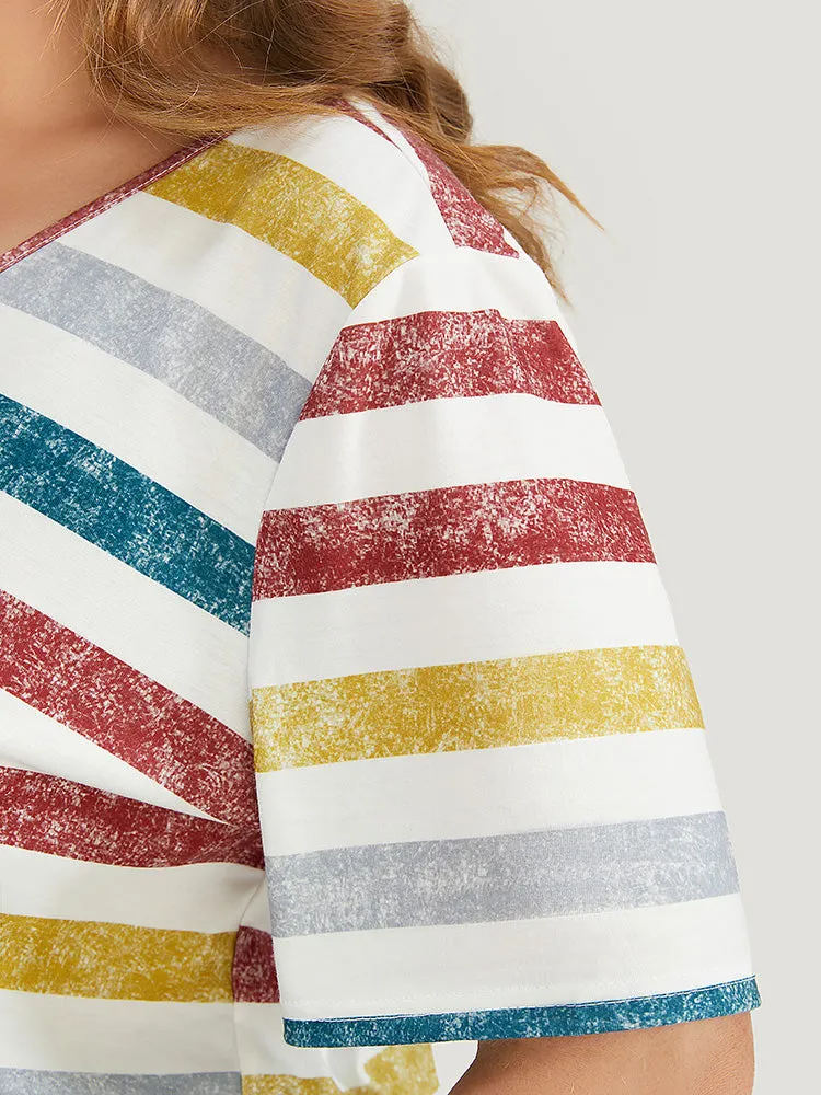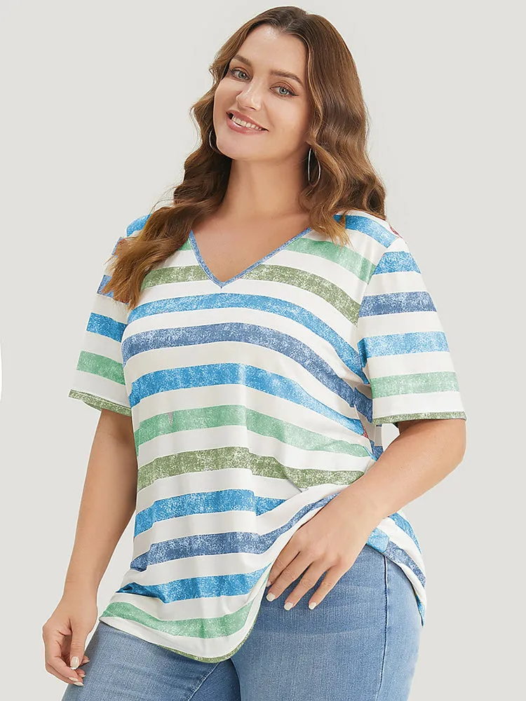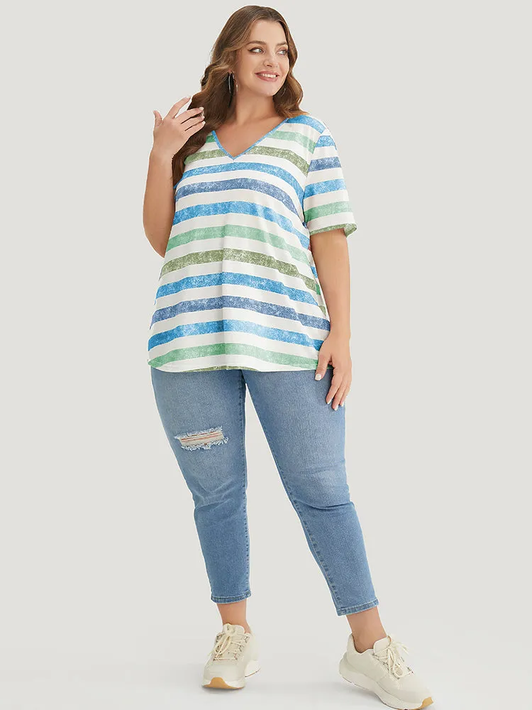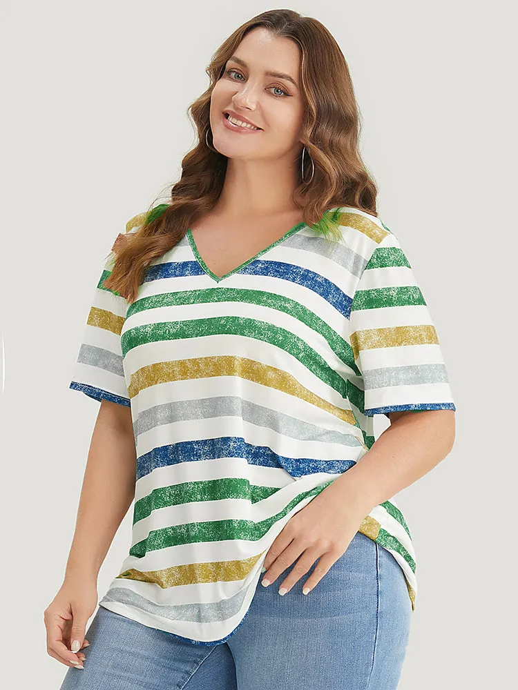 Striped Contrast V Neck T-shirt