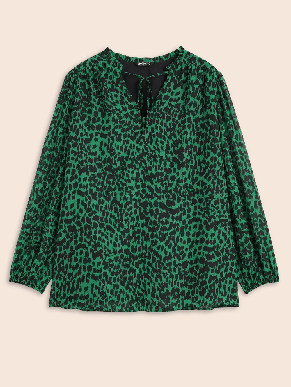 Leopard Print Tie Knot Lantern Sleeve Blouse