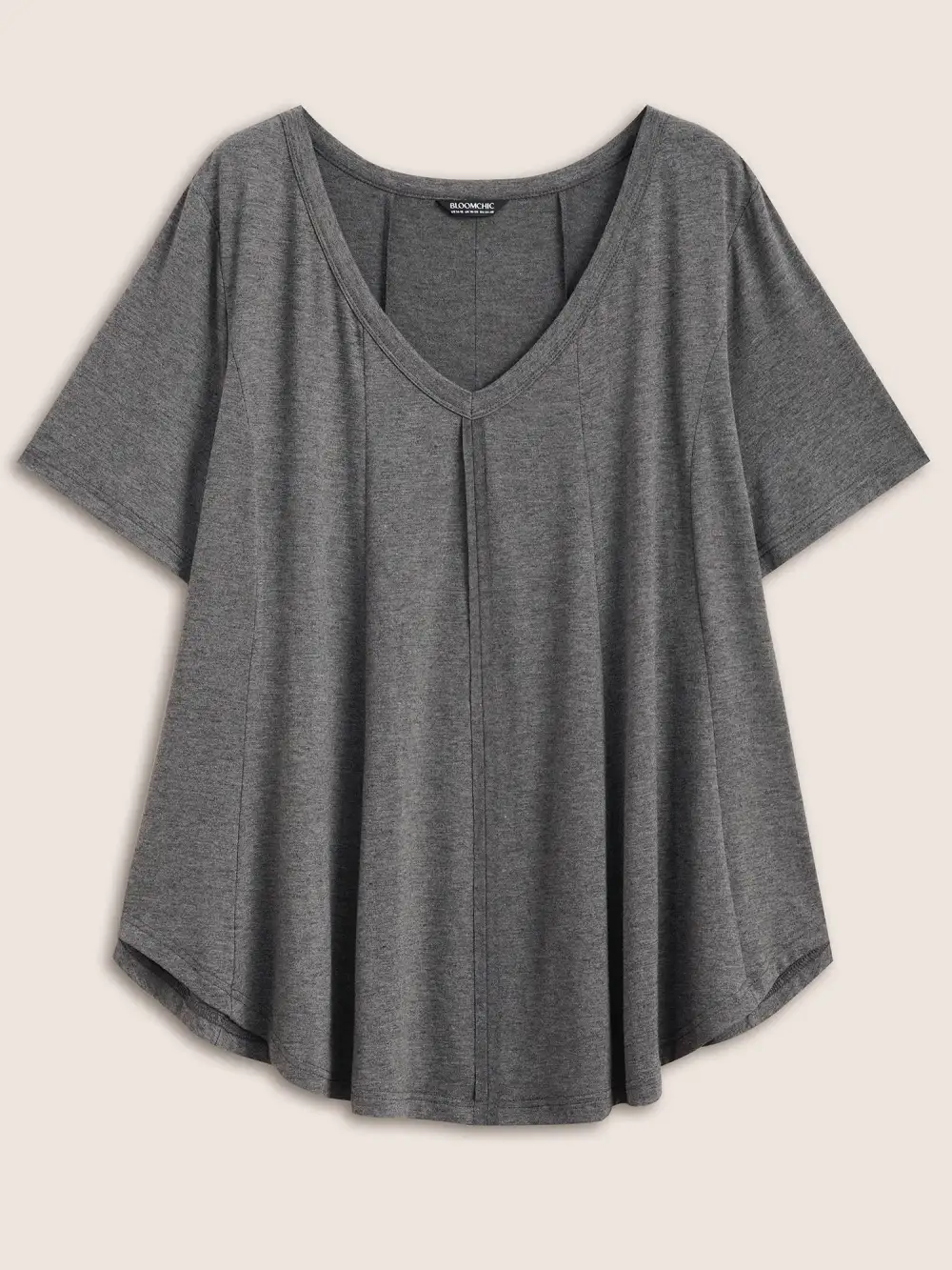 Solid Heather V Neck Curved Hem T-Shirt