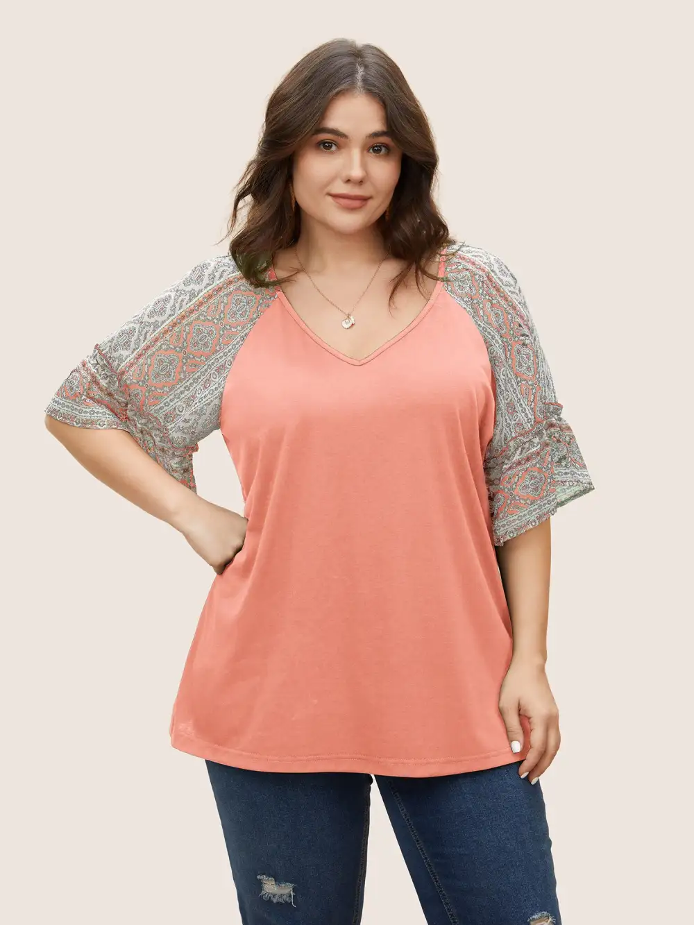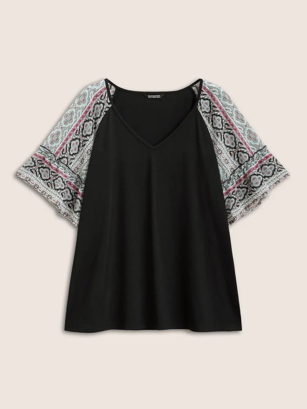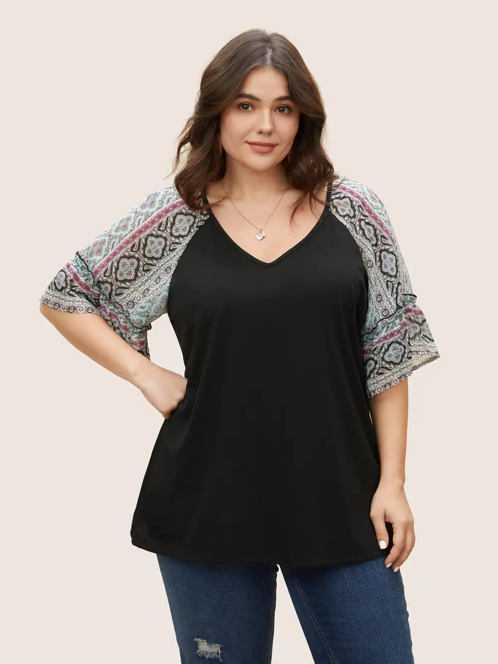 Boho Print Patchwork Raglan Sleeve T-Shirt
