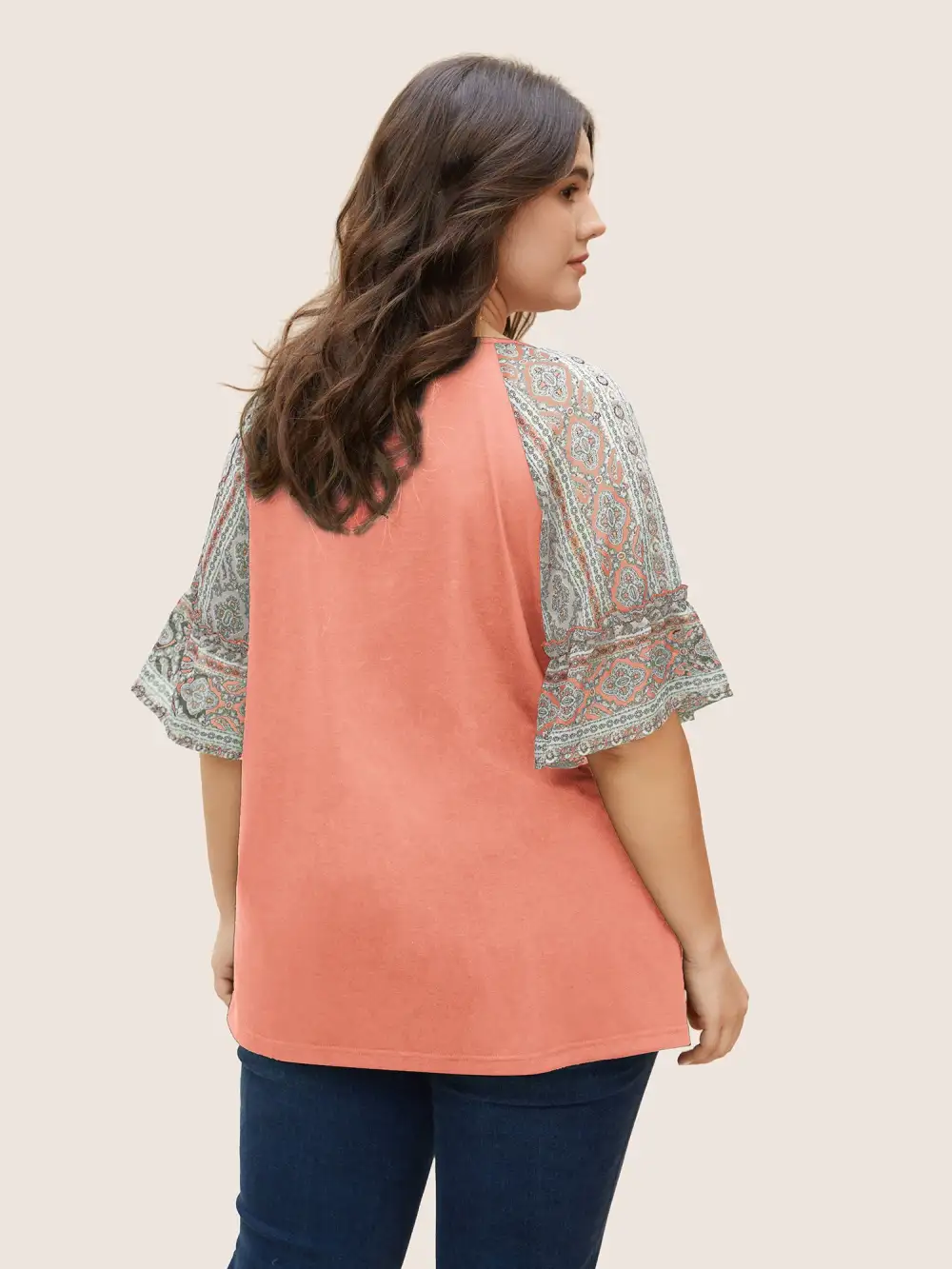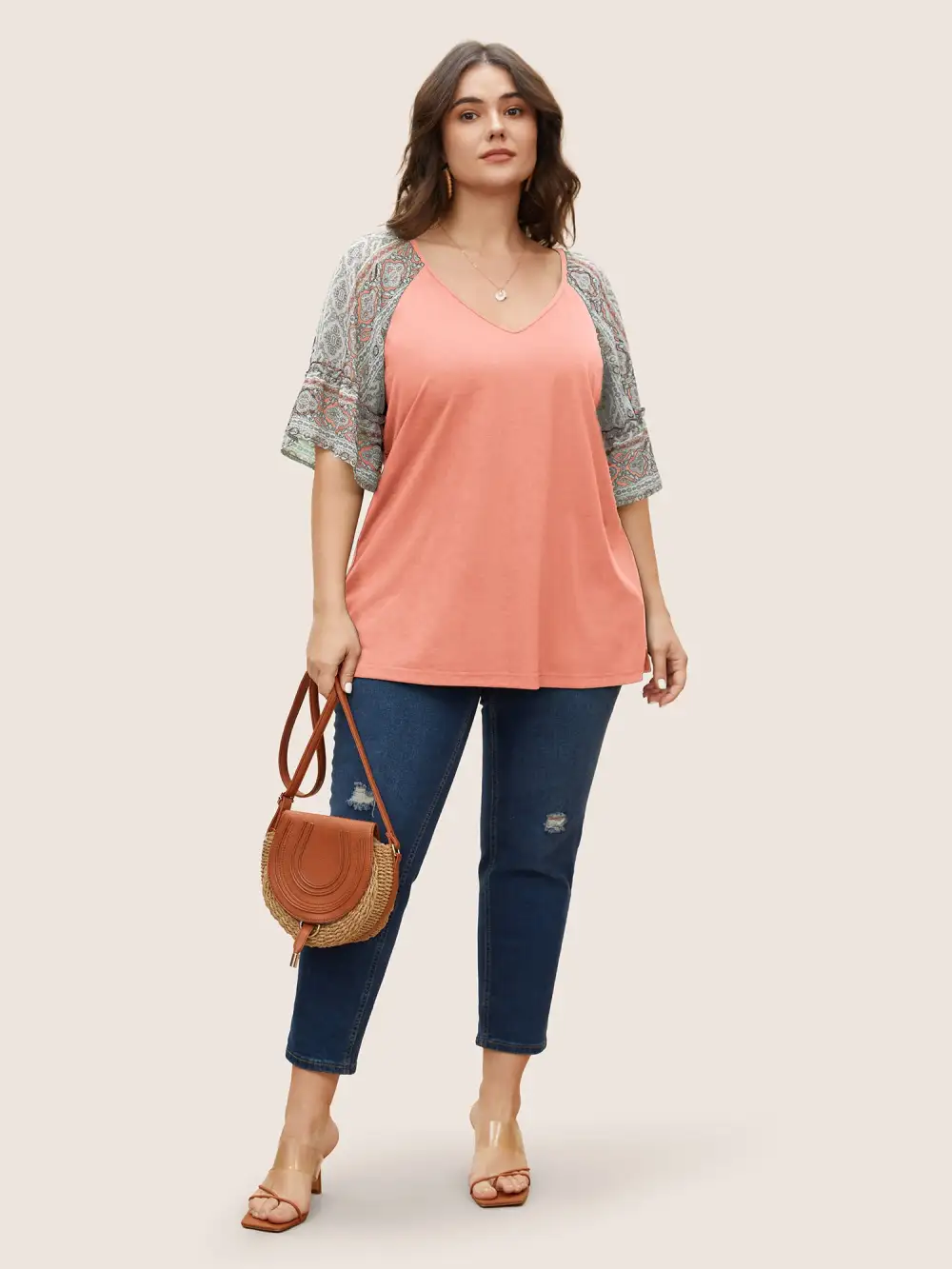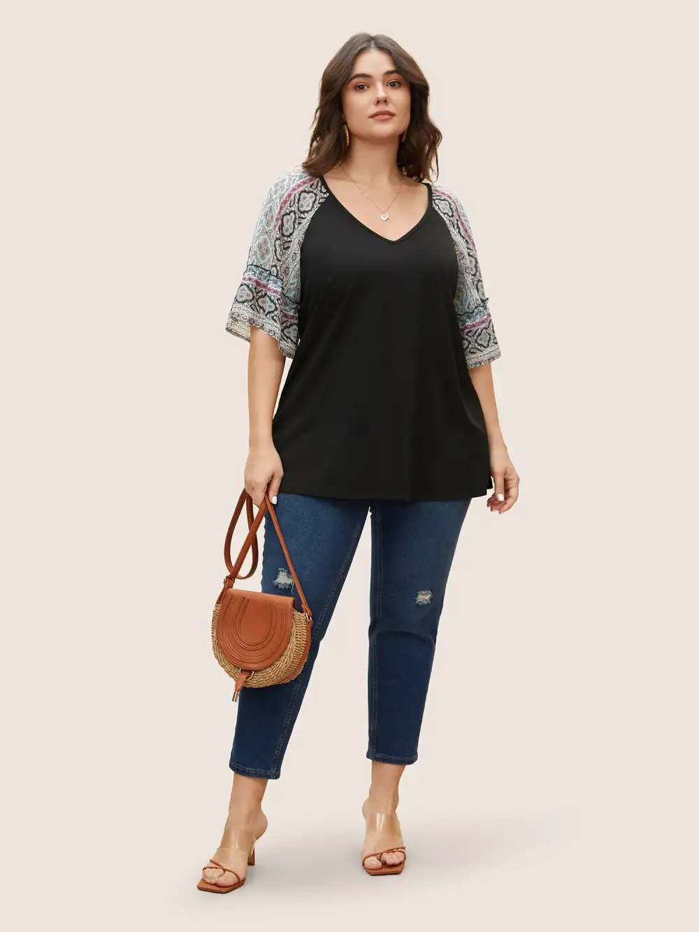 Boho Print Patchwork Raglan Sleeve T-Shirt