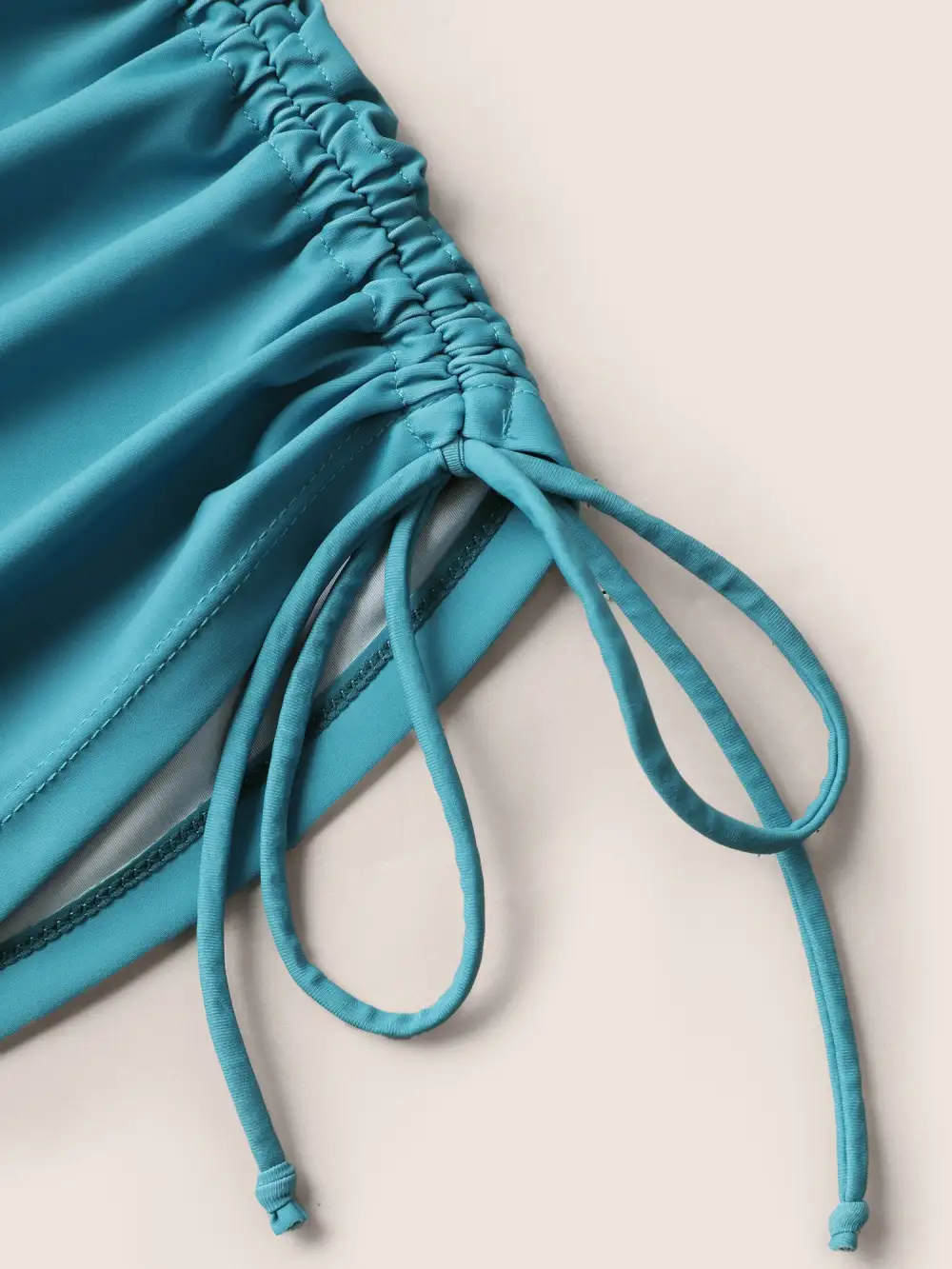 Crew Neck Contrast Tropical Print Drawstring Swim Top