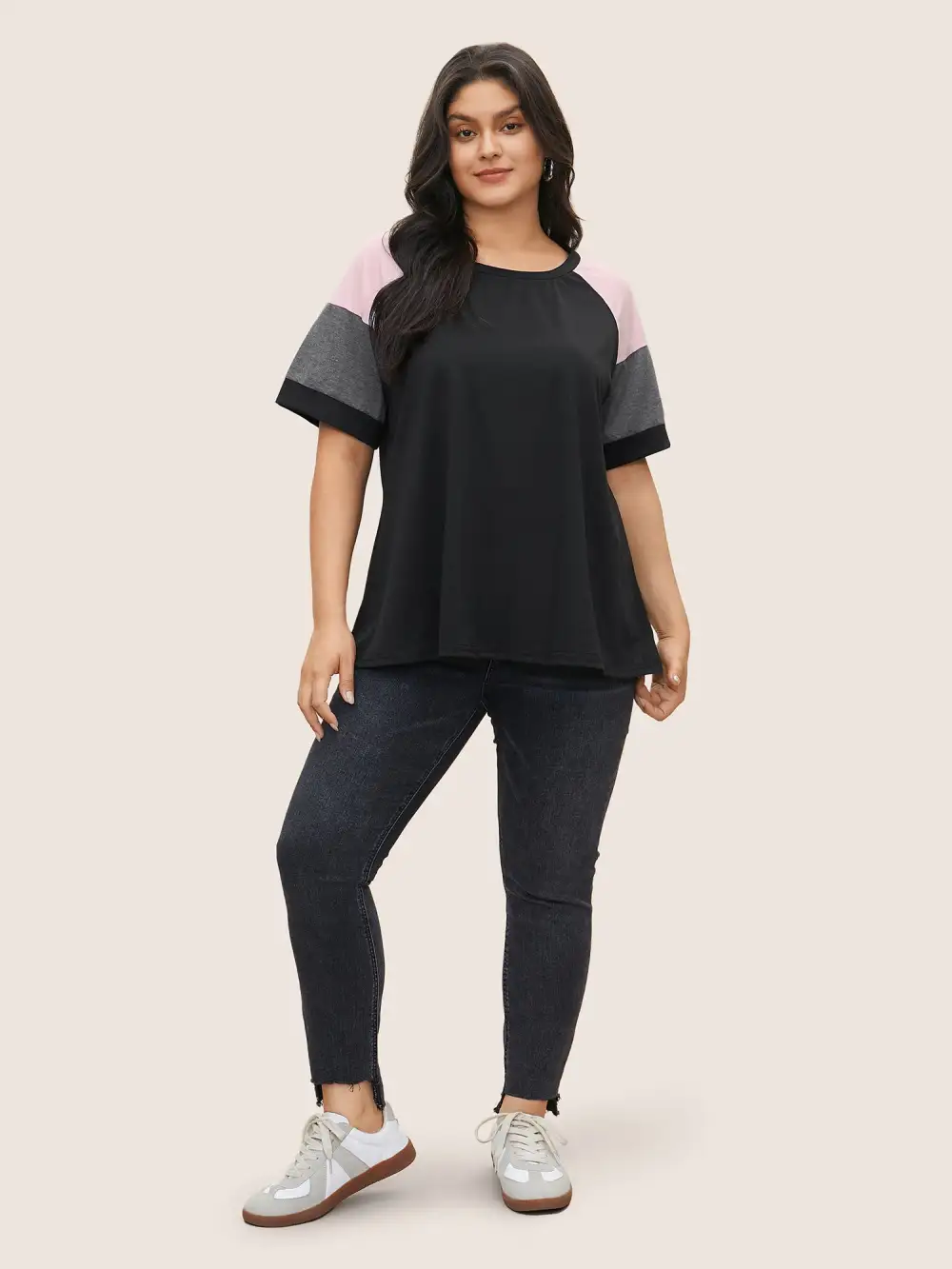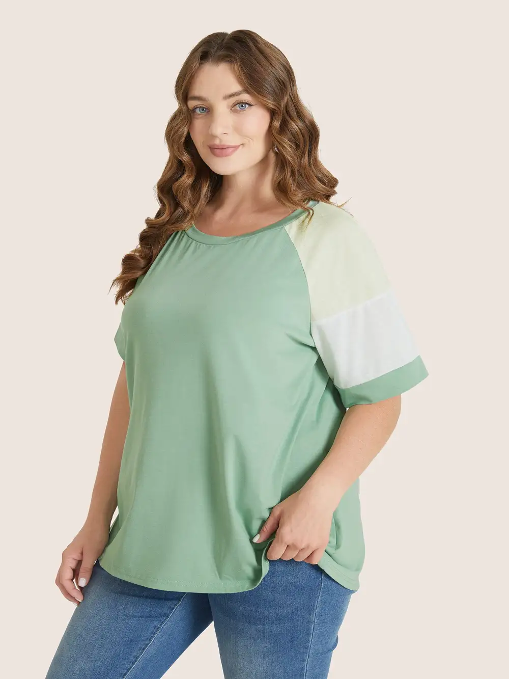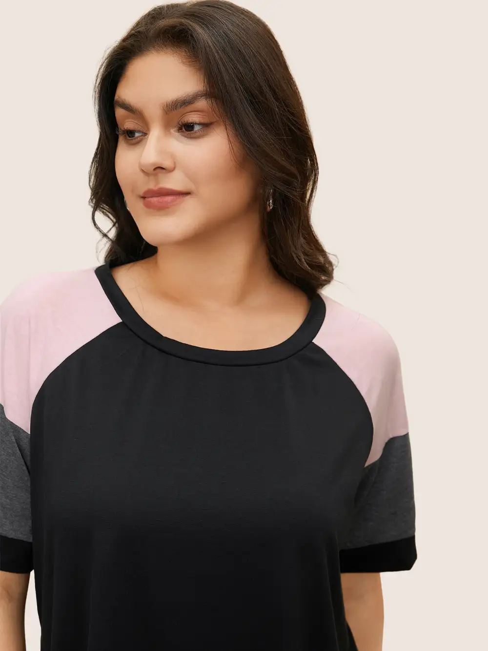 Colorblock Contrast Crew Neck Raglan Sleeve T-Shirt