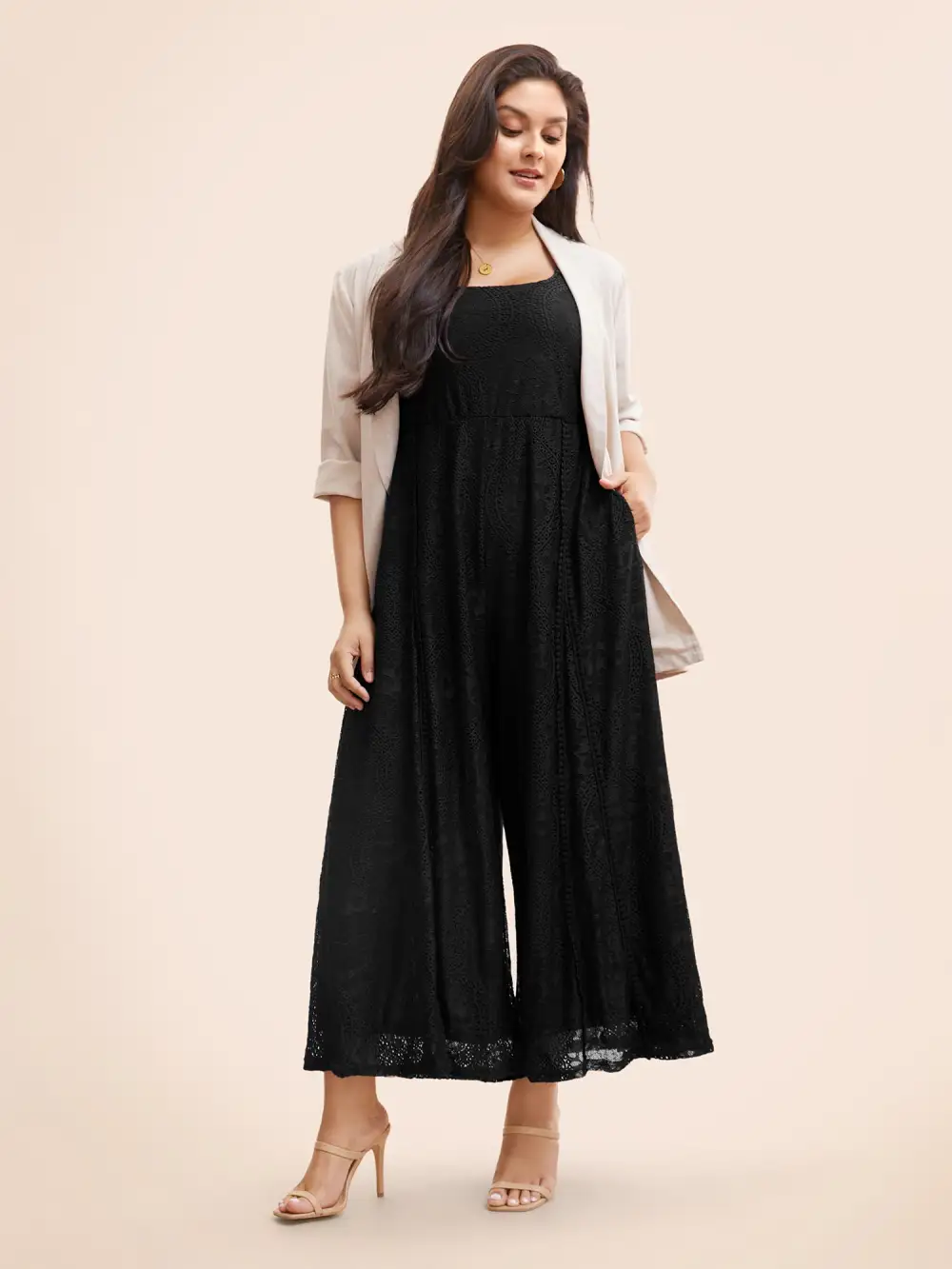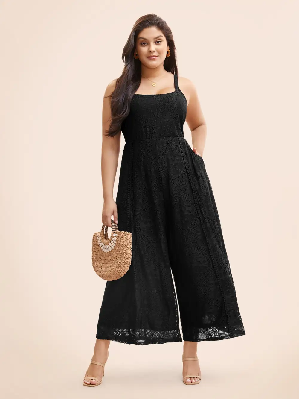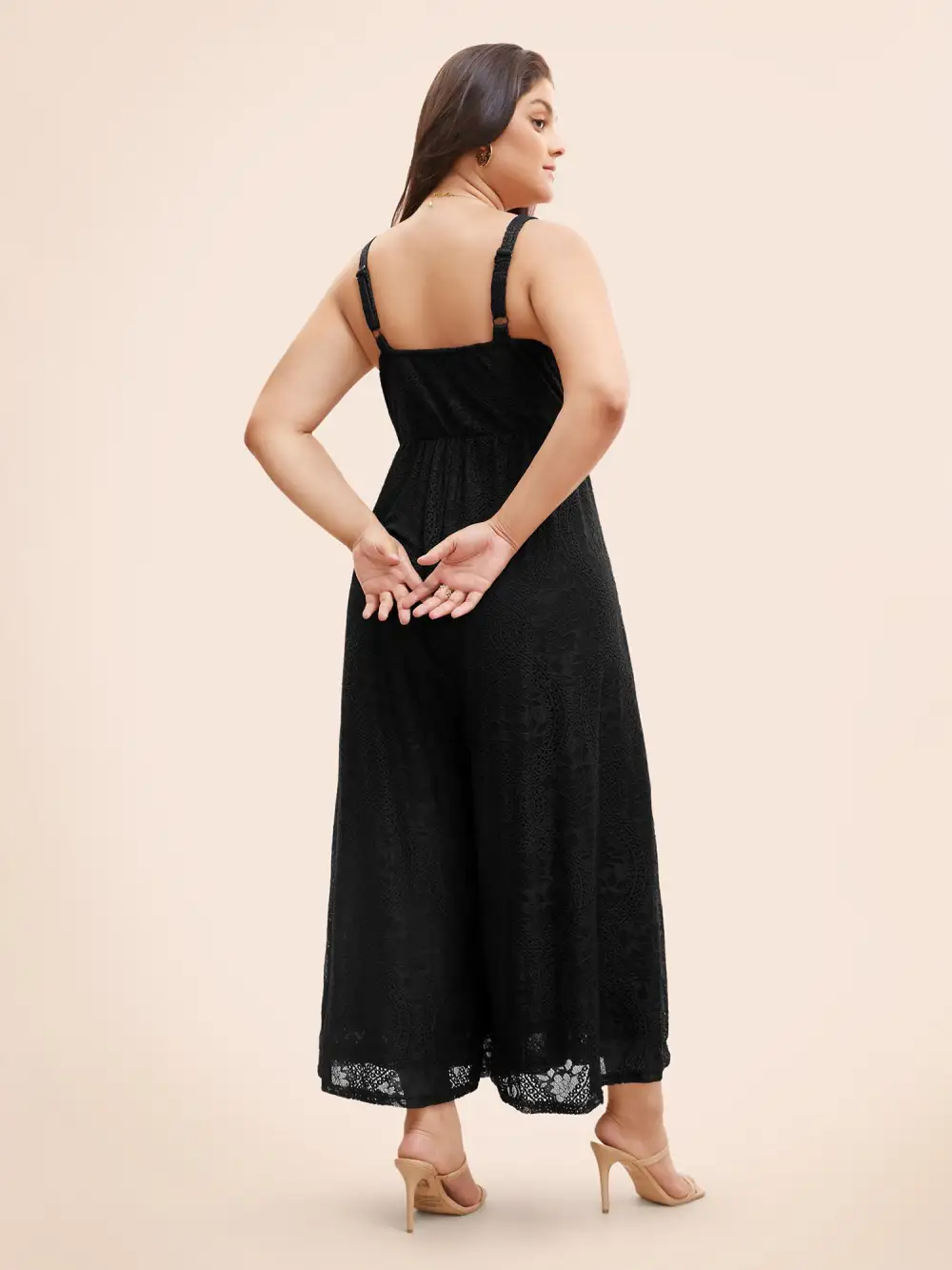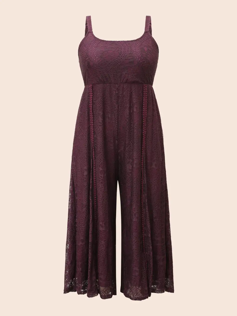 Square Neck Lace Panel Gathered Jumpsuit
