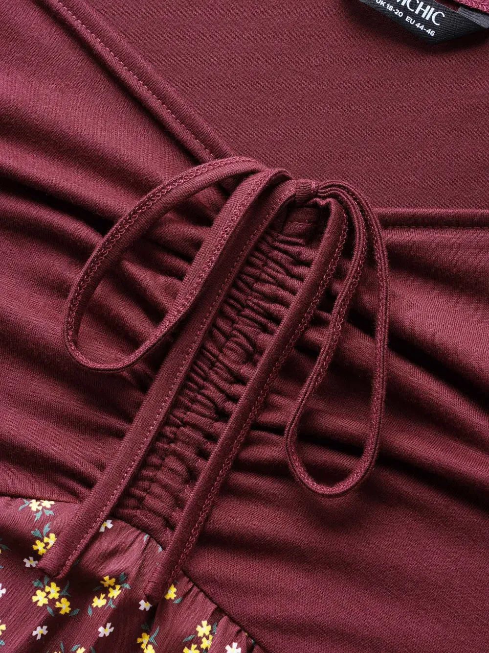 Ditsy Floral Patchwork Ruffle Layered Hem Dress