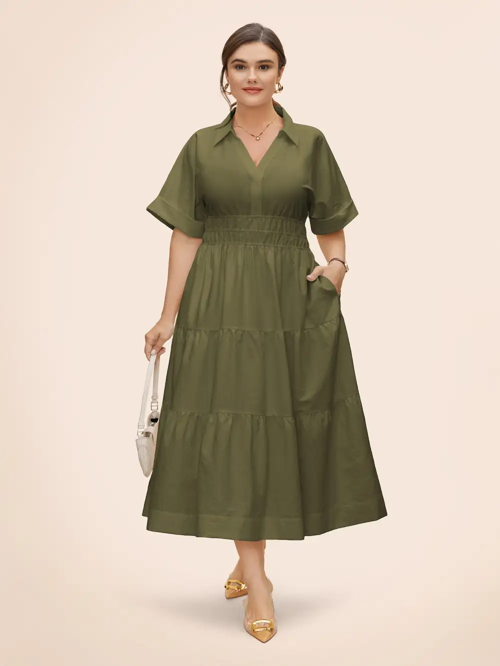 Midfield Tiered Midi Shirt Dress