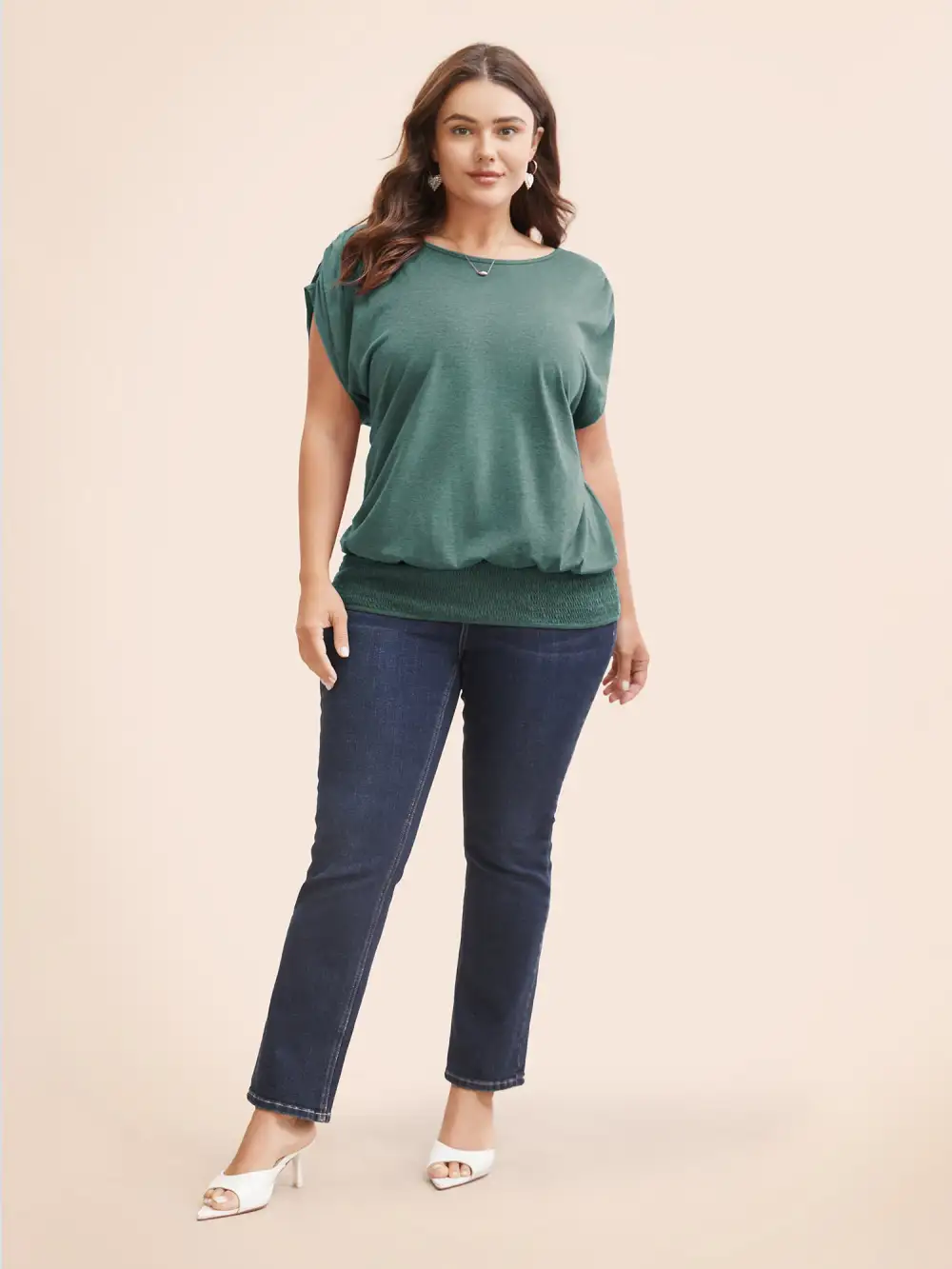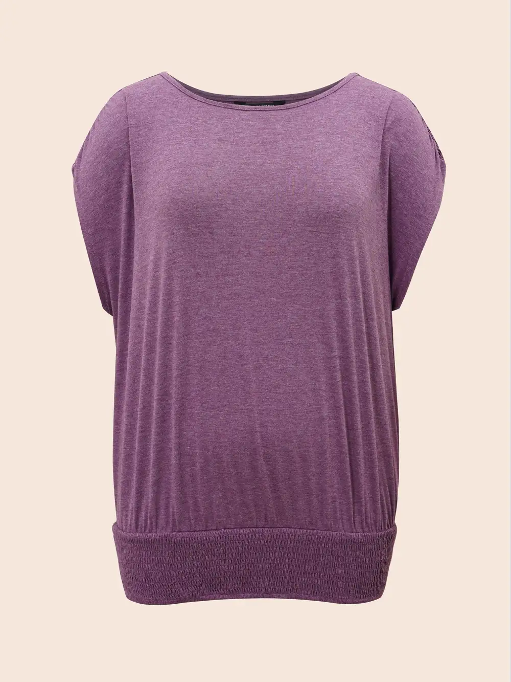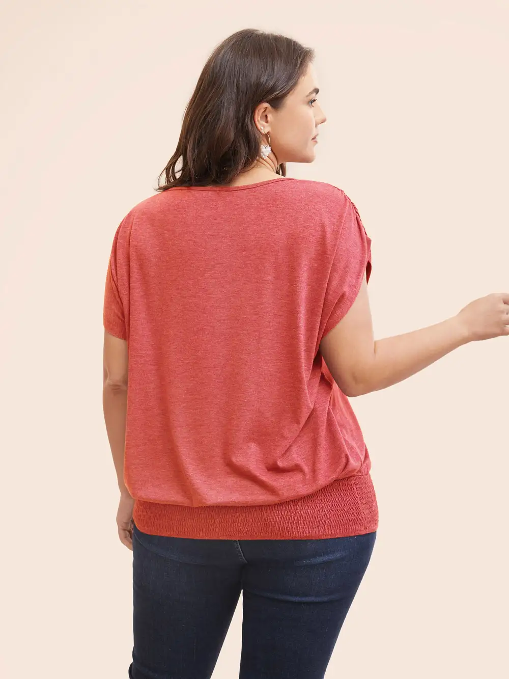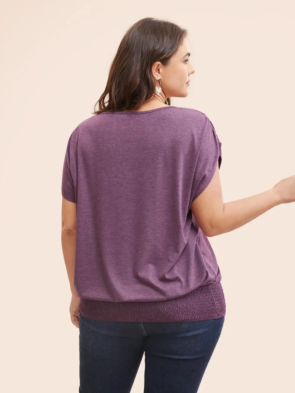 Solid Ruched Batwing Sleeve Shirred Hem T-Shirt