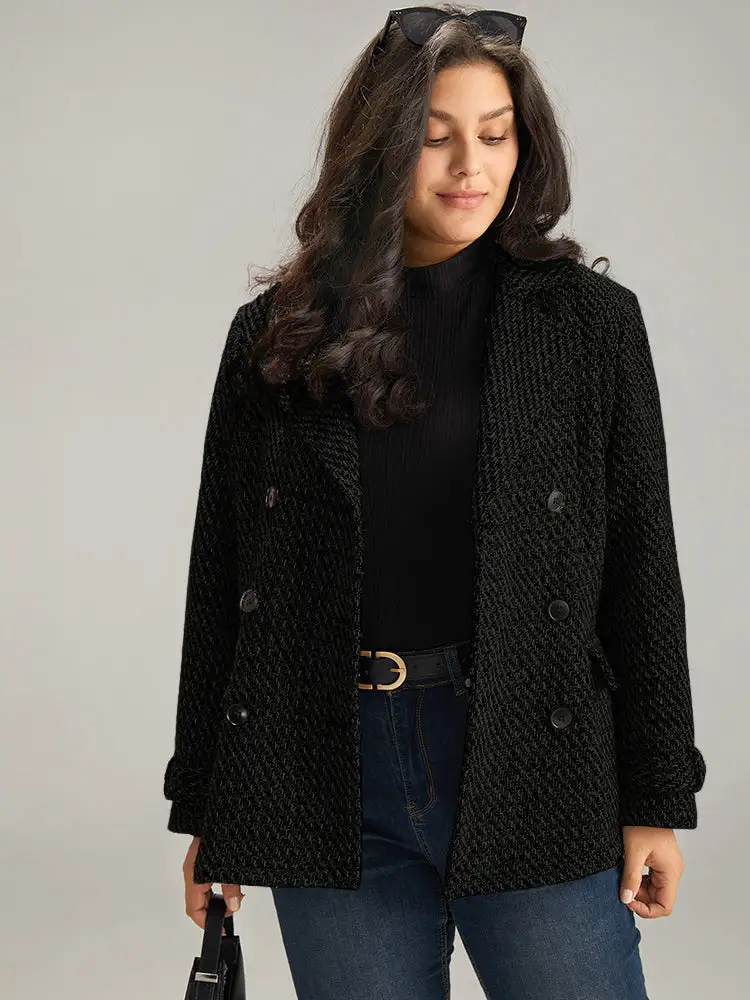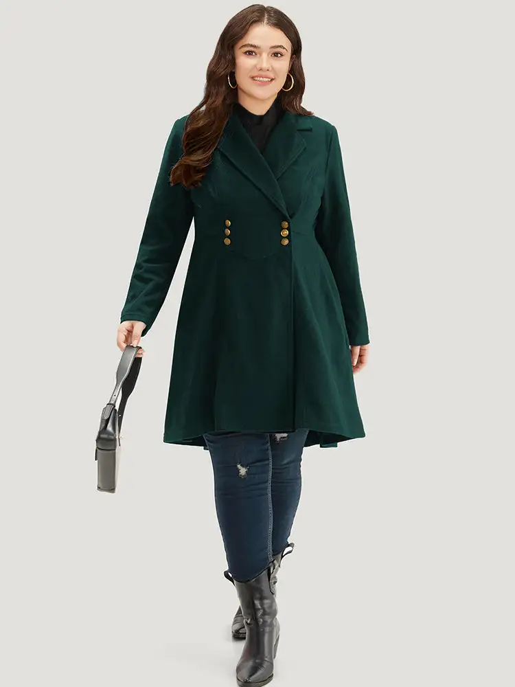 Solid Lapel Collar Double Breasted Coat
