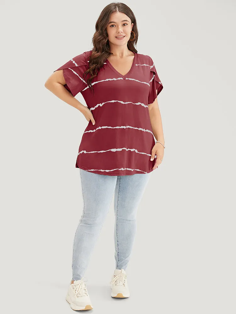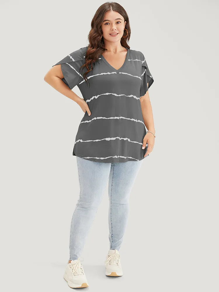 Striped Contrast Petal Sleeve T-shirt