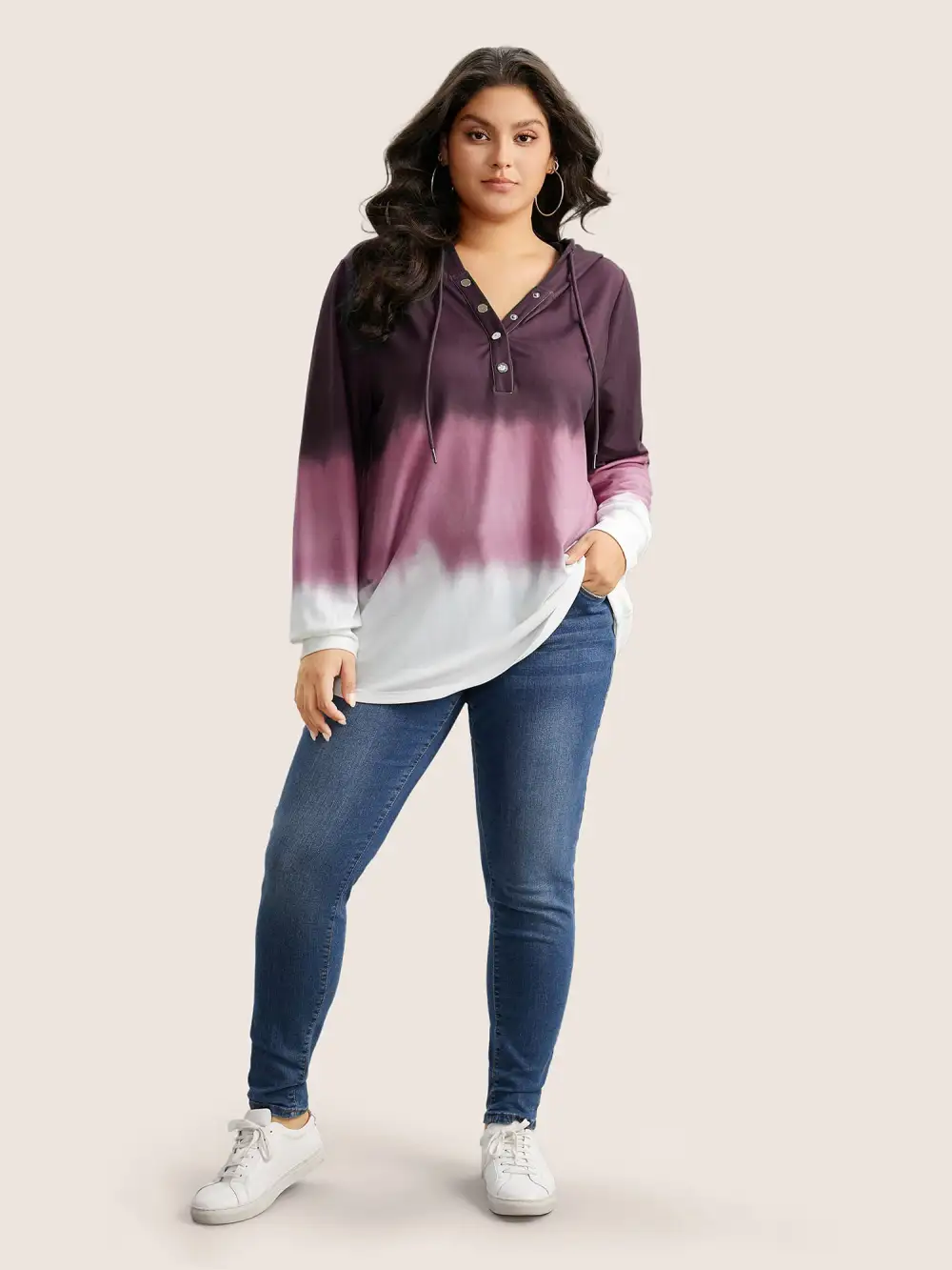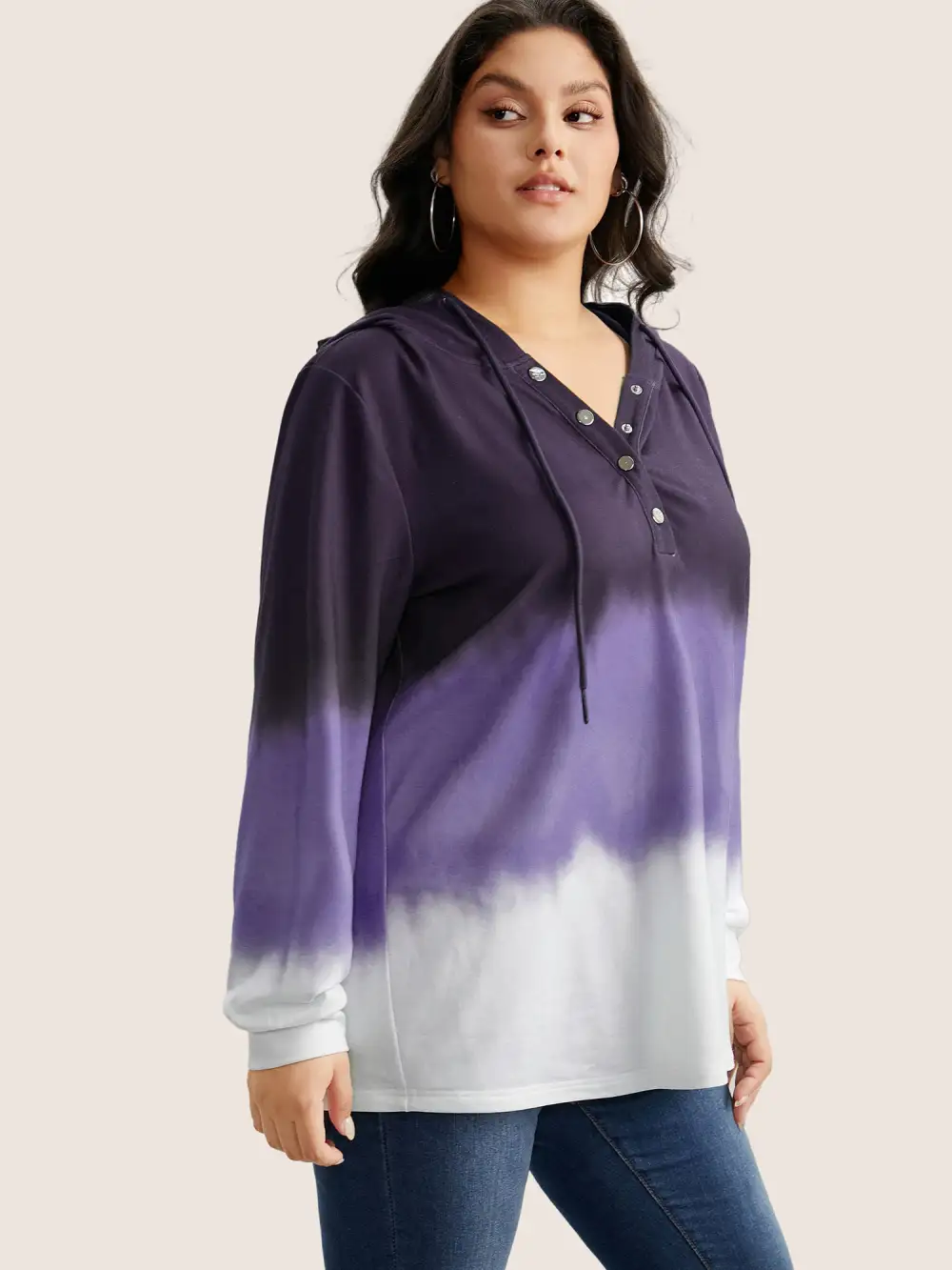 Tie Dye Button Up Hooded Drawstring Sweatshirt