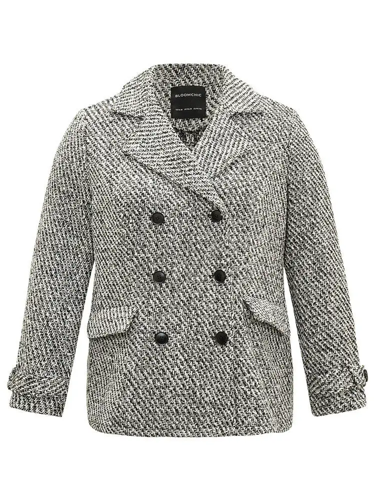 Tweed Lapel Collar Button Up Pocket Coat