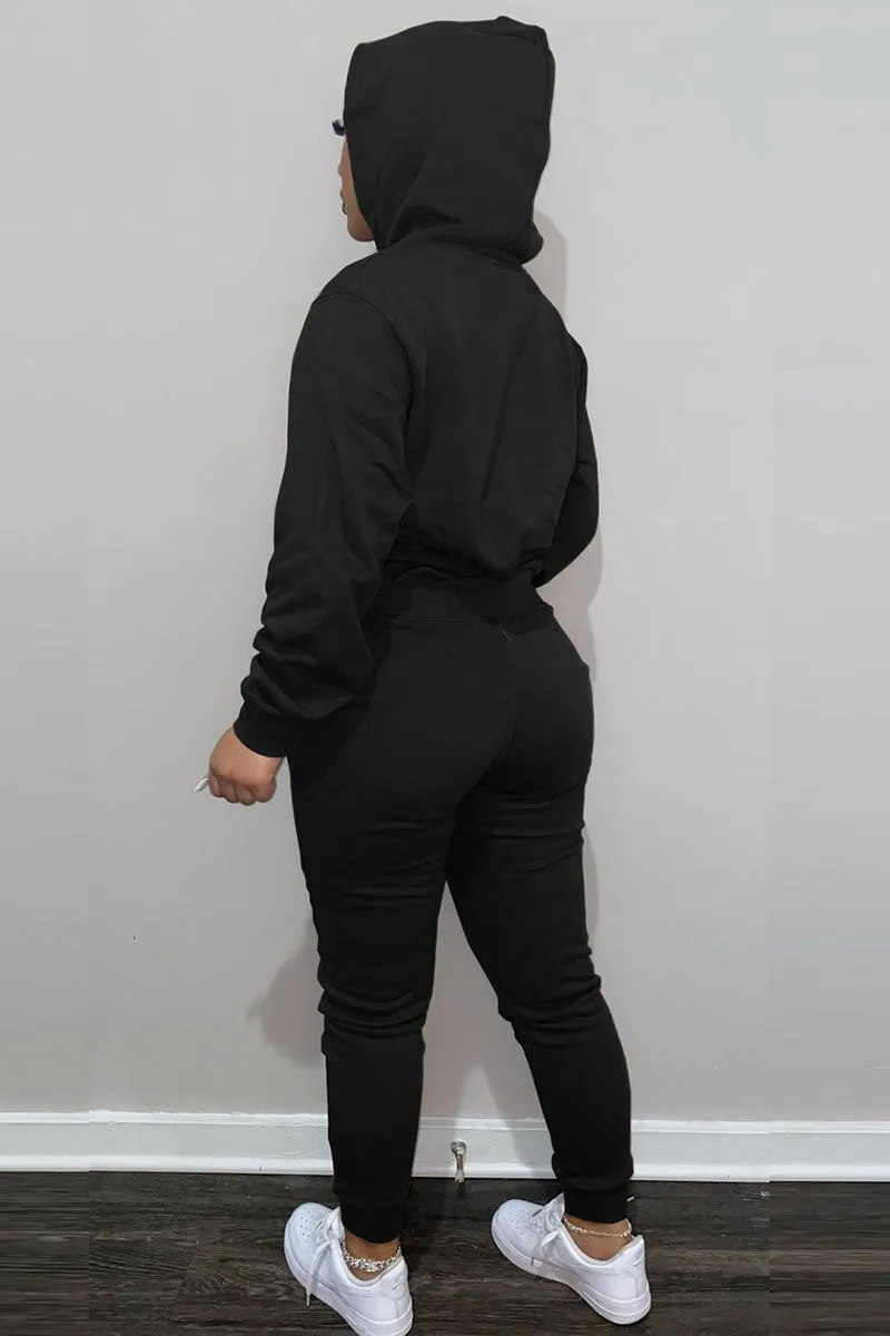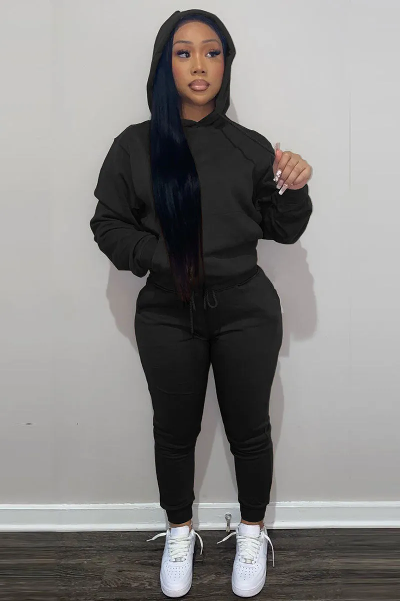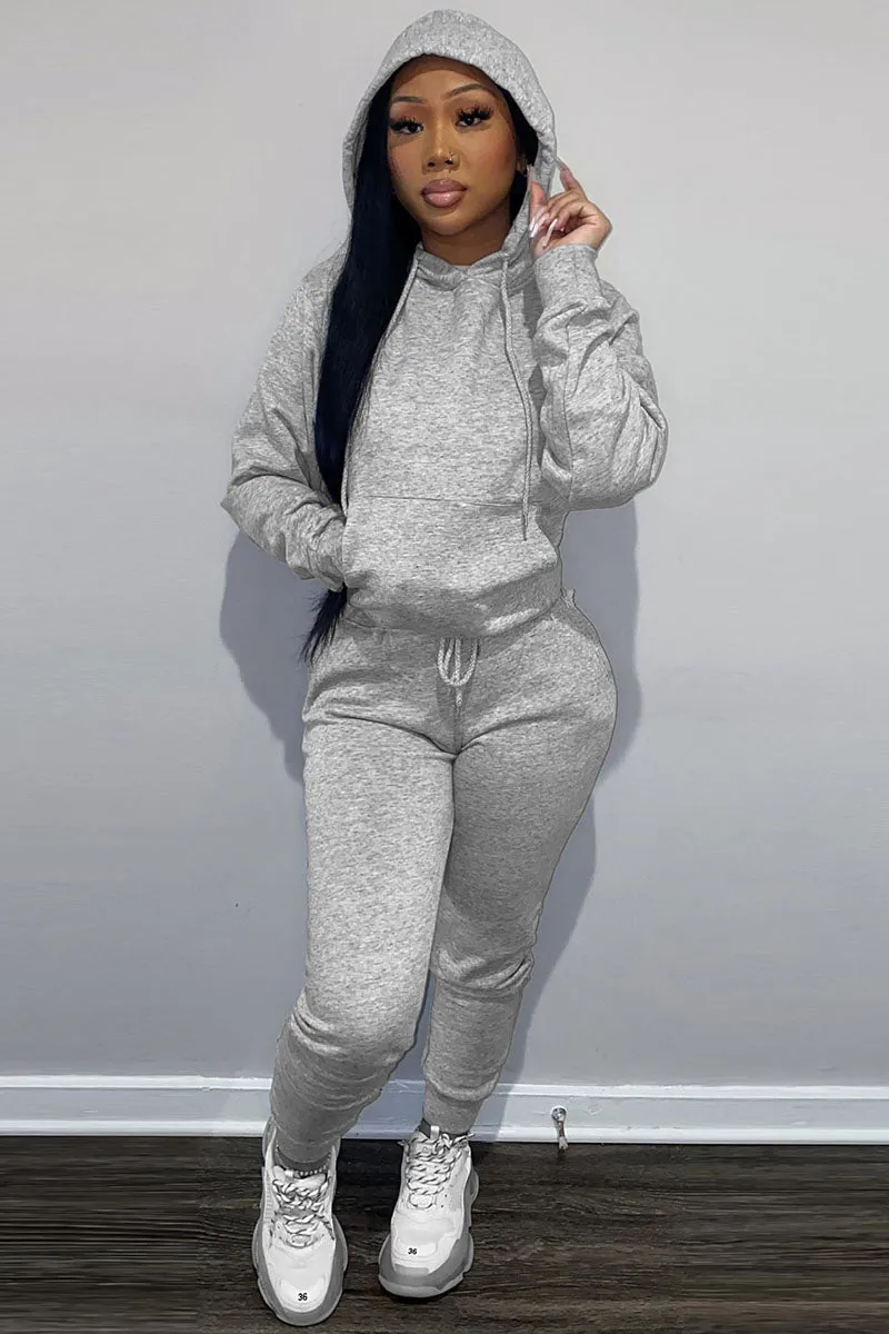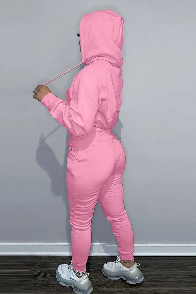 Casual Two Piece Drawstring Hoodie Pants Sweatsuit
