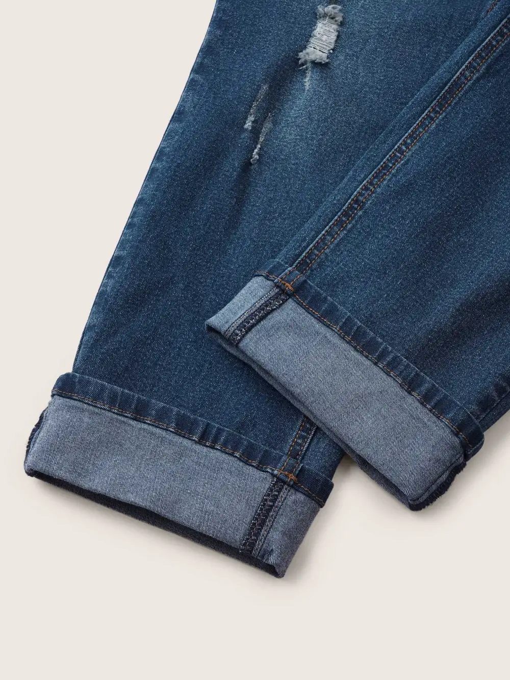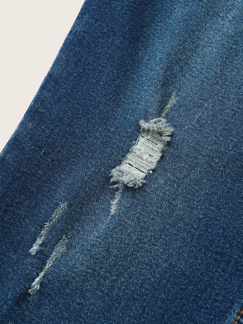 Roll Hem Ripped Pocket Straight Leg Cropped Jeans