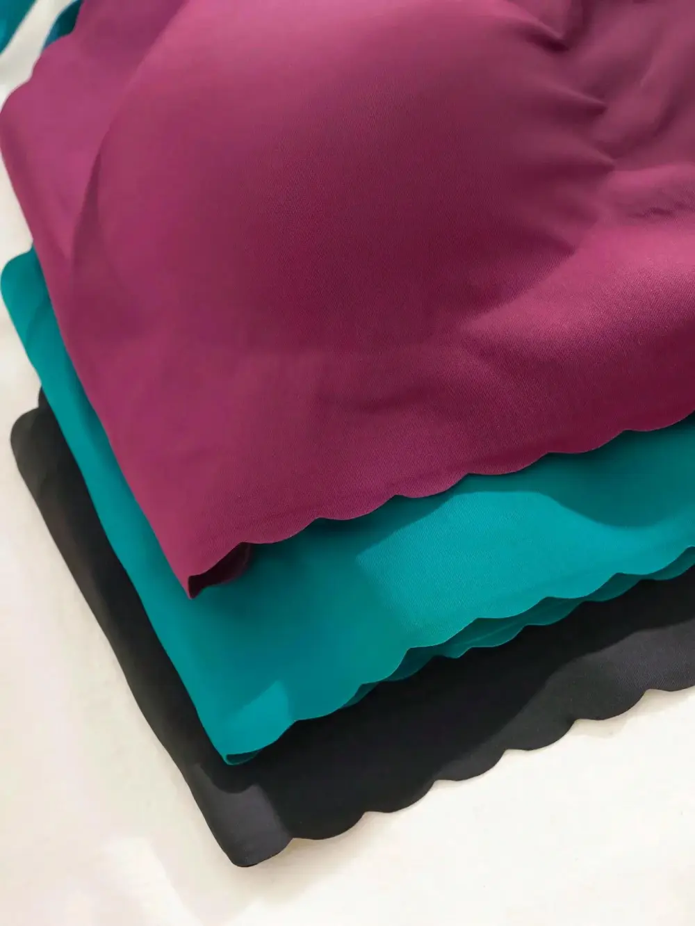 Basics 3pcs Seamless Wave Edge Adhesive Bra Set With Removable Cups