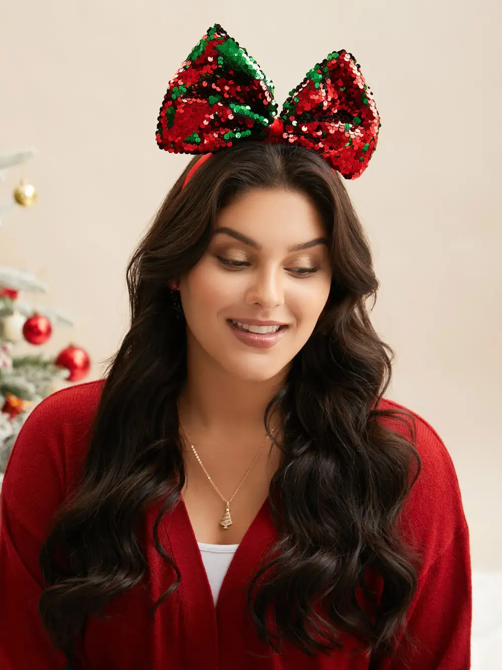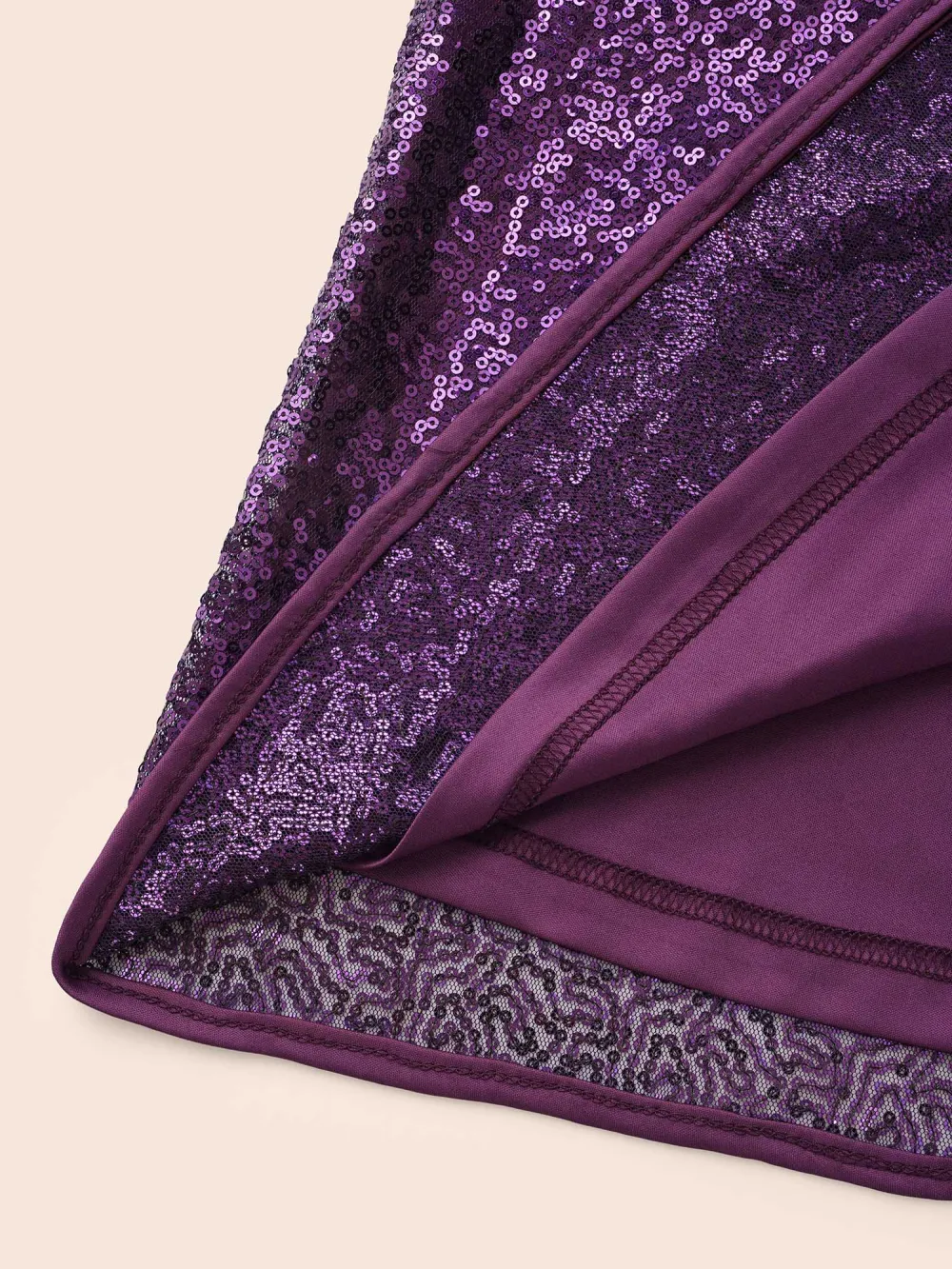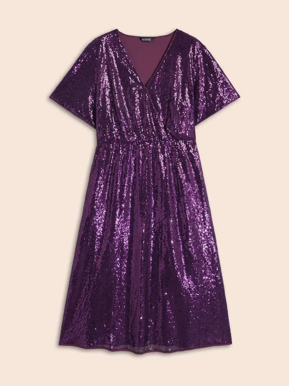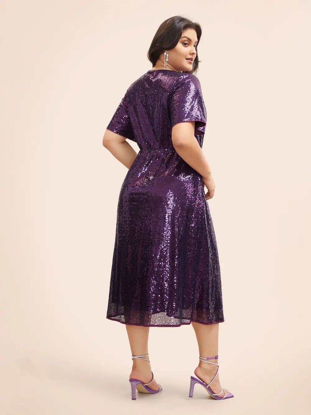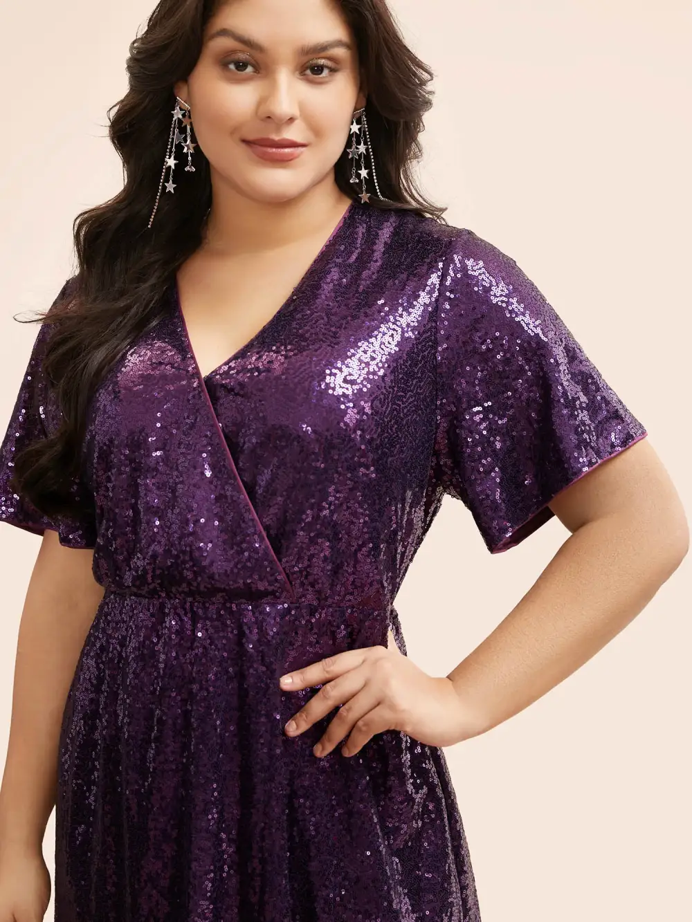 Sequin Overlap Collar Ruffle Sleeve Dress