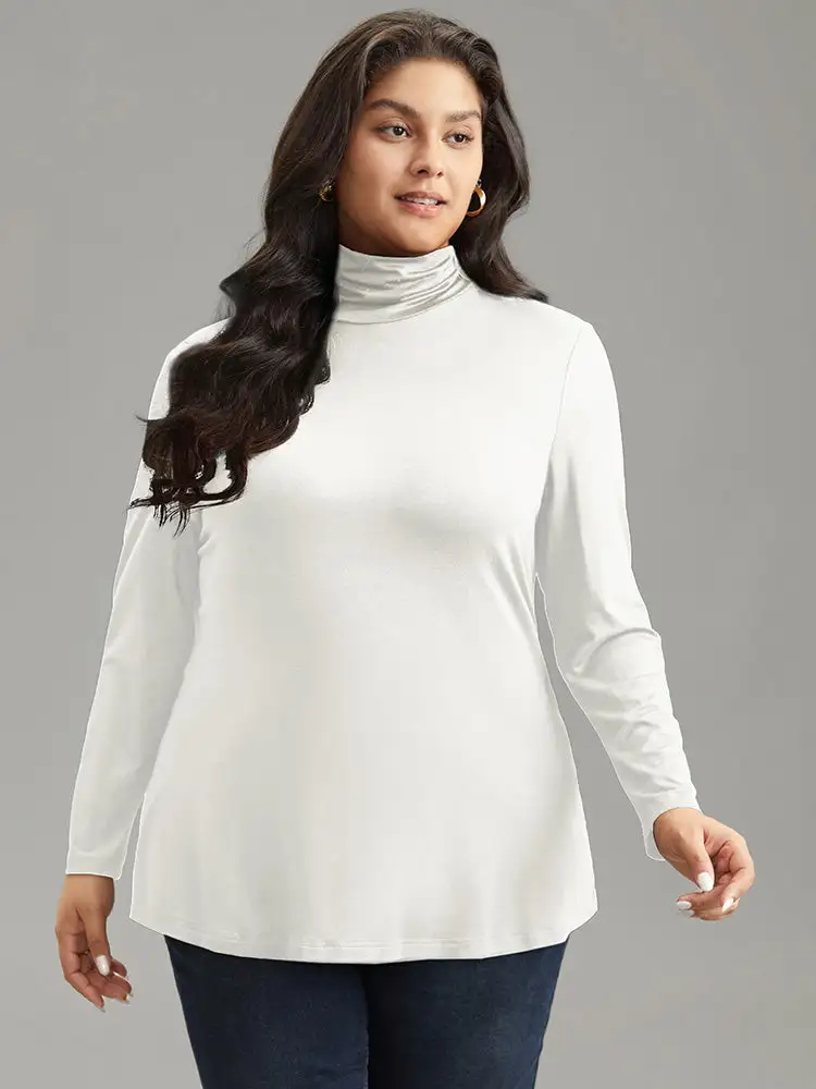 Supersoft Essentials Solid Funnel Neck Knit T-Shirt