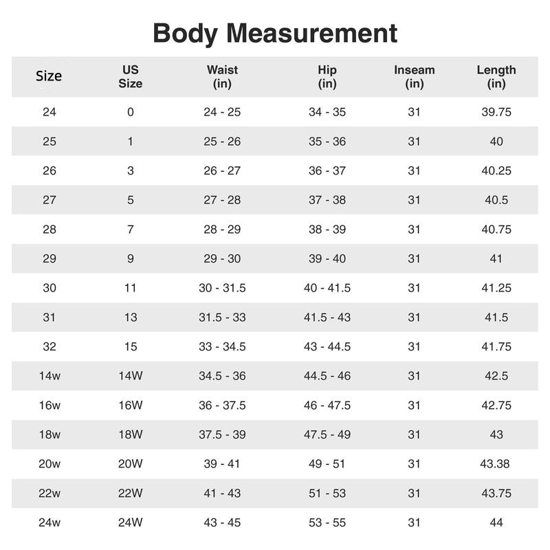 Jeans size chart