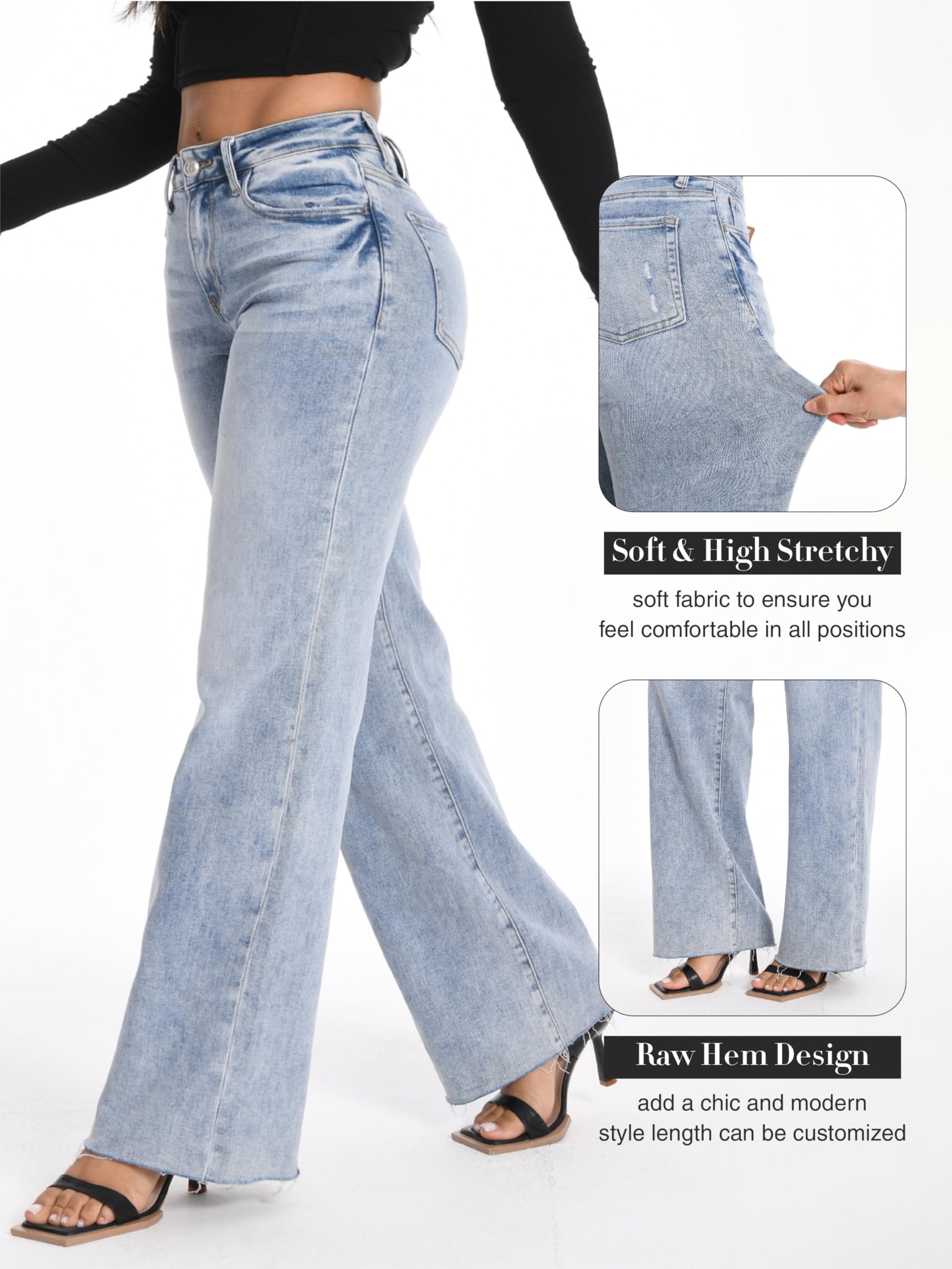 2.Mid-to-low waist design, slims the waistline and elongates the legs.3.Long pant legs, can be easily cut or rolled up to create a fashionable raw hem effect.