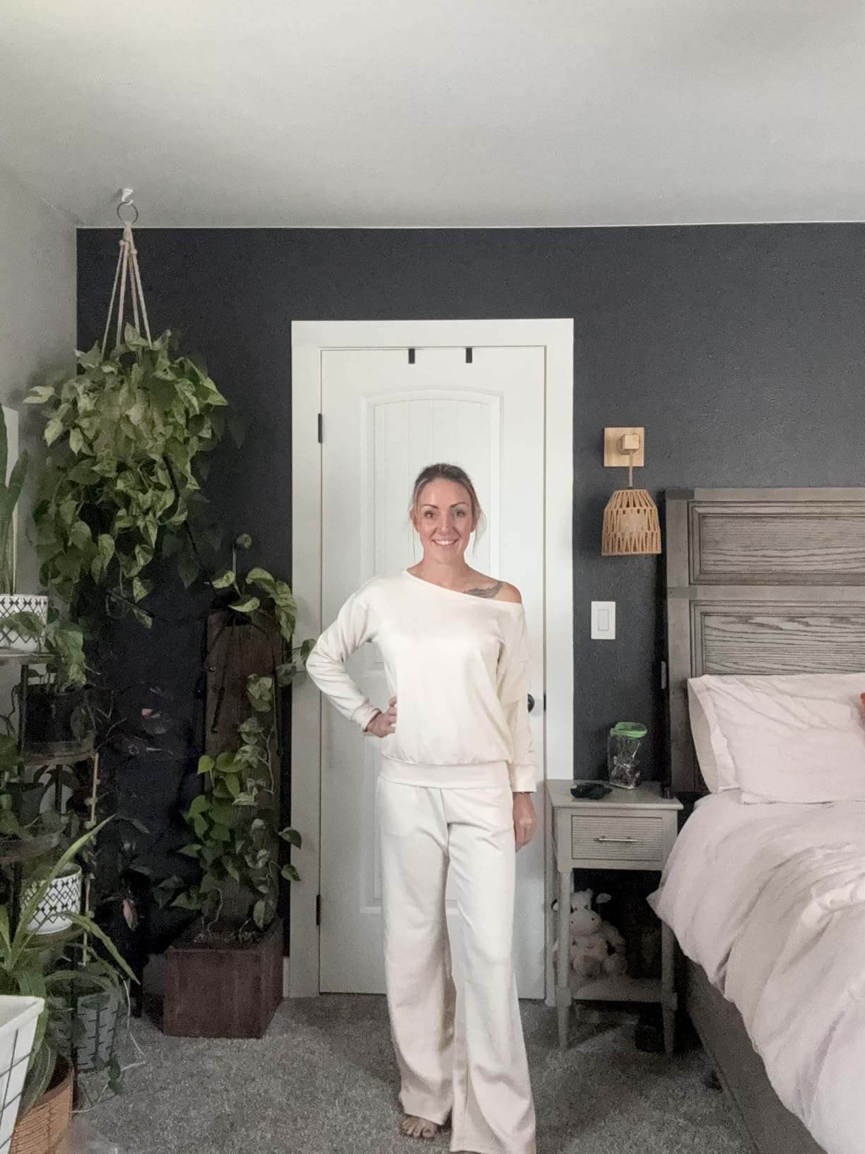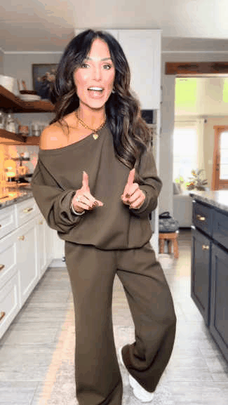 This set is super cozy and stylish at the same time. The fabric is soft, lightweight, and drapes nicely without looking sloppy. I love the off-shoulder design for lounging but still feeling put together. Runs just a touch long in the pants for me (I’m 5’2”), but nothing a quick hem or wearing with platform uggs won’t fix. --Joanna ⭐️⭐️⭐️⭐️⭐️