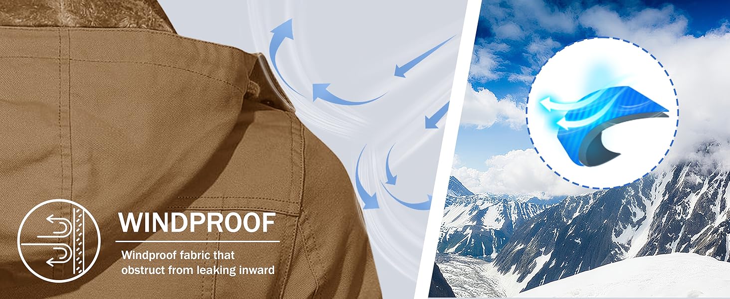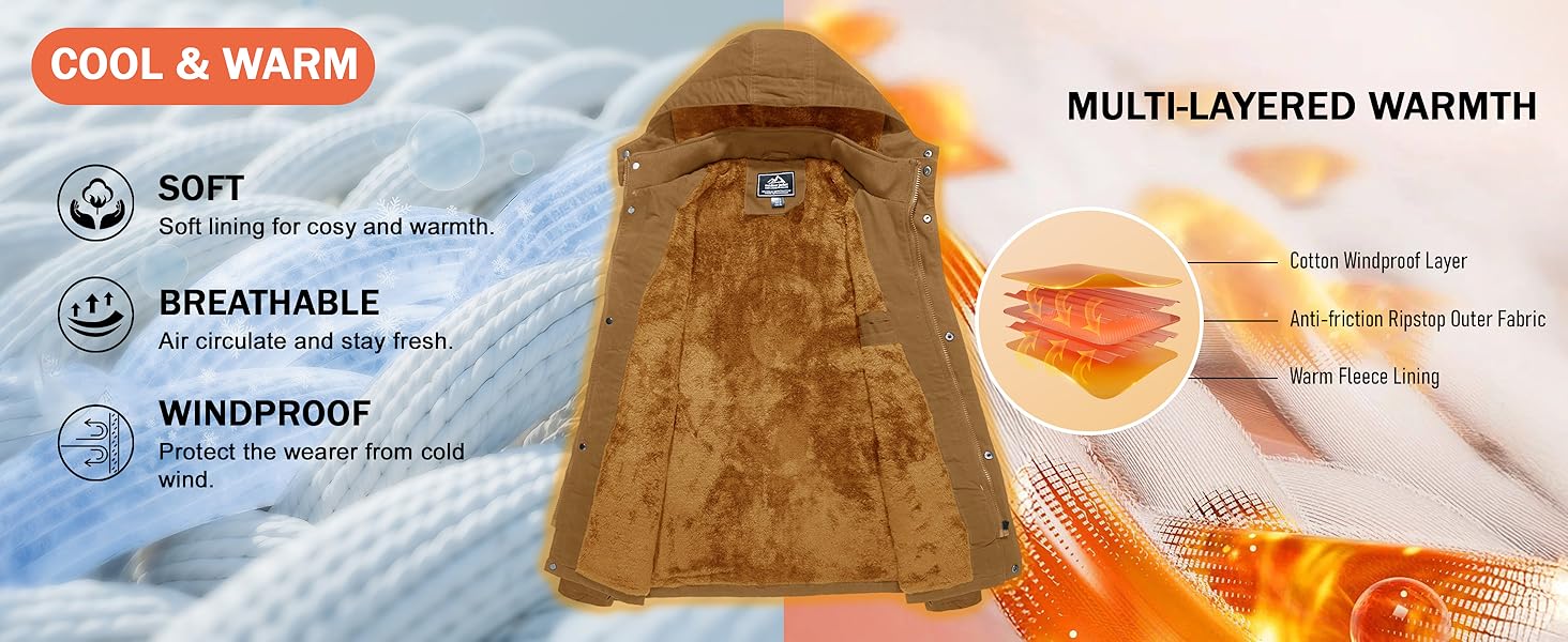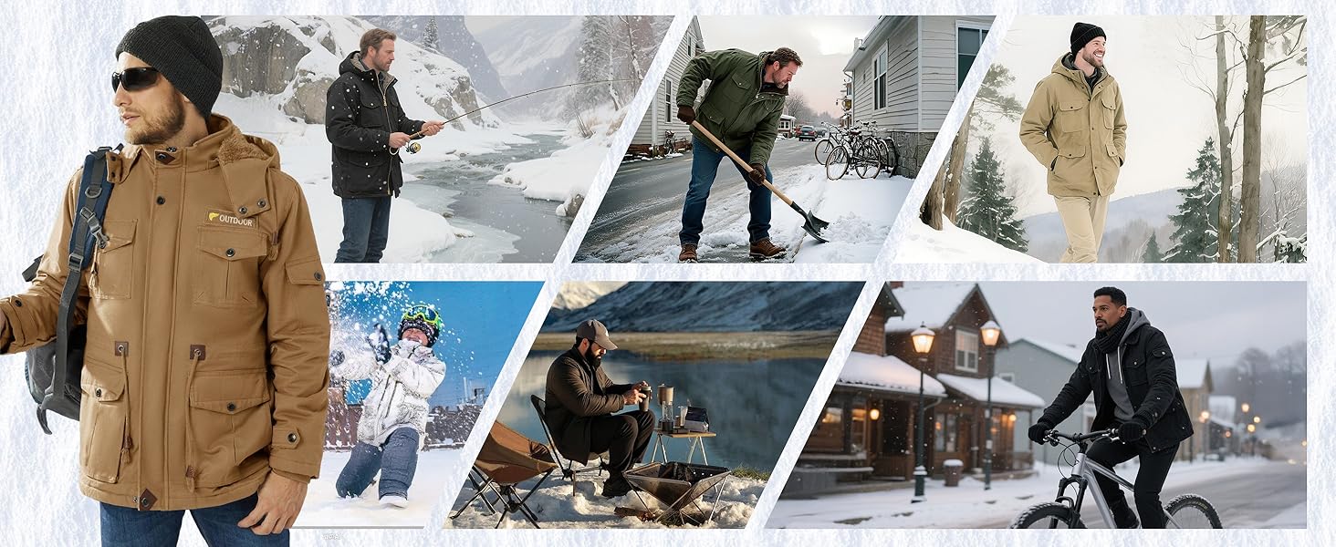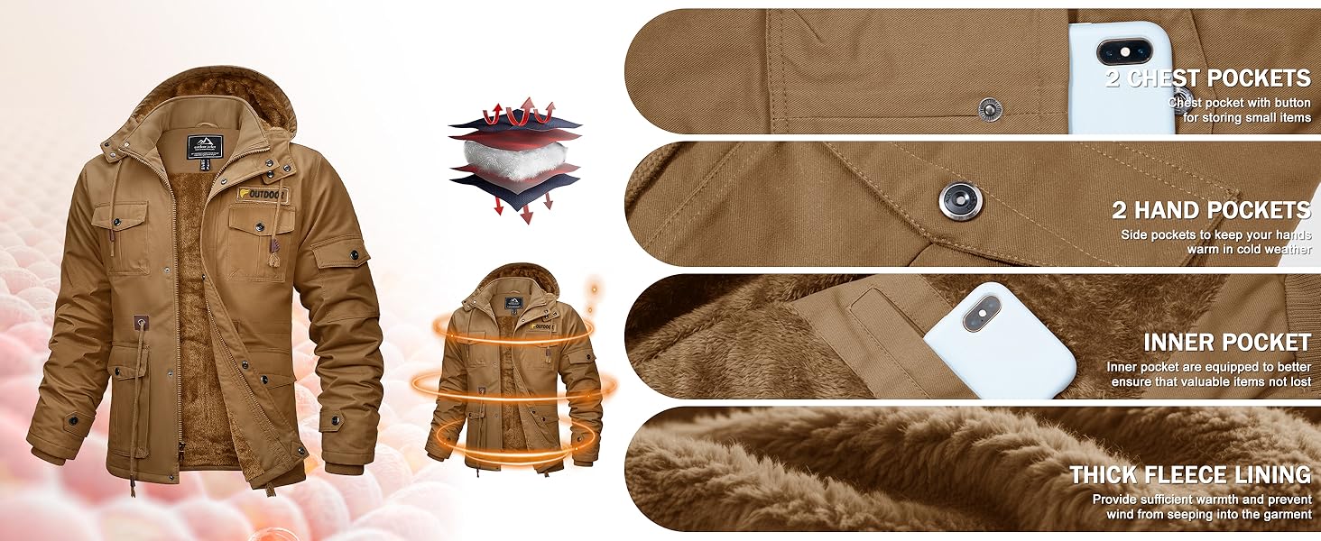 Men's Winter Coat Jacket Fleece Lined Parka Cotton Cargo Jacket Menswear Tops Long Sleeve Warm Thermal Hoodie