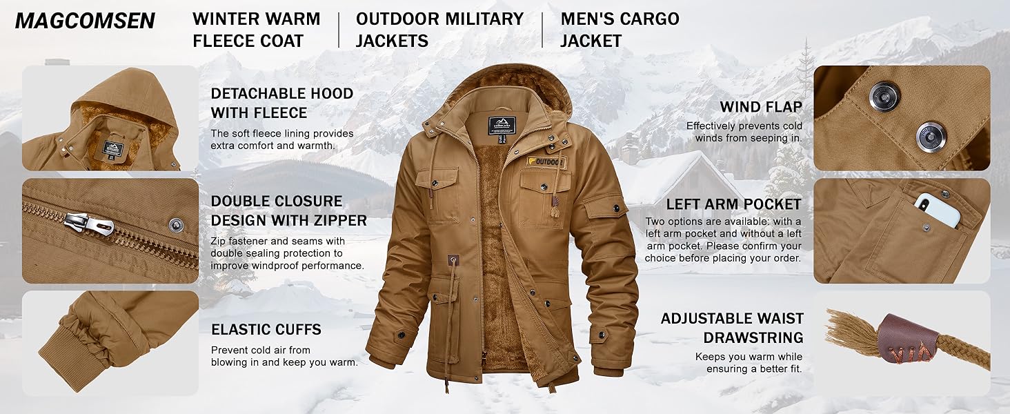Home / Men's Winter Coat Jacket Fleece Lined Parka Cotton Cargo Jacket Menswear Tops Long Sleeve Warm Thermal Hoodie