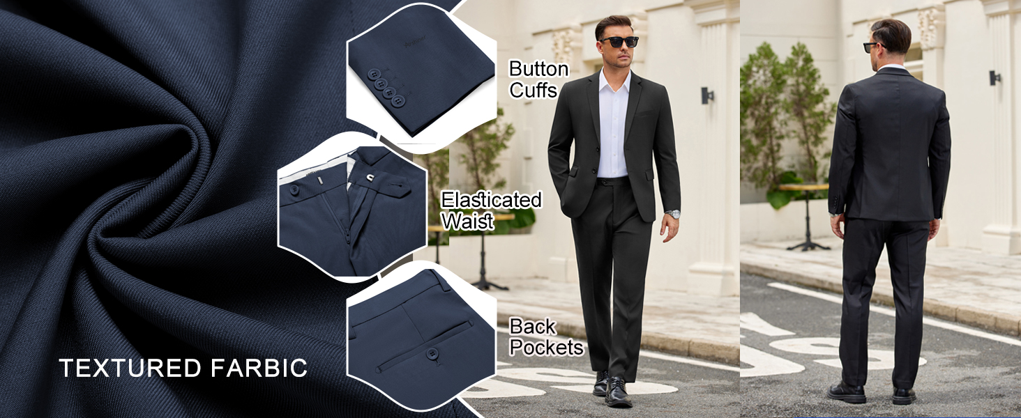 【Premium Fabric】This men's suit is crafted from high-quality, lightweight, and soft fabrics. Fully lined, with exquisite workmanship, it perfectly balances professionalism and style.65% Cotton, 21% Polyester, 14% Spandex